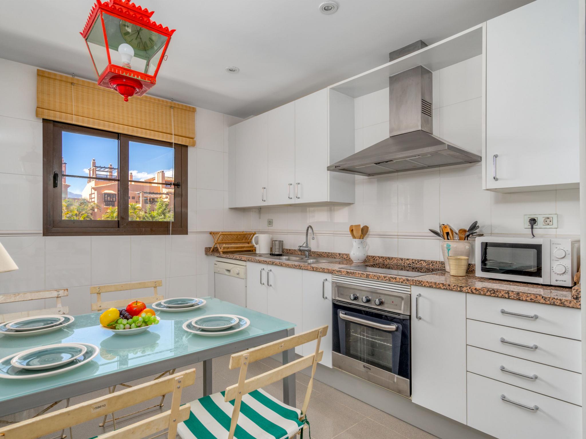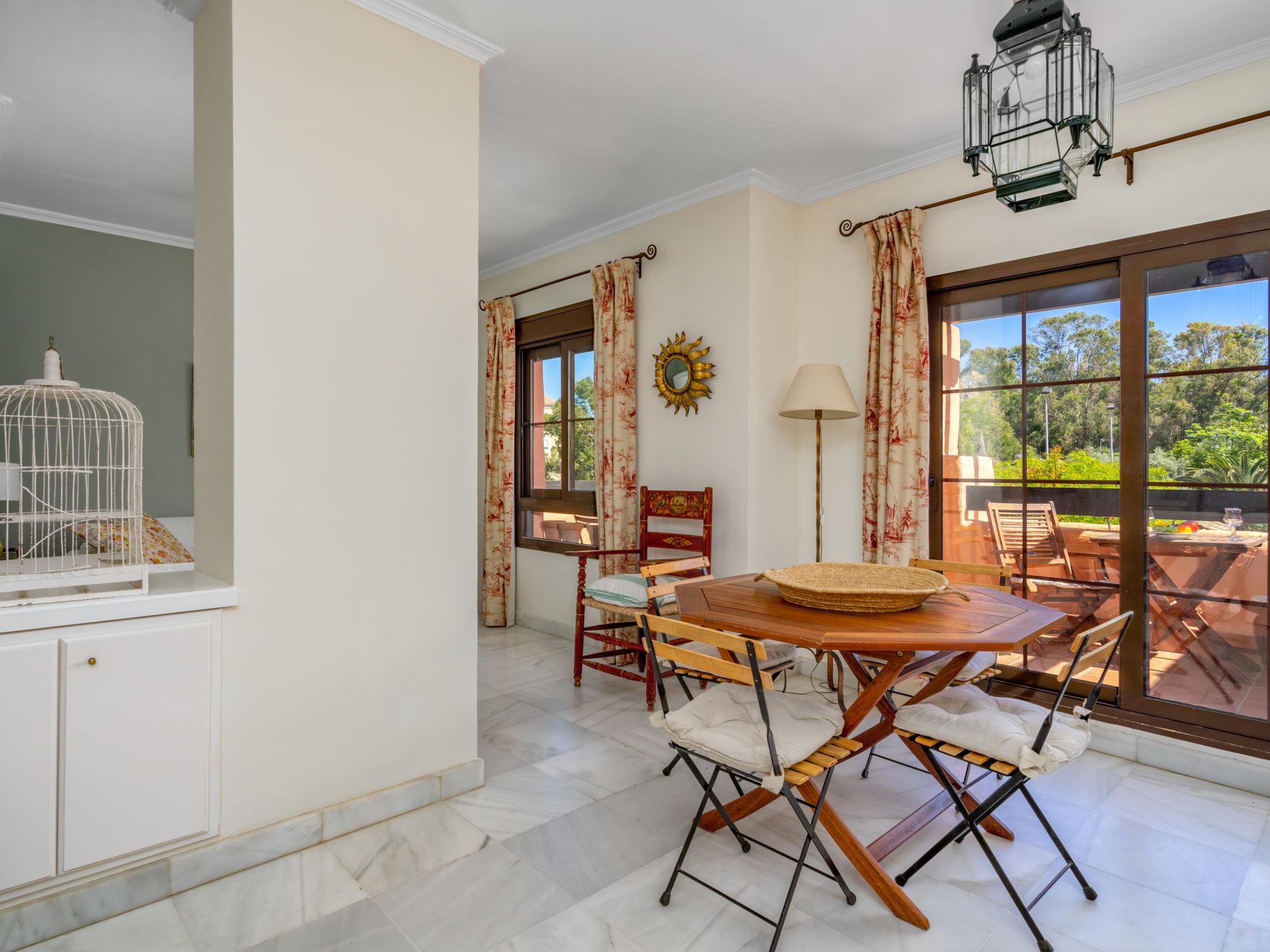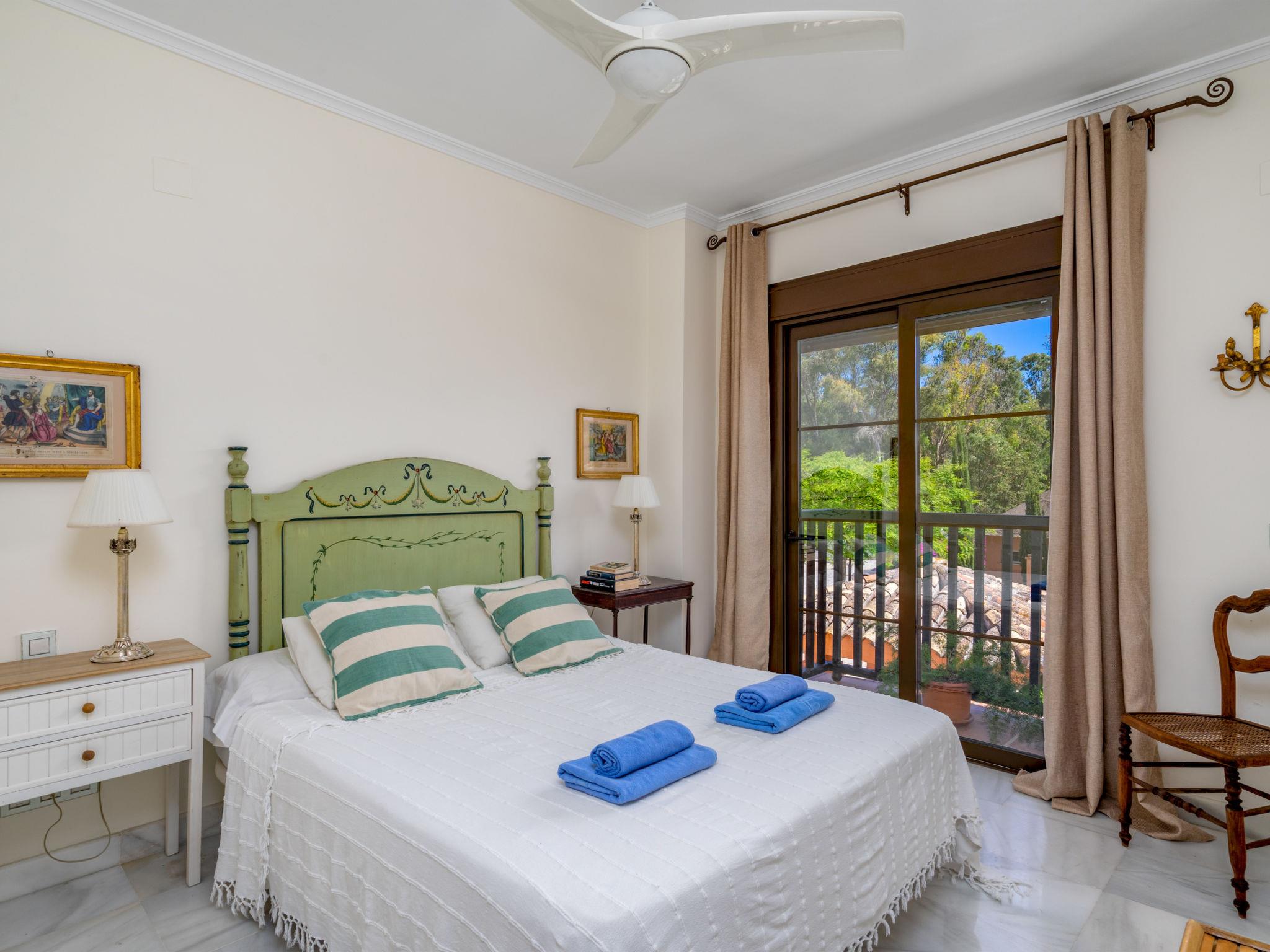 Hacienda del Sol 10 km from Marbella: Apartment block "Hacienda del Sol". 10 km from the centre of Estepona, 5 km from the centre of Puerto Banús, in a quiet, sunny position, from the sea, 200 m from the beach. For shared use: garden lawn, swimming pool (seasonal availability: 01.Jun. - 30.Sep. pool opening hours: 12:00-20:00). Unconventional pool shape. Children's pool, outdoor shower, tennis, children's playground. In the complex: lift. Communal covered parking space n 81. Shop, grocery 900 m, restaurant 200 m, bus stop "Isdabe" 900 m, sandy beach 200 m. Golf course (18 hole) 3 km. Please note: not suitable for small children. The owner does not accept any youth groups. The pool has a lifeguard from 15.06 to 31.08. Out of season, bathing is at your own risk.
