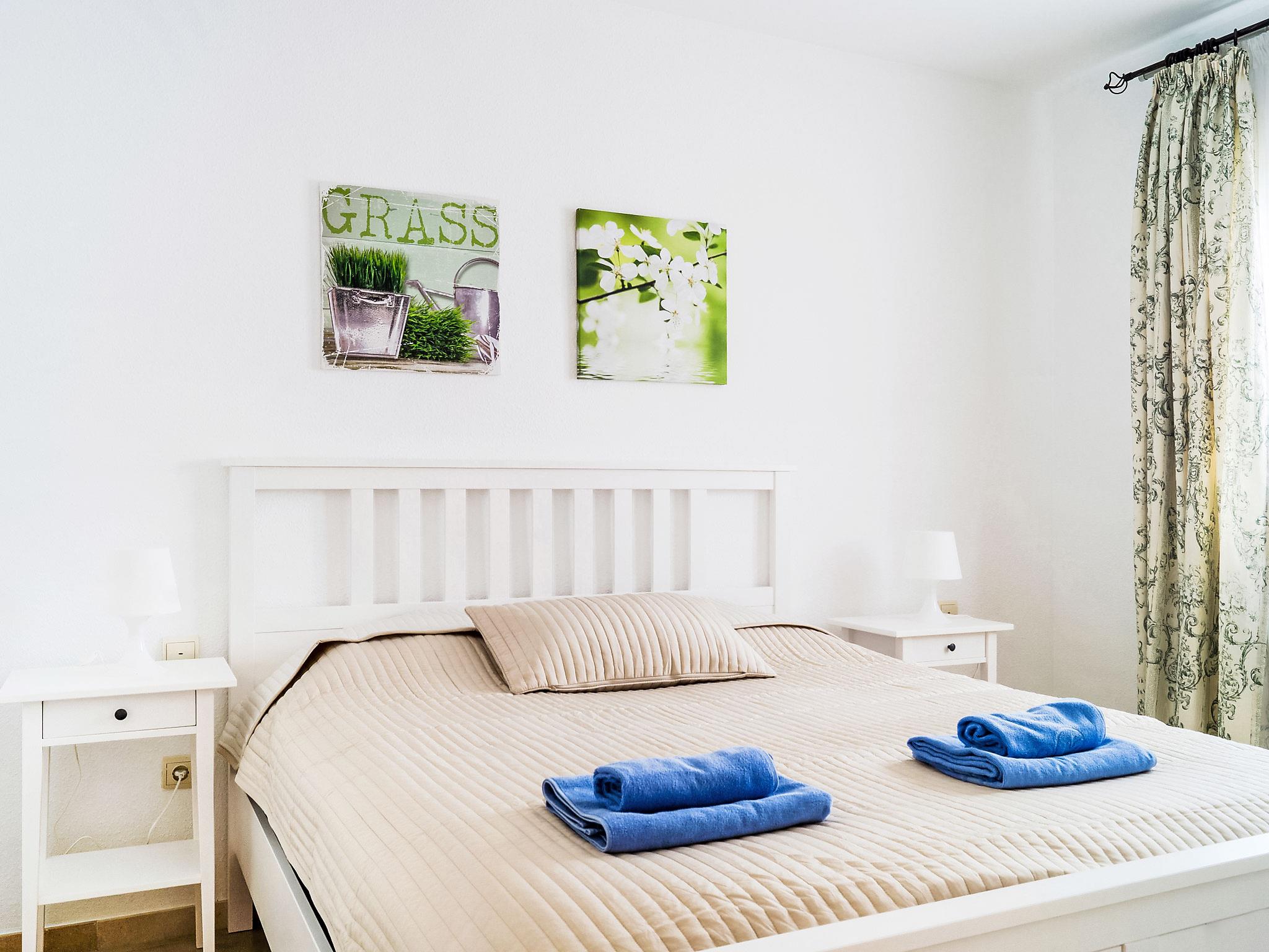 4-room terraced house 120 m2 on 2 levels. Practical and comfortable furnishings: living/dining room with digital TV, air conditioning and forced-air heating. Exit to the terrace. Kitchen (oven, dishwasher, 4 ceramic glass hob hotplates, toaster, kettle, microwave, freezer, electric coffee machine). Shower/WC. Upper floor: 1 room with 1 french bed (140 cm, length 200 cm), air conditioning and forced-air heating. 1 room with 1 french bed (160 cm, length 200 cm), air conditioning and forced-air heating. 1 room with 1 bed (160 cm, length 200 cm), air conditioning and forced-air heating. Shower/WC. Terrace. Terrace furniture. Facilities: washing machine. Suitable for families. The property is in a residential complex where you have to respect the rules of coexistence. No noise should be made after midnight. VUT/MA/03912 // Reg. Nr.: ESFCTU0000290370000959080000000000000000VUT/MA/039126