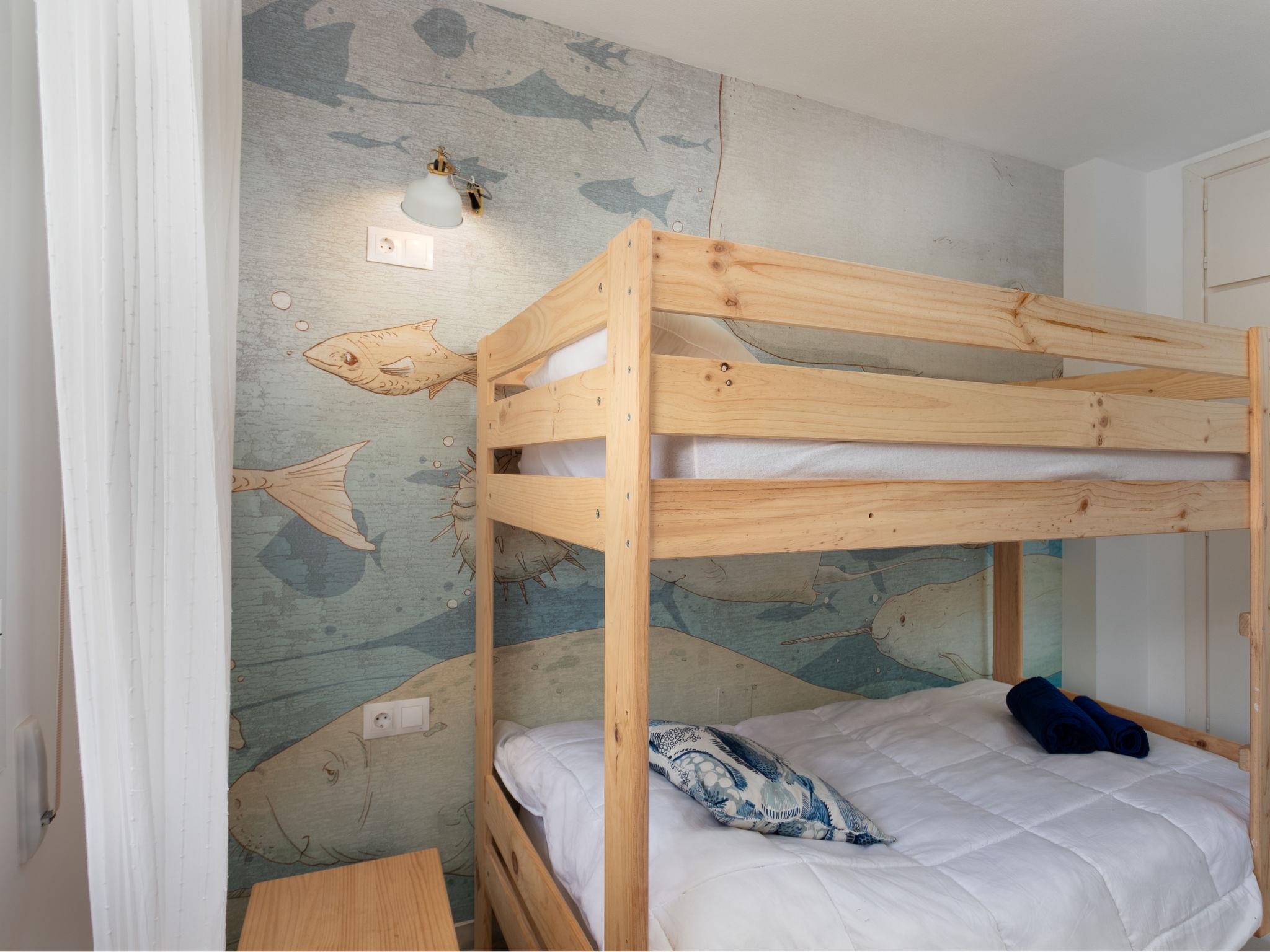 "First Line Arena Beach", 3-room apartment 82 m2 on 1st floor. Object suitable for 5 adults + 1 child. Bright, renovated in 2024, very comfortable furnishings: living/dining room with dining table, satellite TV, flat screen, air conditioning and forced-air heating. Exit to the terrace. 1 room with 1 french bed (160 cm, length 205 cm). 1 room with 2 x 2 bunk beds (90 cm, length 190 cm). Open kitchen (oven, dishwasher, 4 ceramic glass hob hotplates, toaster, microwave, freezer, electric coffee machine, Capsules for coffee machine (Tassimo) extra). Shower/bidet/WC. Terrace. Terrace furniture, sitting area. View of the garden. Facilities: washing machine, iron, children's high chair, baby cot for up to 3 year olds, hair dryer. Internet (WiFi, free). Please note: suitable for families. Non-smokers only. Smoke alarm, fire extinguisher. VUT/MA/77312 // Reg. Nr.: ESFCTU0000290360001770340000000000000000VUT/MA/773129