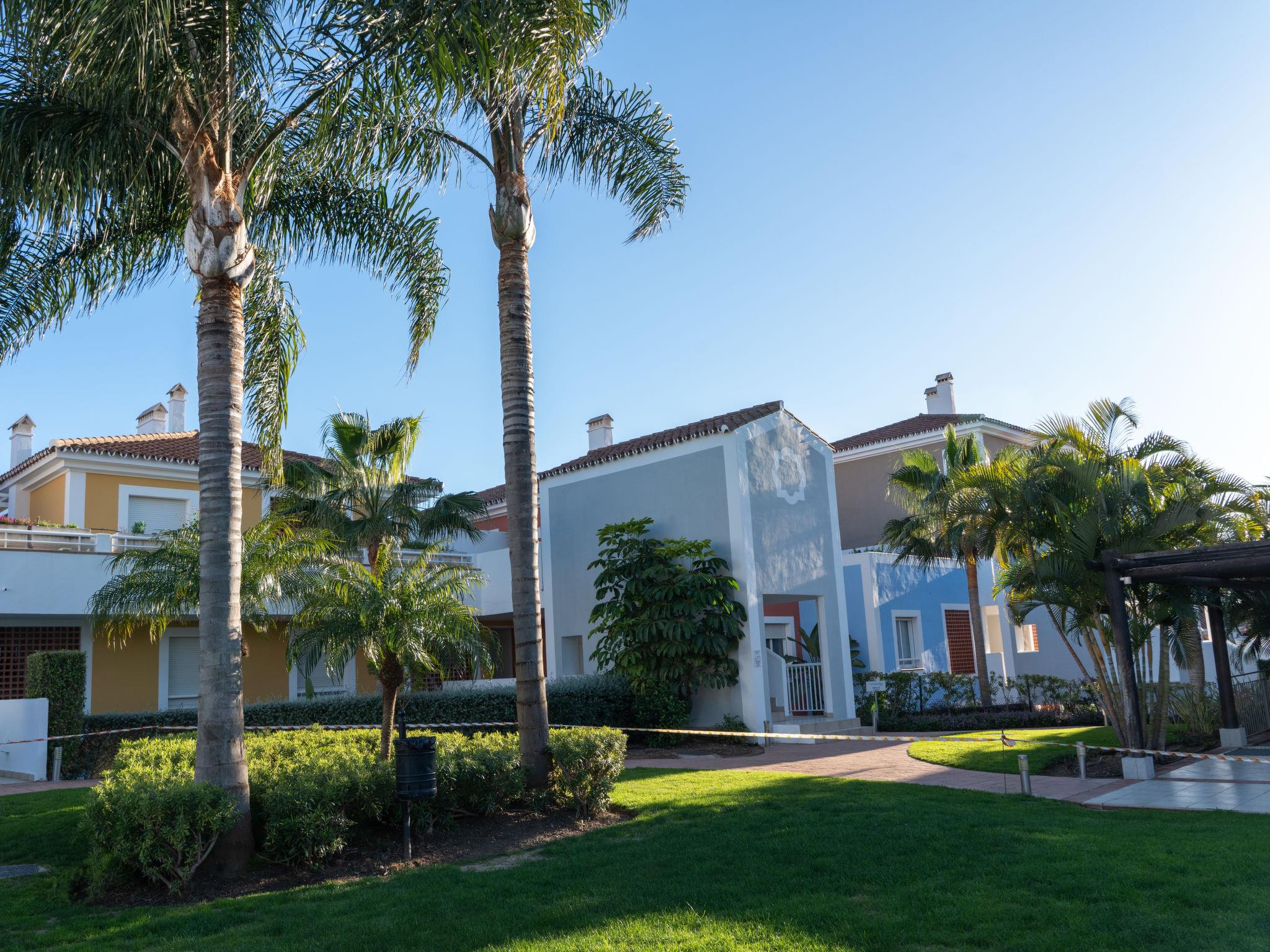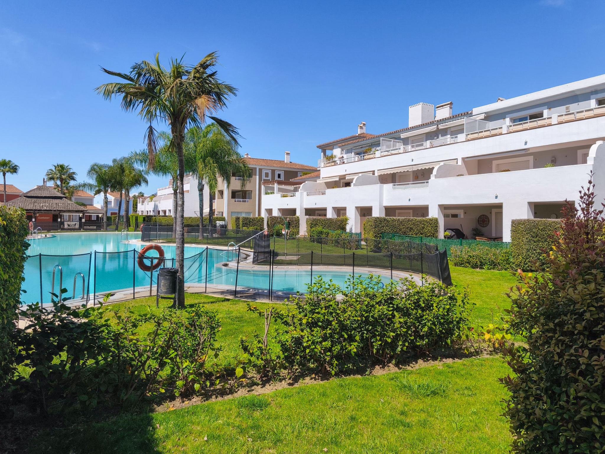 Very beautiful, cosy, very comfortable resort "Cortijo del Mar", built in 2011, surrounded by trees. 5 km from the centre of San Pedro de Alcantara, 14 km from the centre of Estepona, outside the resort, 16 km from the centre of Marbella, in the district El Paraiso, in a quiet, sunny position, traffic calmed area, 1.6 km from the sea, 2.6 km from the beach. For shared use: garden with lawn, natural garden, lawn for sunbathing, swimming pool kidney-shaped (43 x 23 m, depth 100 - 210 cm, seasonal availability: 01.Apr. - 15.Oct. pool opening hours: 11:00-18:00 and 11:00-20:00). Shower/WC in the pool area, children's pool, outdoor shower. Shop, supermarket, restaurant 500 m, bus stop "El Pilar" 800 m, sandy beach "Playa Salduna" 2.6 km. Sports harbour 9 km, marina 9 km, golf course (18 hole) 2.4 km. The owner does not accept any youth groups. Please note: guarded residence. Additional accommodations can be booked.