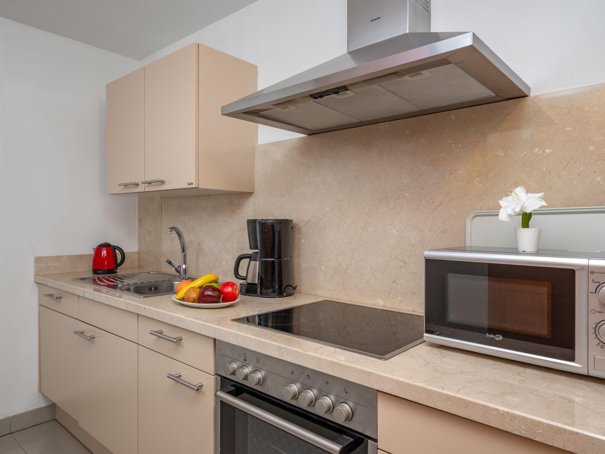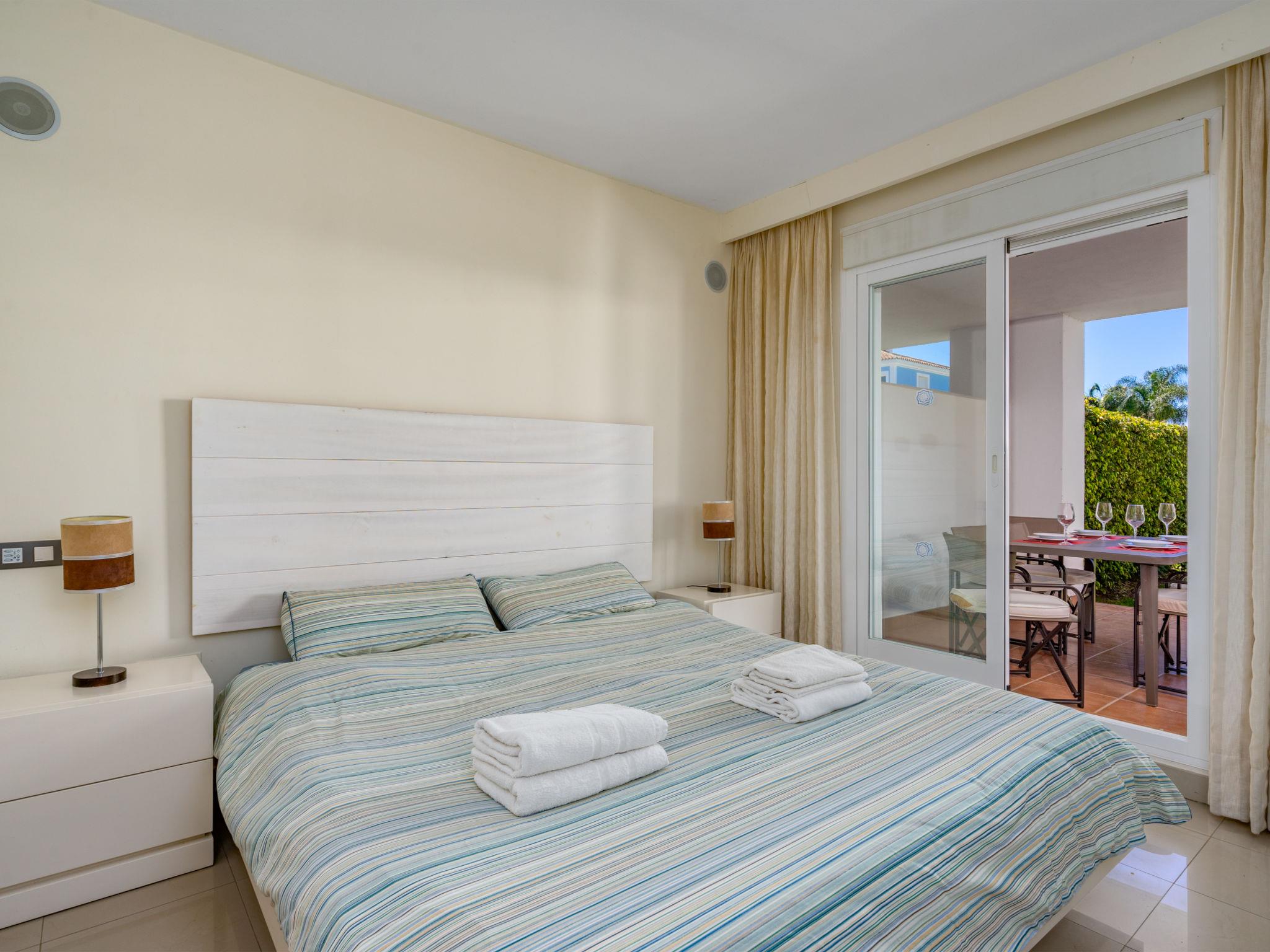 "Cortijo del Mar Gardens", 3-room apartment 92 m2, lower ground floor. Object suitable for 4 adults. Spacious and bright, comfortable and modern furnishings: living/dining room with digital TV, air conditioning and forced-air heating. Exit to the terrace. 1 room with 1 french bed (180 cm, length 200 cm), bath/WC, double hand-basin and hydro massage bath (private) air conditioning and forced-air heating. Exit to the terrace. 1 room with 2 beds (100 cm, length 200 cm), air conditioning and forced-air heating. Kitchen (oven, dishwasher, 4 ceramic glass hob hotplates, toaster, kettle, microwave, freezer, electric coffee machine). Shower/WC. Patio 34 m2, garden 28 m2. Terrace furniture, deck chairs (2). Facilities: washing machine, iron, children's high chair, baby cot, hair dryer. Internet (WiFi, free). Please note: non-smokers only. VUT/MA/922493 // Reg. Nr.: ESFCTU0000290370004871610000000000000000VUT/MA/922493