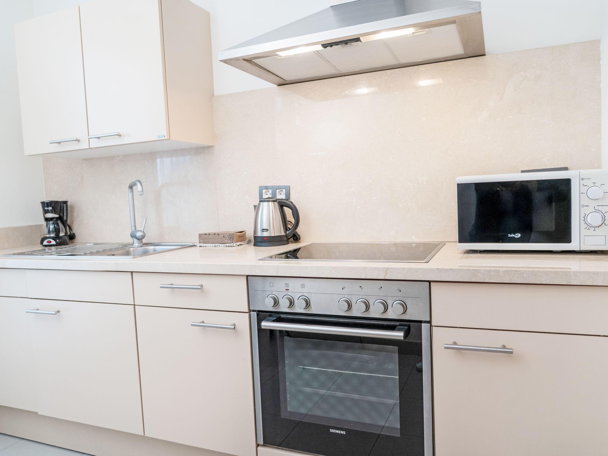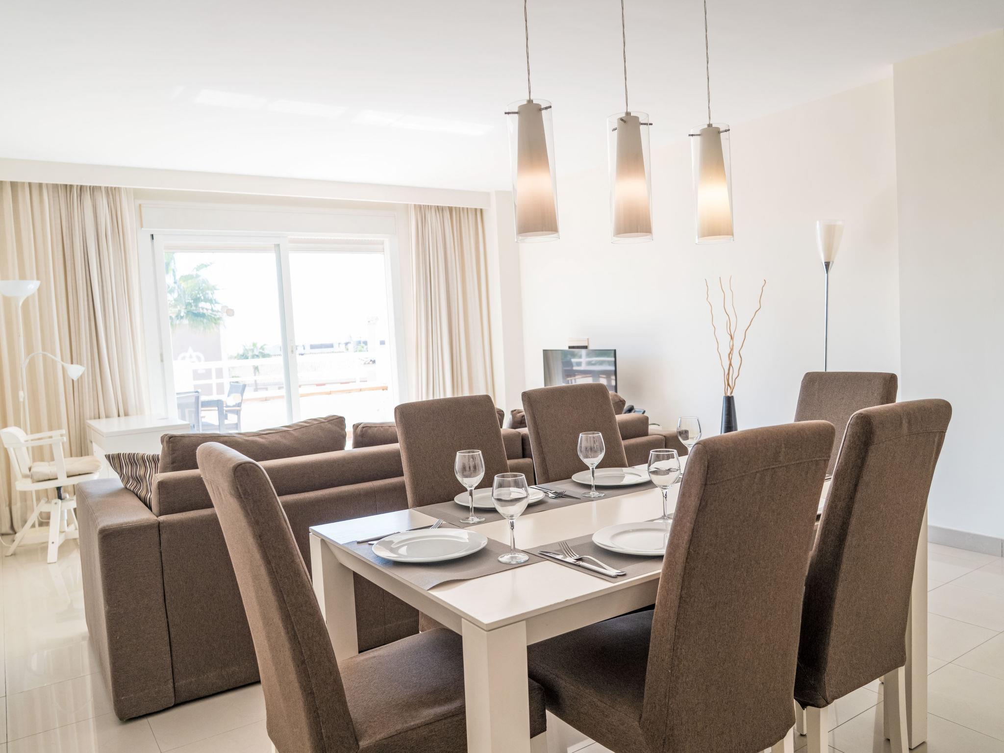 "Cortijo sunset", 3-room apartment 106 m2, south facing position. Bright, very comfortable and beautiful furnishings: living/dining room with digital TV, air conditioning and forced-air heating. Exit to the terrace. 1 room with 1 french bed (180 cm, length 200 cm), bath/WC and double hand-basin (private) air conditioning and electric shutters. Exit to the terrace. 1 room with 2 beds (105 cm, length 200 cm), air conditioning and forced-air heating. Kitchen (oven, dishwasher, 4 ceramic glass hob hotplates, toaster, kettle, microwave, freezer, electric coffee machine). Shower/WC. Terrace. Terrace furniture. View of the sea, the swimming pool and the garden. Facilities: washing machine, iron, children's high chair, baby cot, hair dryer. Internet (WiFi, free). Garage. VUT/MA/90593 // Reg. Nr.: ESFCTU0000290370004869420000000000000000VUT/MA/905935