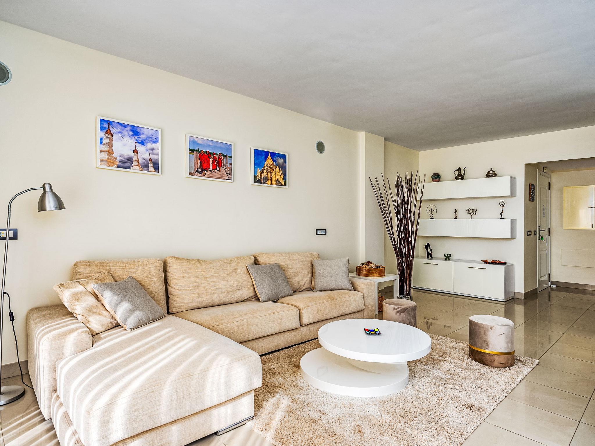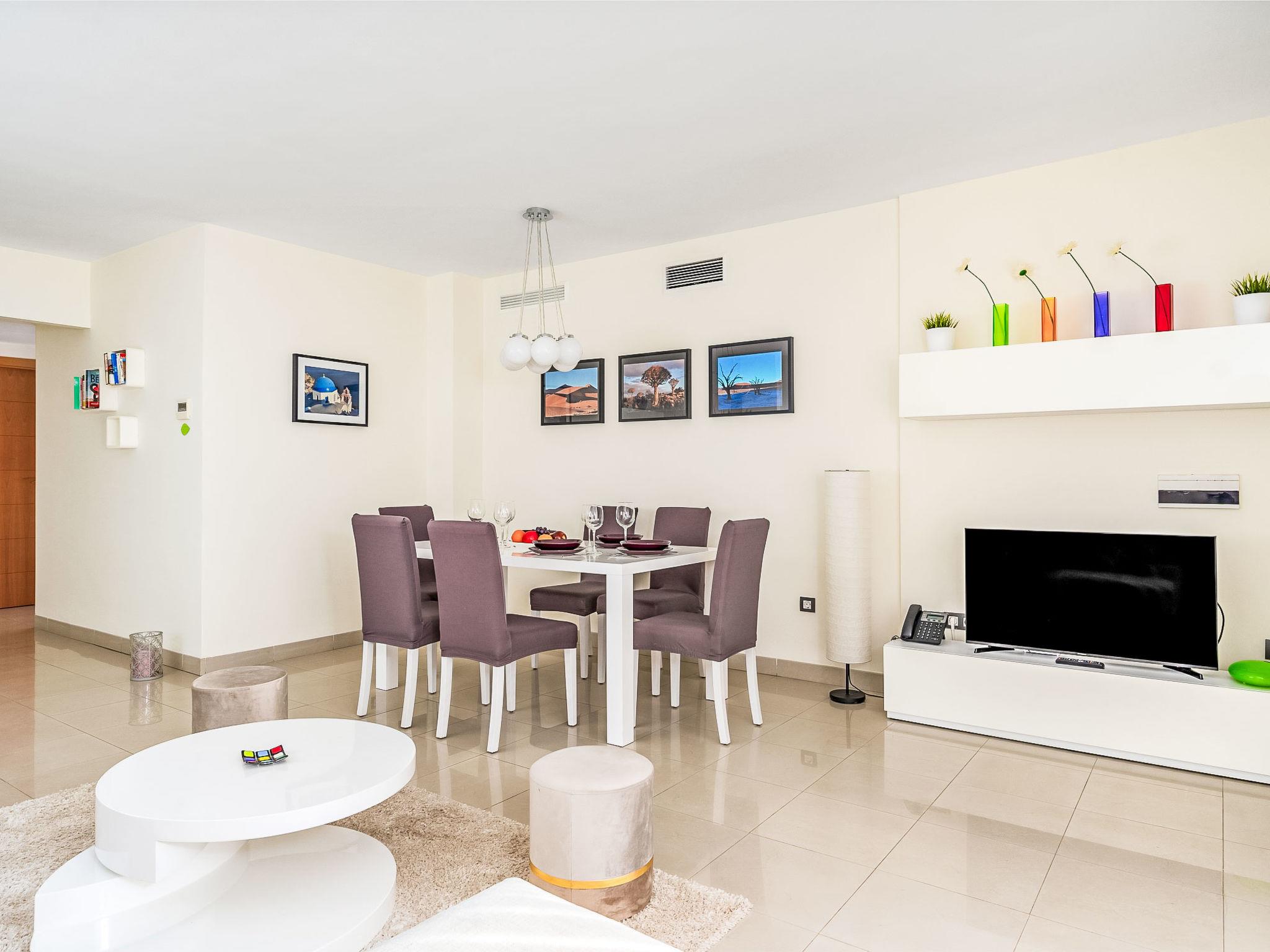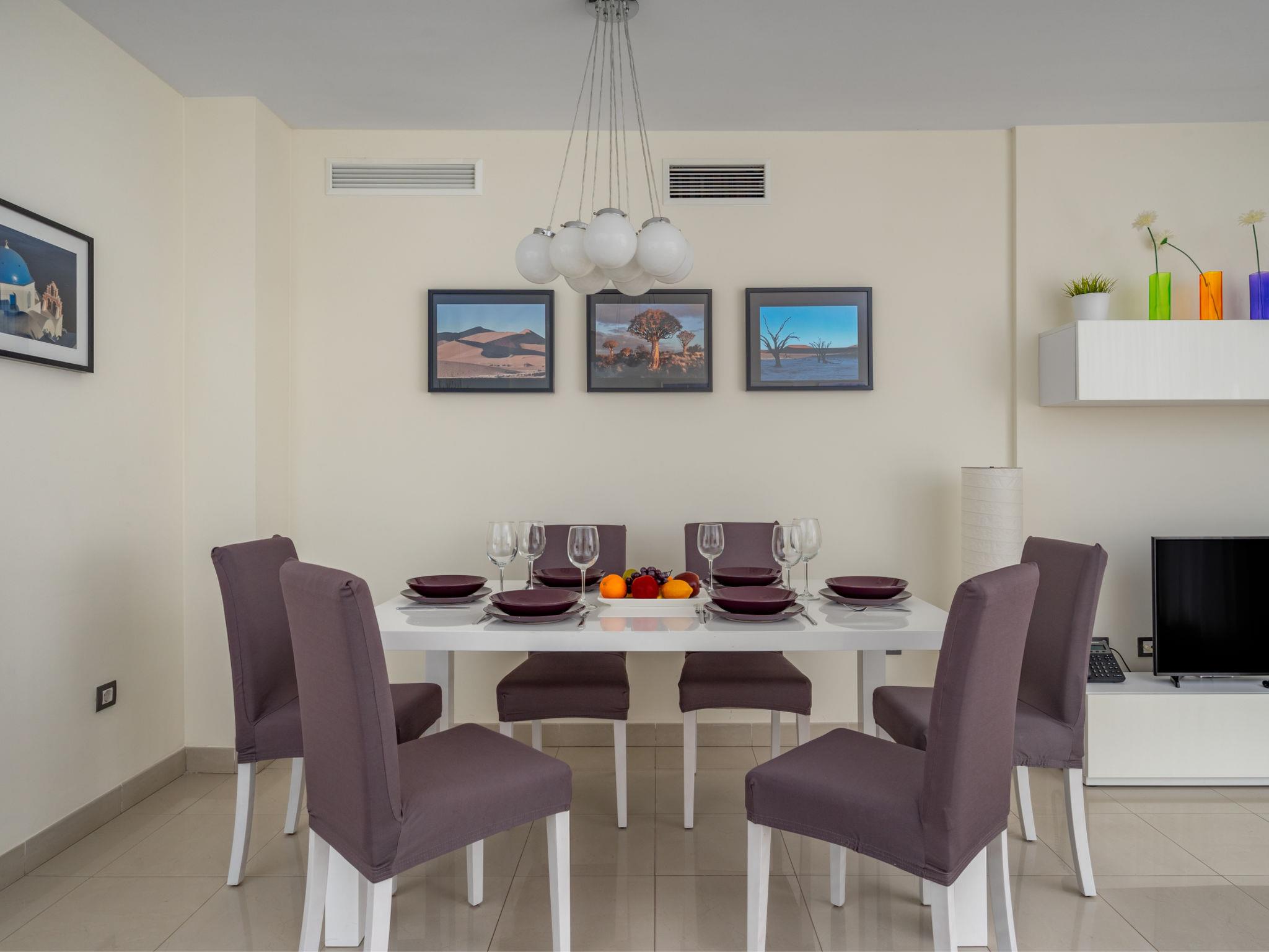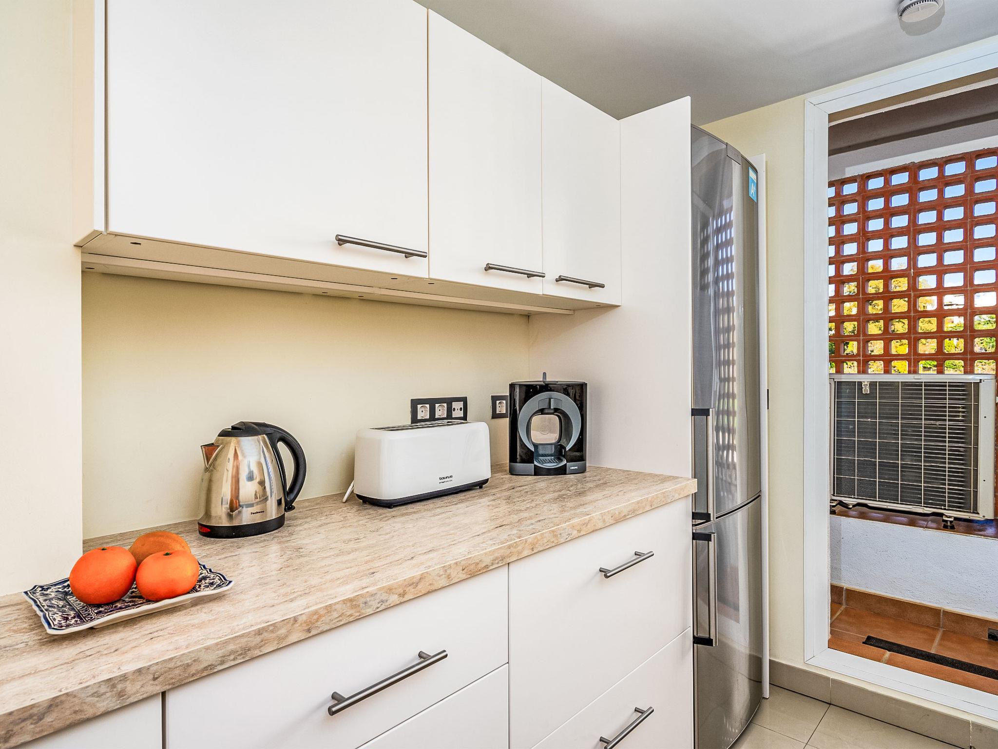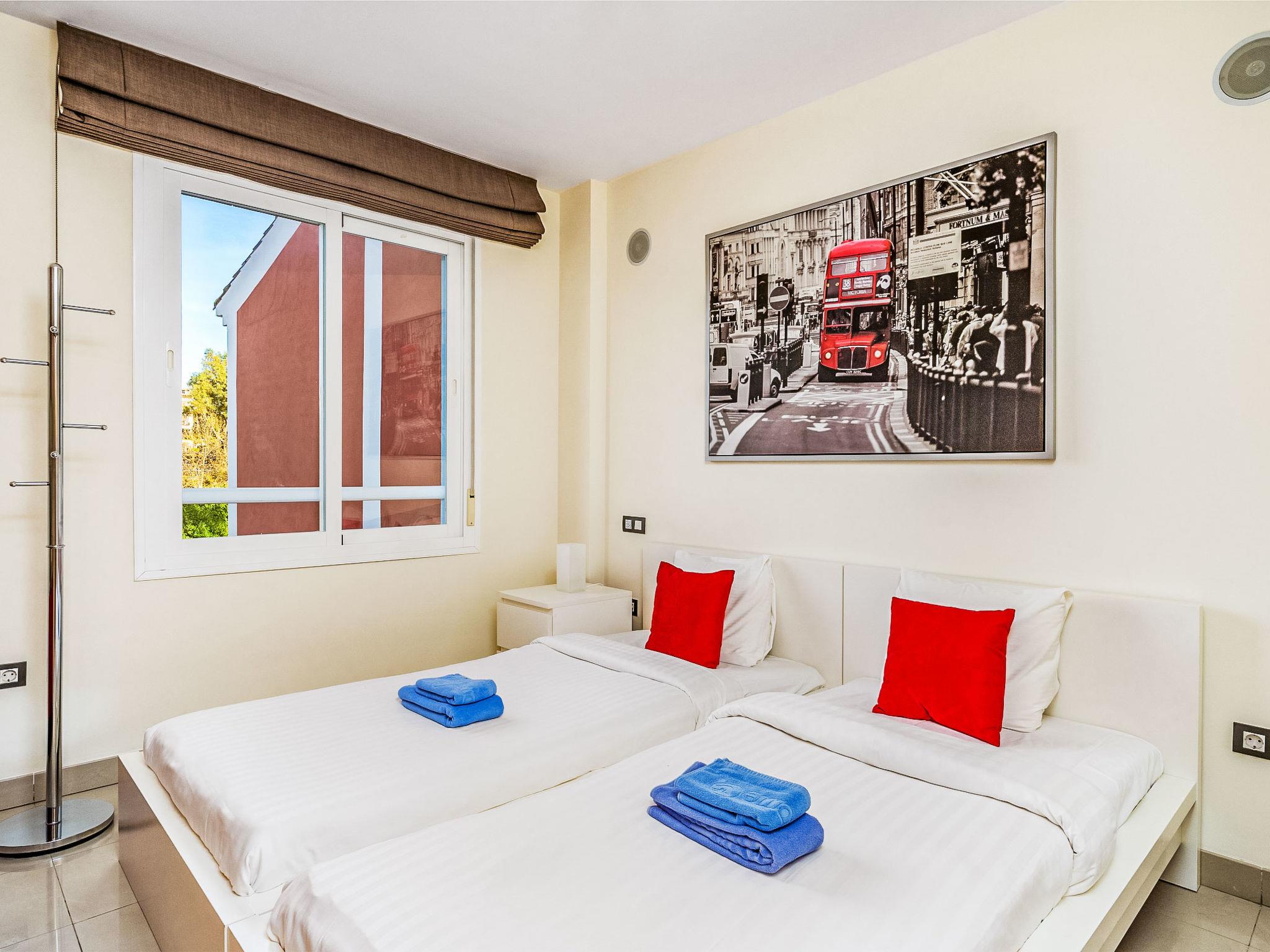"Cortijo del Mar - Coral Nest", 4-room apartment 129 m2 on 2 levels, on the top floor. Spacious and bright, comfortable and beautiful furnishings: living/dining room with digital TV. Exit to the terrace. 1 room with 2 beds (90 cm, length 200 cm). 1 room with 1 french bed (180 cm, length 200 cm). Kitchen (oven, dishwasher, 4 ceramic glass hob hotplates, toaster, kettle, microwave, freezer, electric coffee machine). 2 baths/WC. Upper floor: 1 room with 1 french bed (180 cm, length 200 cm), bath/WC (private). Exit to the terrace. Terrace. Terrace furniture. Side view of the sea and the swimming pool. Facilities: washing machine, iron, children's high chair, baby cot, hair dryer. Internet (WiFi, free). Parking space n 68. Please note: non-smokers only. VUT/MA/91645 // Reg. Nr.: ESFCTU0000290370004883280000000000000000VUT/MA/916450