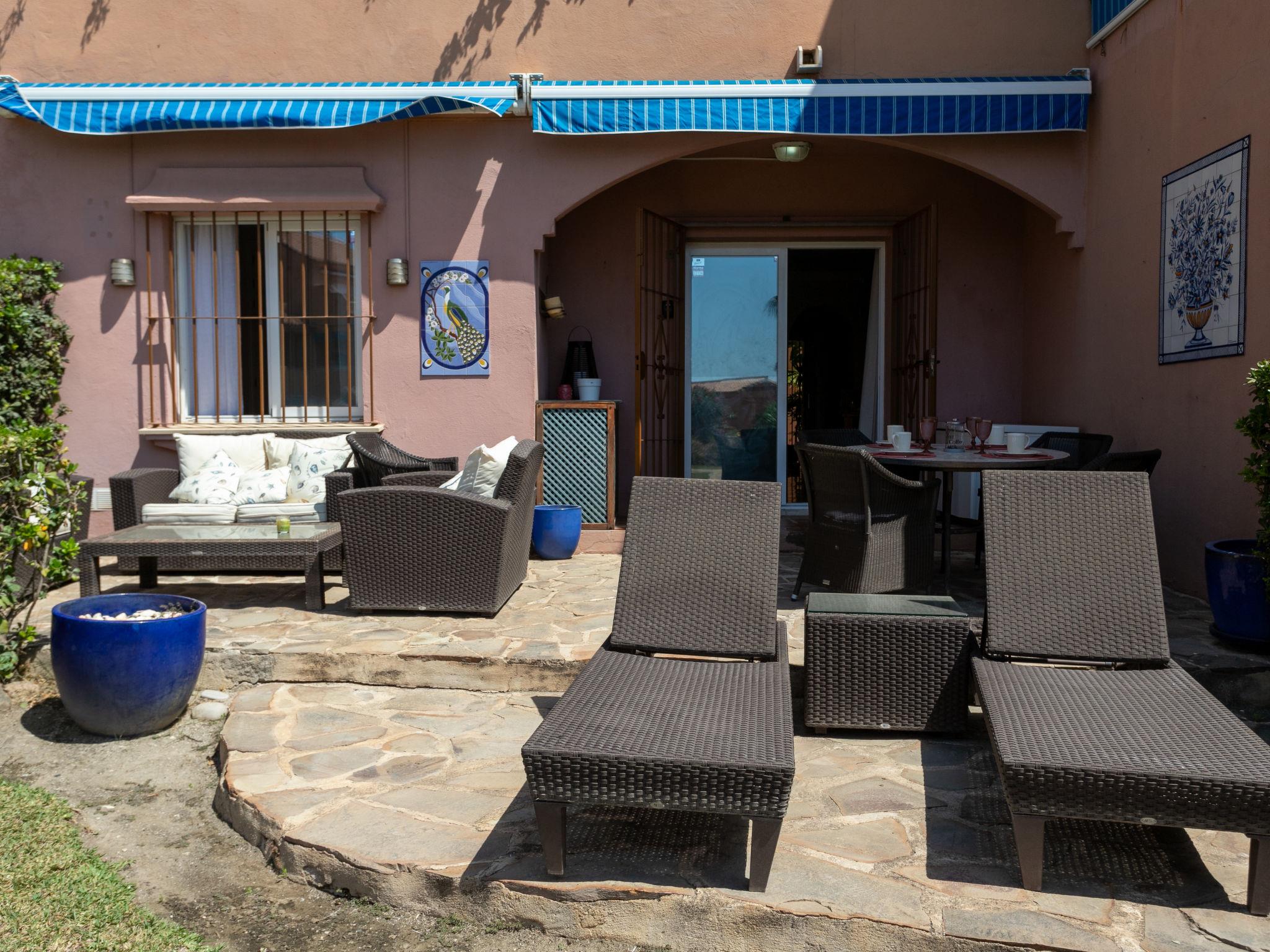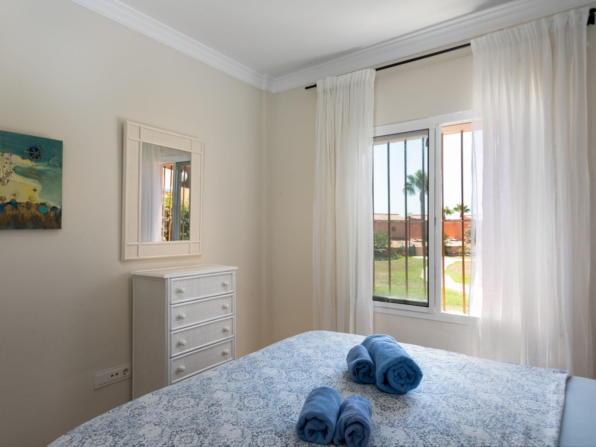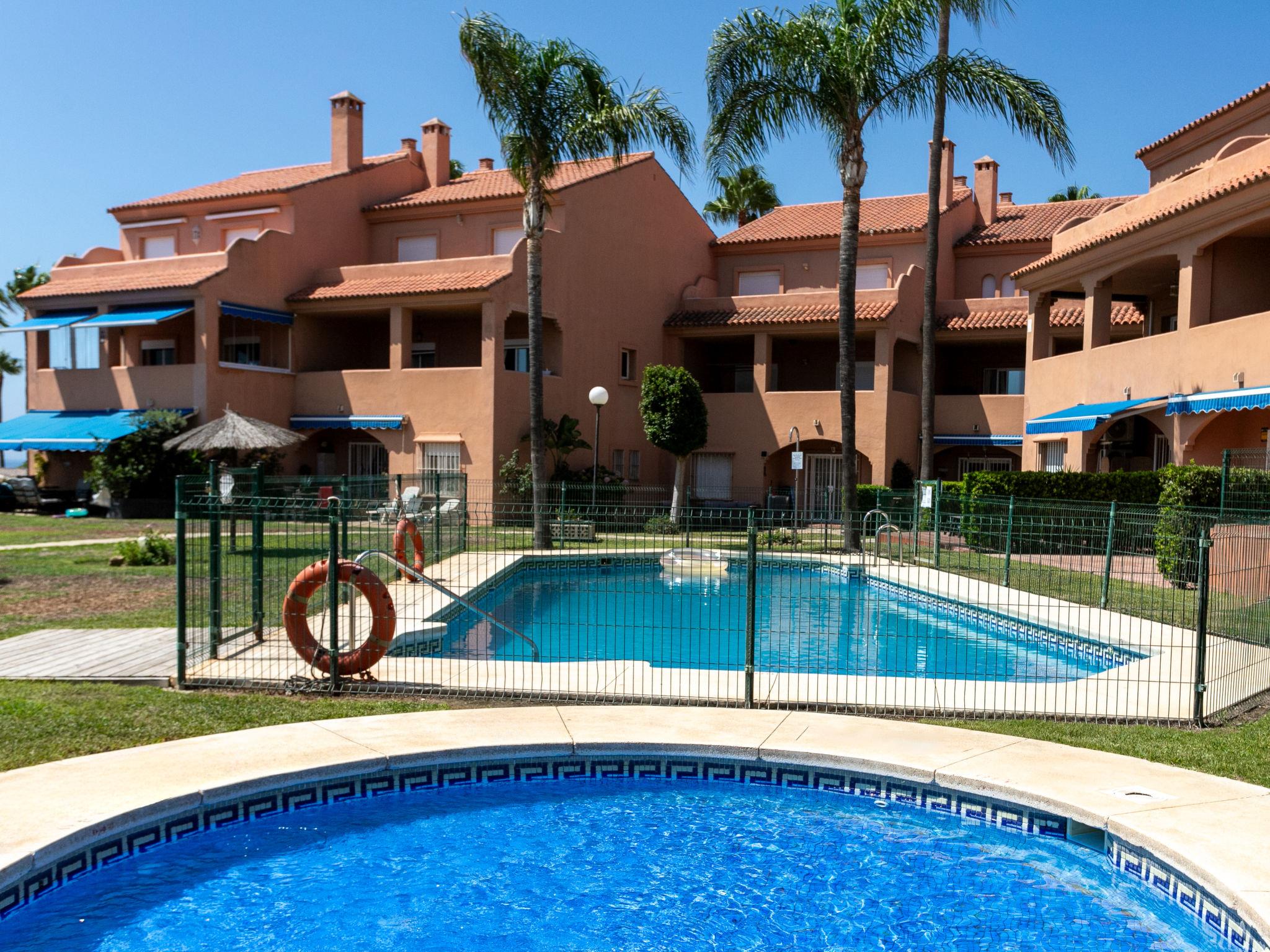 Playa Azul: Very beautiful, cosy apartment block "Pia's Sea Dream". 29 km from the centre of Marbella, 3 km from the centre of Estepona, from the sea, 100 m from the beach, direct access to the beach, south-west facing position. For shared use: garden with lawn, swimming pool angular fenced (12 x 4 m, depth 60 - 185 cm, seasonal availability: 01.Jan. - 31.Dec. pool opening hours: 09:00-20:00). Children's pool. In the house: lift. Supermarket 1 km, bus stop "Arena Beach" 170 m. Nearby attractions: Puerto Banús 20 km. Please note: car recommended. Suitable for families. Loading and unloading of baggage is possible at the holiday house. Airfield 80 km from the property. Neighbourhood highly sensitive to noise. Quietness and good behaviour expected.