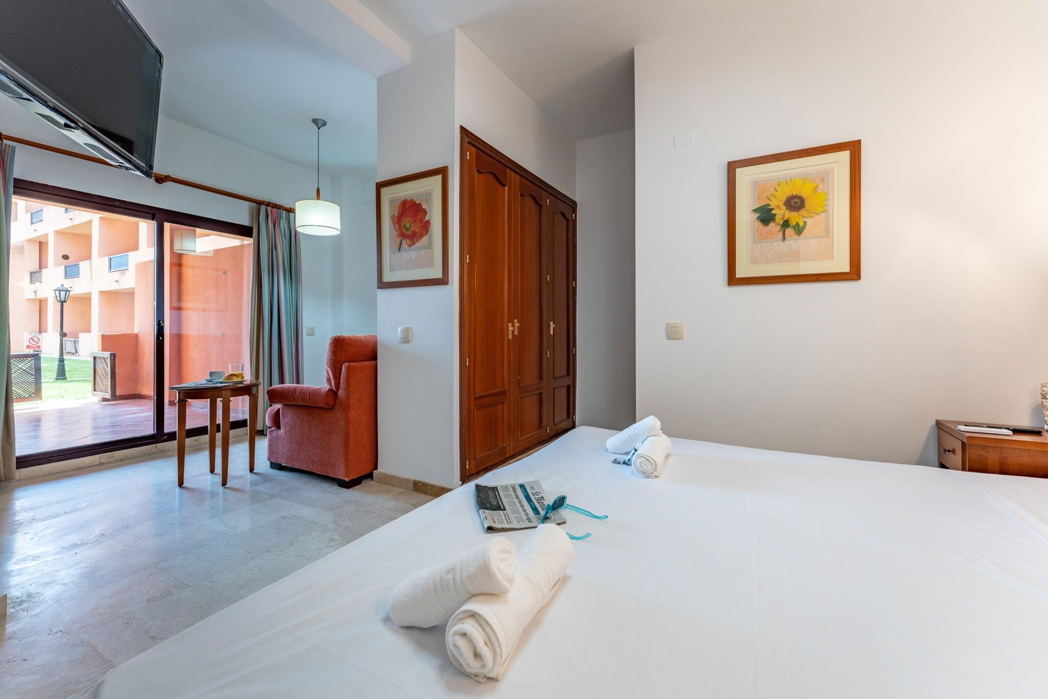 Studio i Don Juan - Manilva Nyd en drømmeferie i dette smukke lejlighedskompleks lige ved stranden, hvor du kan tage smukke gåture og opdage de nærliggende kystbyer eller Puerto de la Duquesa - kun 15 minutters gang væk. Eller besøg en af nudiststrandene. Indkvarteringen har et veludstyret køkken åbent til stuen, en dobbeltseng og et badeværelse med bruser. Det er funktionelle lejligheder, hvor komfort og praktisk er i højsædet. Beliggende i hjertet af Manilva, mellem Estepona og Sotogrande, er det perfekt forbundet takket være middelhavsmotorvejen, der fungerer som forbindelse til de vigtigste fritidscentre på Costa del Sol. Malaga Internationale Lufthavn er kun en time væk, og Gibraltar Lufthavn er lidt over en halv time væk. Services inkluderet: privat parkering og gratis adgang til den fælles pool. Hvem kan ikke lide at vågne op ved havet? Tænk ikke over det og reserver din hvile! Mobilitet: ikke egnet til personer med nedsat mobilitet