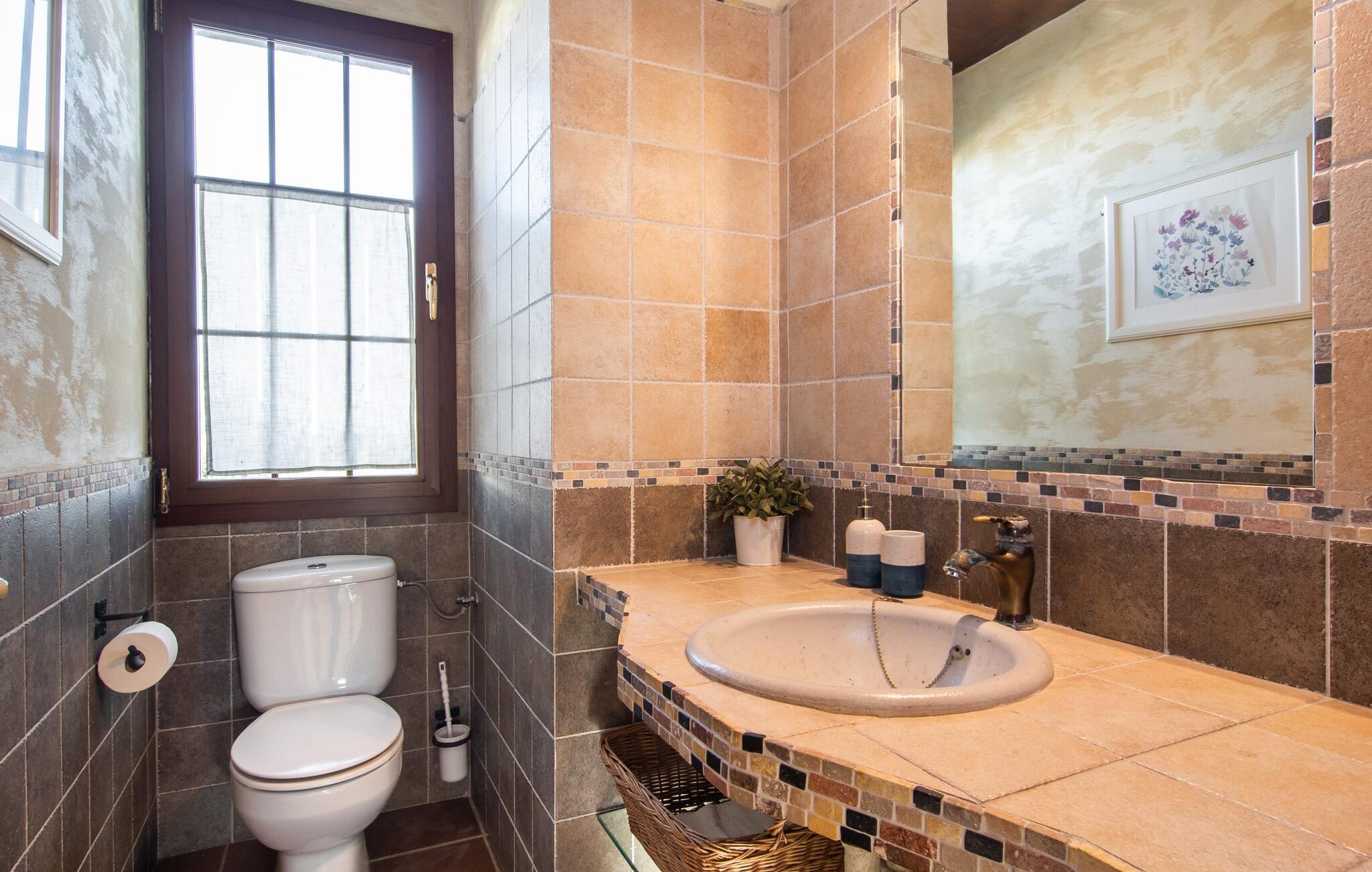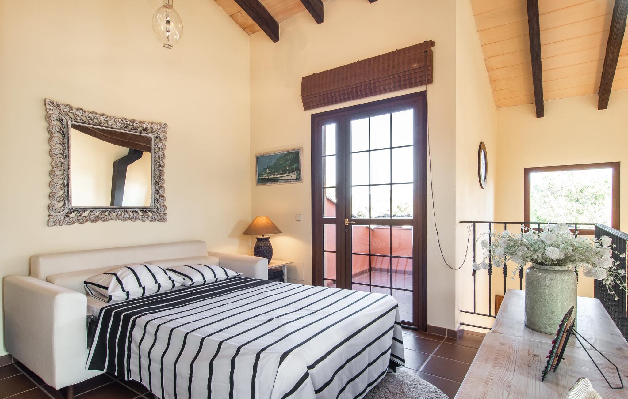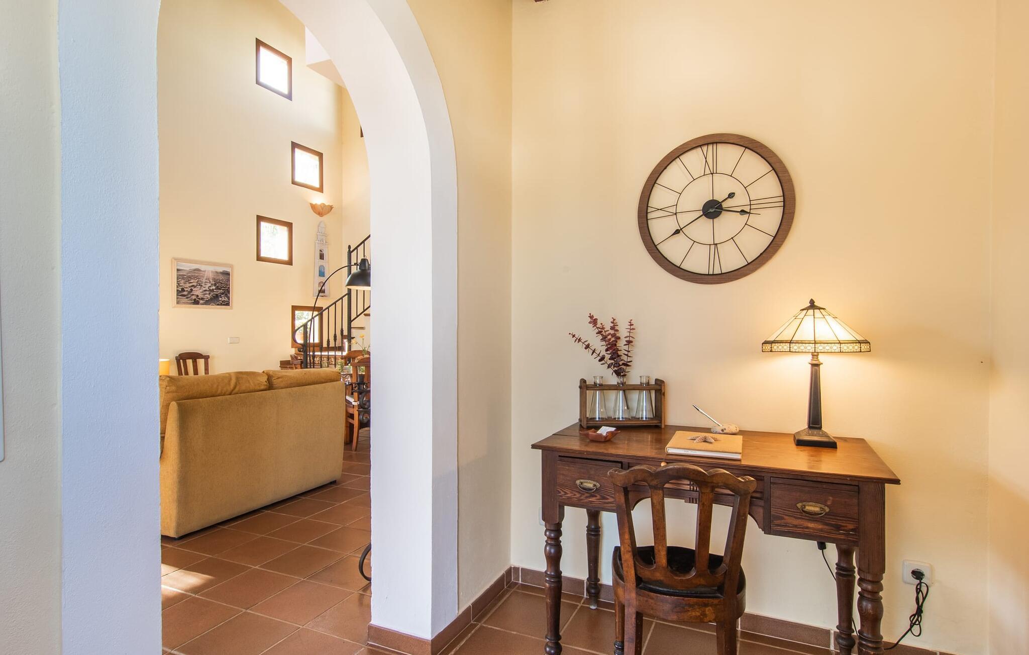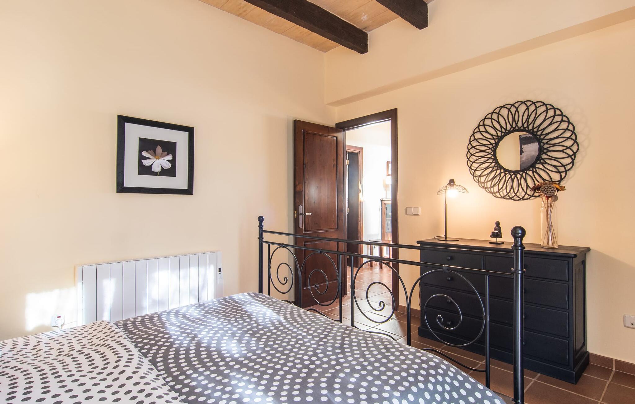 "Estrella de Son Serra" er en charmerende villa på en typisk villavej i landsbyen Son Serra de Marina på den nordøstlige del af Mallorca. Dette indbydende hus er ideelt for familier med børn eller par. Villaen har flere terrasseområder, nogle overdækkede, med komfortable havemøbler til spisning, grill eller bare afslapning. Tagterrassen byder på en fantastisk udsigt over det nærliggende hav, perfekt til at nyde solnedgange. Villaen er omgivet af velplejede græsplæner og grønne områder, der giver plads til børn at lege, mens voksne slapper af i liggestole. I kan parkere jeres lejebil direkte ved huset. Villaen har en rustik mallorcansk charme med møbler af høj kvalitet og masser af naturligt lys takket være store vinduespartier i hele huset. Det åbne opholds- og spiseområde fører problemfrit ud til terrassen og skaber en overgang mellem indendørs og udendørs ophold. Interiøret er lyst og luftigt med lyse, naturlige farver og klinkegulve, suppleret med mørke træbjælker, møbler og dørkarme. I stueetagen er der et veludstyret køkken, to soveværelser og et badeværelse. En buet trappe fører til øverste etage, hvor et gallerisoveområde åbner ud til tagterrassen og inkluderer et gæstetoilet. I kælderen finder I et bordtennisbord, bordfodboldbord og poolbord til underholdning. Fincaen "Estrella de Son Serra" ligger i et roligt boligområde i Son Serra de Marina, 7 km fra Can Picafort. Stranden Playa de Son Serra de Marina ligger kun 750 m væk, butikker, restauranter og caféer kan findes i byen og er også inden for gåafstand.