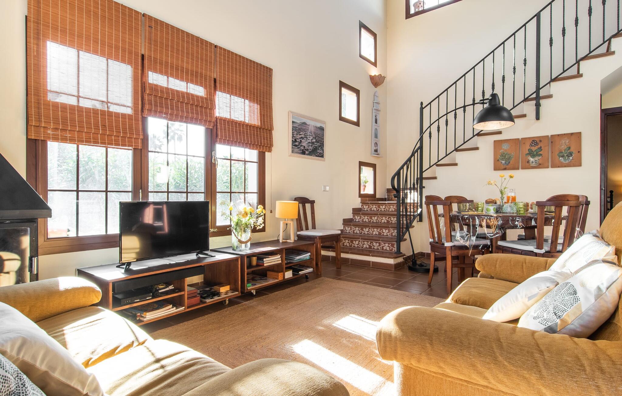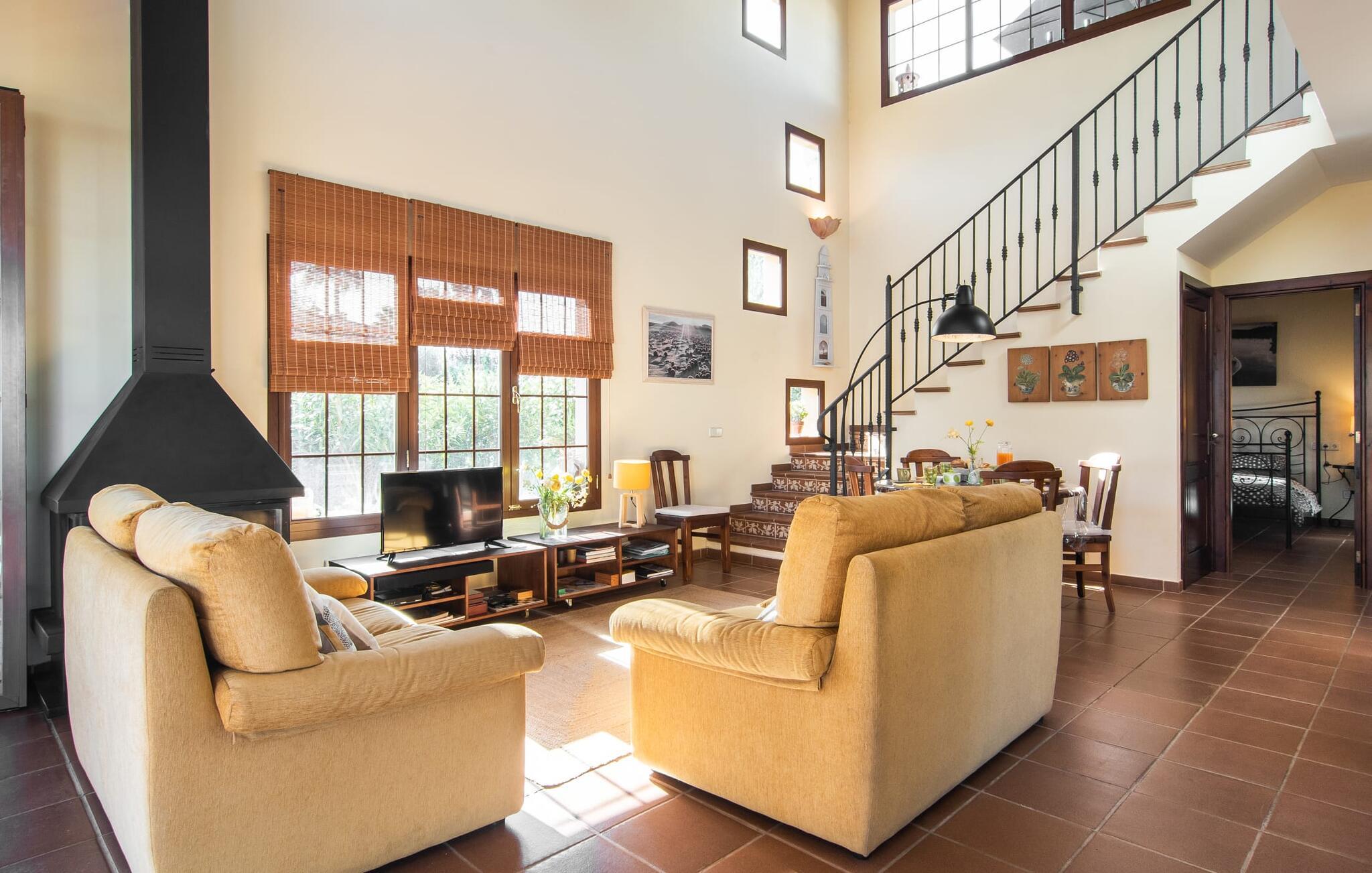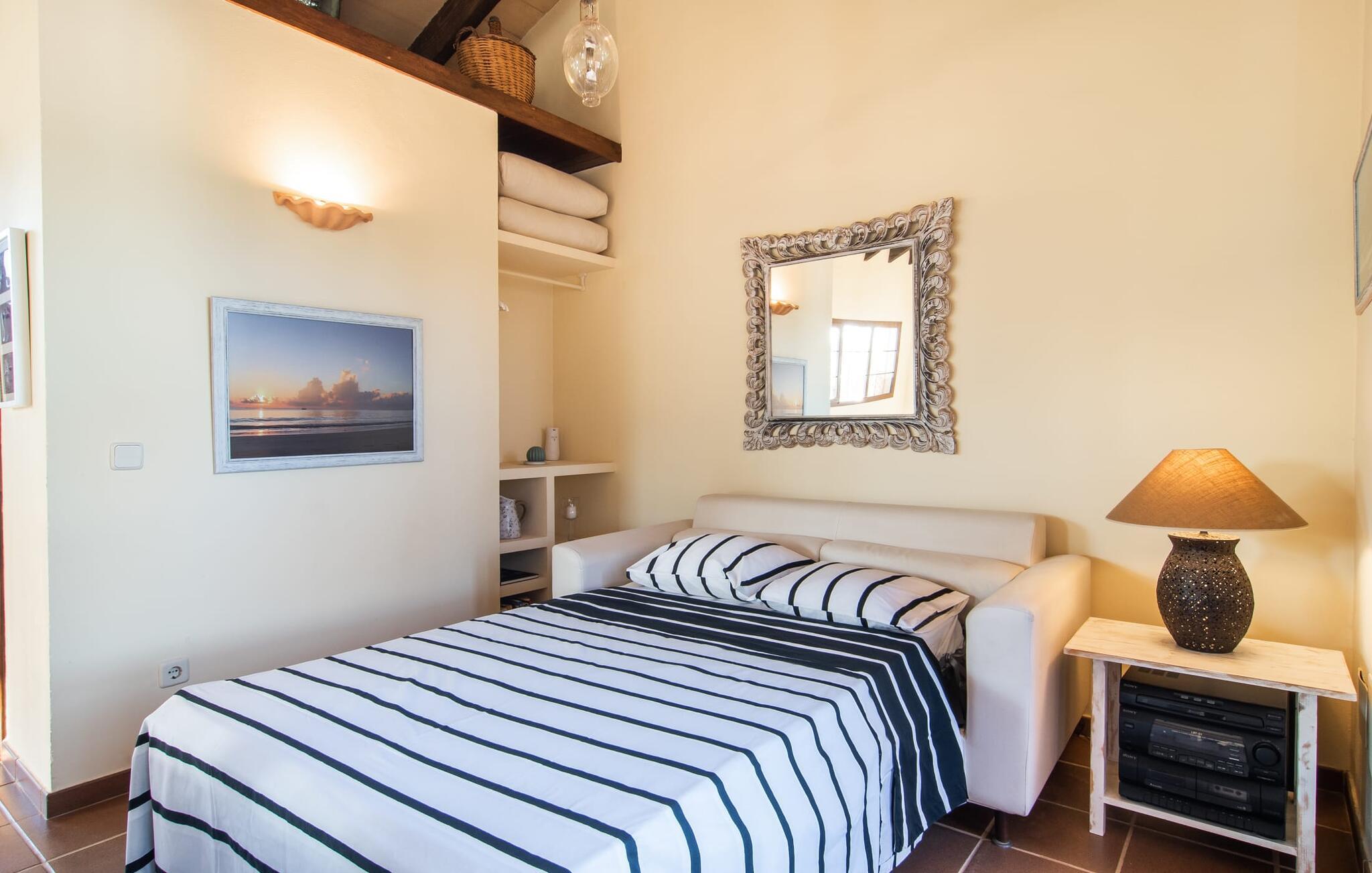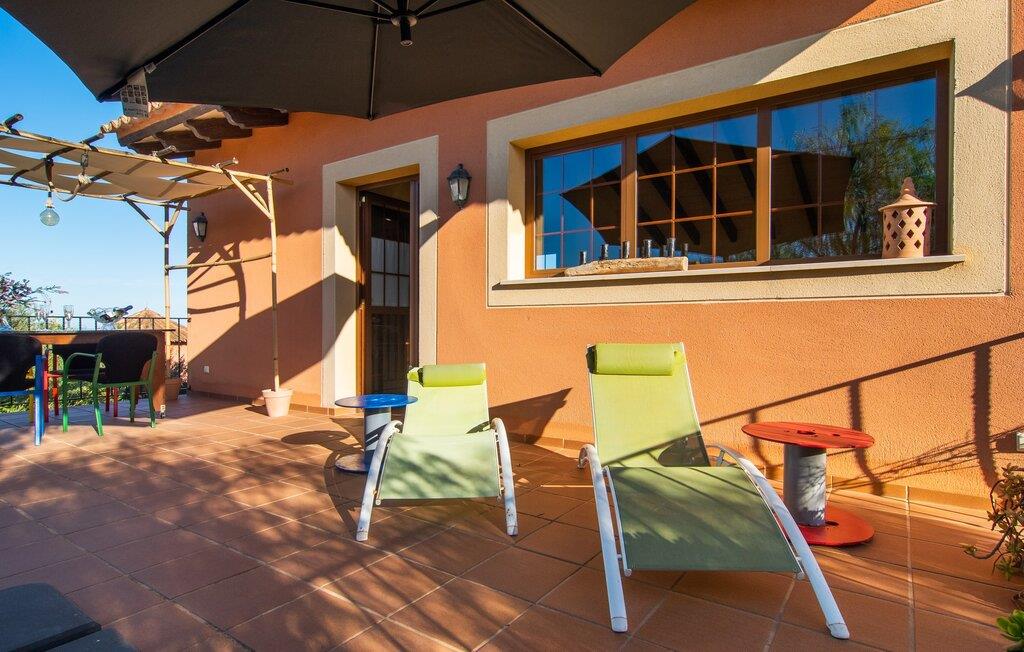 "Estrella de Son Serra" er en charmerende villa på en typisk villavej i landsbyen Son Serra de Marina på den nordøstlige del af Mallorca. Dette indbydende hus er ideelt for familier med børn eller par. Villaen har flere terrasseområder, nogle overdækkede, med komfortable havemøbler til spisning, grill eller bare afslapning. Tagterrassen byder på en fantastisk udsigt over det nærliggende hav, perfekt til at nyde solnedgange. Villaen er omgivet af velplejede græsplæner og grønne områder, der giver plads til børn at lege, mens voksne slapper af i liggestole. I kan parkere jeres lejebil direkte ved huset. Villaen har en rustik mallorcansk charme med møbler af høj kvalitet og masser af naturligt lys takket være store vinduespartier i hele huset. Det åbne opholds- og spiseområde fører problemfrit ud til terrassen og skaber en overgang mellem indendørs og udendørs ophold. Interiøret er lyst og luftigt med lyse, naturlige farver og klinkegulve, suppleret med mørke træbjælker, møbler og dørkarme. I stueetagen er der et veludstyret køkken, to soveværelser og et badeværelse. En buet trappe fører til øverste etage, hvor et gallerisoveområde åbner ud til tagterrassen og inkluderer et gæstetoilet. I kælderen finder I et bordtennisbord, bordfodboldbord og poolbord til underholdning. Fincaen "Estrella de Son Serra" ligger i et roligt boligområde i Son Serra de Marina, 7 km fra Can Picafort. Stranden Playa de Son Serra de Marina ligger kun 750 m væk, butikker, restauranter og caféer kan findes i byen og er også inden for gåafstand.