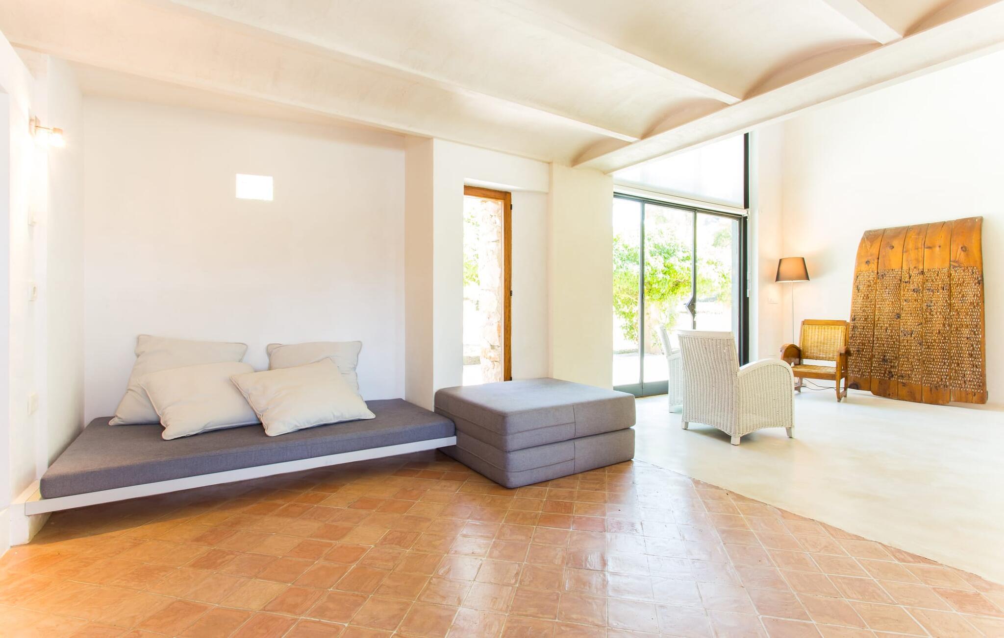 Denne villa virker som en frisk brise på sind og sjæl. Måske er det det store eukalyptustræ i haven, i hvis skygge man virkelig kan trække vejret dybt, når man ankommer og tage et stille blik på husets og den store ejendoms særlige arkitektur? Her legede vi med former og farver: De forskellige dele af bygningen forbinder sig med hinanden, bevæger sig fremad og adskilles fra hinanden. Pasteltoner, lyse hvide og natursten forstærker dette indtryk. Det store hovedhus dominerer; Det separate gæstehus med 90 m² boligareal kan kun ses ved andet øjekast. "Eucalipto" er bestemt alt undtagen én ting: kedeligt. I ved ikke, om I skal sidde eller ligge udenfor: på bænken med hynder, med den hvide væg bag jer, der giver en interessant udsigt; på rattansæderne med udsigt over poolen og de grønne bakker; ved det rustikke bord under dette træ, helst med en afslappende urtete; ved det lange spisebord under taget, mens bøffer, fisk eller vegetariske delikatesser står på grillen; på den lille naturstensterrasse dækket med frodigt grønt, hvor man bare kan drømme eller læse en bog; Eller vil I hellere lægge jer på en af ??de mange liggestole ved poolen? Om det er skygge eller sol, det er virkelig svært for jer at bestemme (du kan endda bestemme, om I vil parkere jeres bil under træer foran huset...). For en lille forfriskning er det bare at hoppe i den udendørs bruser eller i poolens blå vand - men I kan også gå langsomt, trin for trin... Der er også cool design og specielle steder at dvæle indenfor: I stueetagen af ??hovedhuset er der flere opholdsrum, nogle med en vægsofa, nogle med et spisebord, nogle med et hvidt loungehjørne til hygge. Sæt fødderne op i den stilfulde læderlænestol foran pejsen: intet problem. Gulv-til-loft vinduer skaber også en udendørs følelse indenfor. Alt er lyst, originalt, elegant minimalistisk. Små trin afbryder komfortabelt det flydende rum. Tre soveværelser og tre badeværelser med bruser (det ene endda med et ekstra badekar) er også i stueetagen, mens det mindste værelse er perfekt til to børn eller som walk-in-closet. I det moderne køkken med gaskomfur og dør til ydersiden er alt godt gemt og intet står i vejen; Her kan I godt arbejde med mange mennesker. Ovenpå er der yderligere to soveværelser, hvoraf det ene er rummeligt og byder på en fantastisk udsigt fra dobbeltsengen. Det gør det svært at stå op om morgenen og forberede sig til dagen på badeværelset... I hovedhuset er alt rettet mod farverigt liv og socialt samvær; Men vil I være helt alene, finder I jeres private oase i gæstehuset til to personer: Med terrassedøren åben sover I nærmest, som om I sov udenfor, og med badeværelse med bruser og eget tekøkken, I sover næsten, som om I sov udenfor selvstændigt. Og alligevel kan I være lige midt i handlingen. Alt er så tæt på: kun cirka 3 km fra "Eucalipto" venter det autentiske Mallorca jer med den lille bakkede juvel Artá ??- midt mellem mandeltræer. Gå ikke glip af at slentre gennem byens oplyste gader om aftenen. Fra den maleriske pilgrimskirke San Salvador har I en enestående udsigt over den 25 km lange, uhindrede kyst med sine stejle klipper og smukke badebugter. En gåtur gennem "Cuevas de Artá", den største og mest imponerende drypstensgrotte på Mallorca, er en dejlig måde at køle af på varme dage. Cala Ratjada, et af øens mest populære feriesteder, byder også på en masse variation, fra en strandpromenade til caféer og natklubber til vidunderlige strande. Andre værdifulde destinationer: "Villa March" (tidligere residens for grundlæggeren af ??Banca March), "Far de Capdepera" fyrtårnet eller den imponerende "Castell de Capdepera" fæstning. Derudover er der en 30 km lang, for det meste flad cykelsti "Via Verde" mellem Manacor og Artà i nærheden. Denne tidligere jernbanelinje byder på maleriske udsigter over det omkringliggende landskab med dets fåregræsgange, geder, æsler og heste, for ikke at tale om. talrige mandler-, oliven-, appelsin- og johannesbrødtræer. Meget stille, men ikke isoleret - denne ekstraordinære villa: "Eucalipto" er beliggende i et næsten toscansk bakkelandskab med flere feriehuse. Den maleriske Artá ??i nærheden byder på alt, hvad I har brug for på ferien. Hvis I foretrækker noget mere avanceret, kan I nå Cala Ratjada med dens havnepromenade, pulserende natteliv og udsøgte fiskerestauranter på et kvarter.