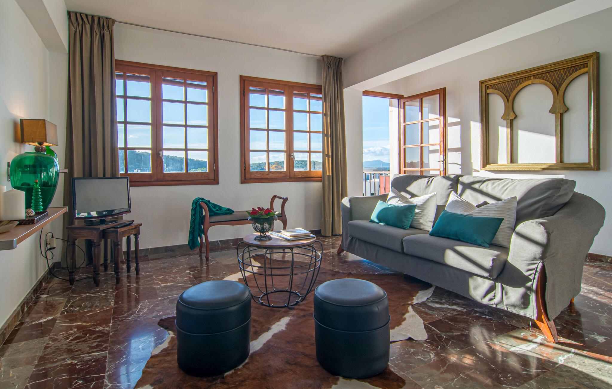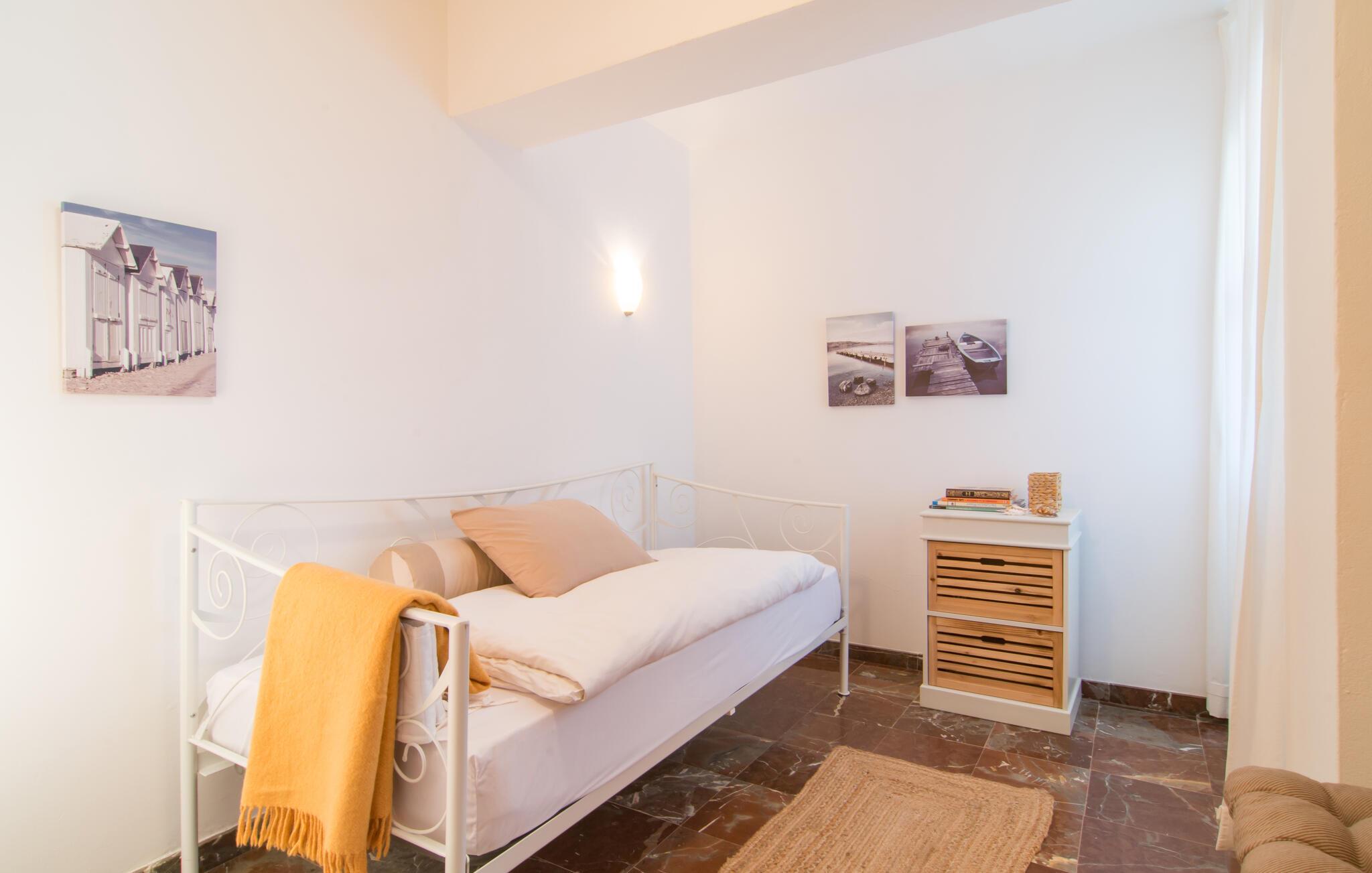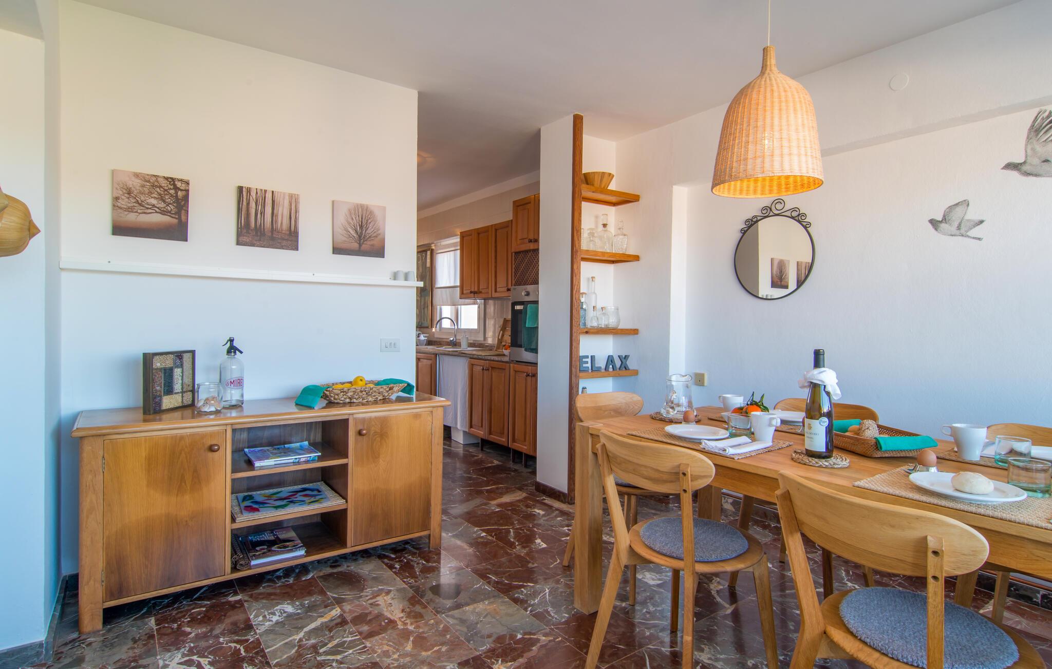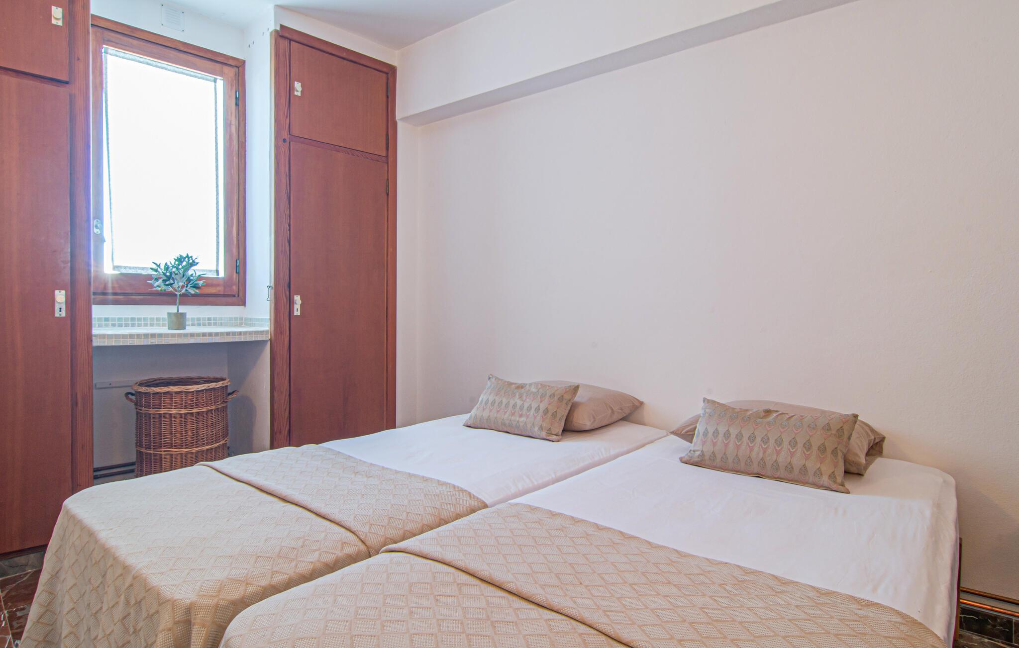Denne lyse og rummelige ferielejlighed giver jer mulighed for at kombinere en strandferie på Mallorca med dejlige kulturelle udflugter. Nyd det smagfuldt møblerede interiør med en afslappet morgenmad i den indbydende spisestue, og planlæg jeres aktiviteter i fred og ro i den lyse stue. Efter en begivenhedsrig dag kan I slå jer ned på sofaen til en spilleaften eller med en god bog.