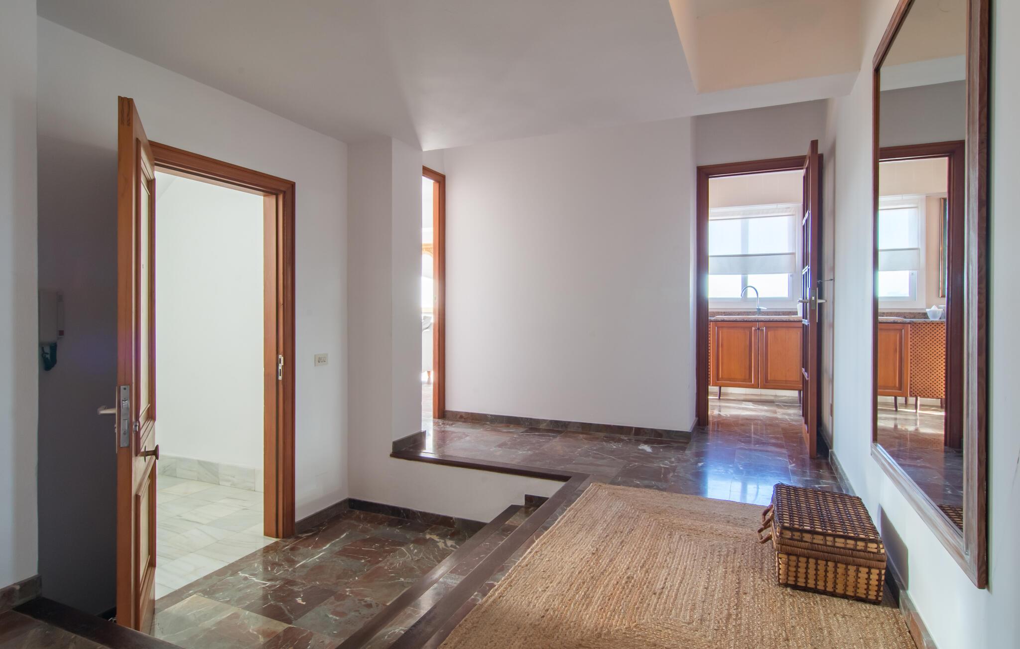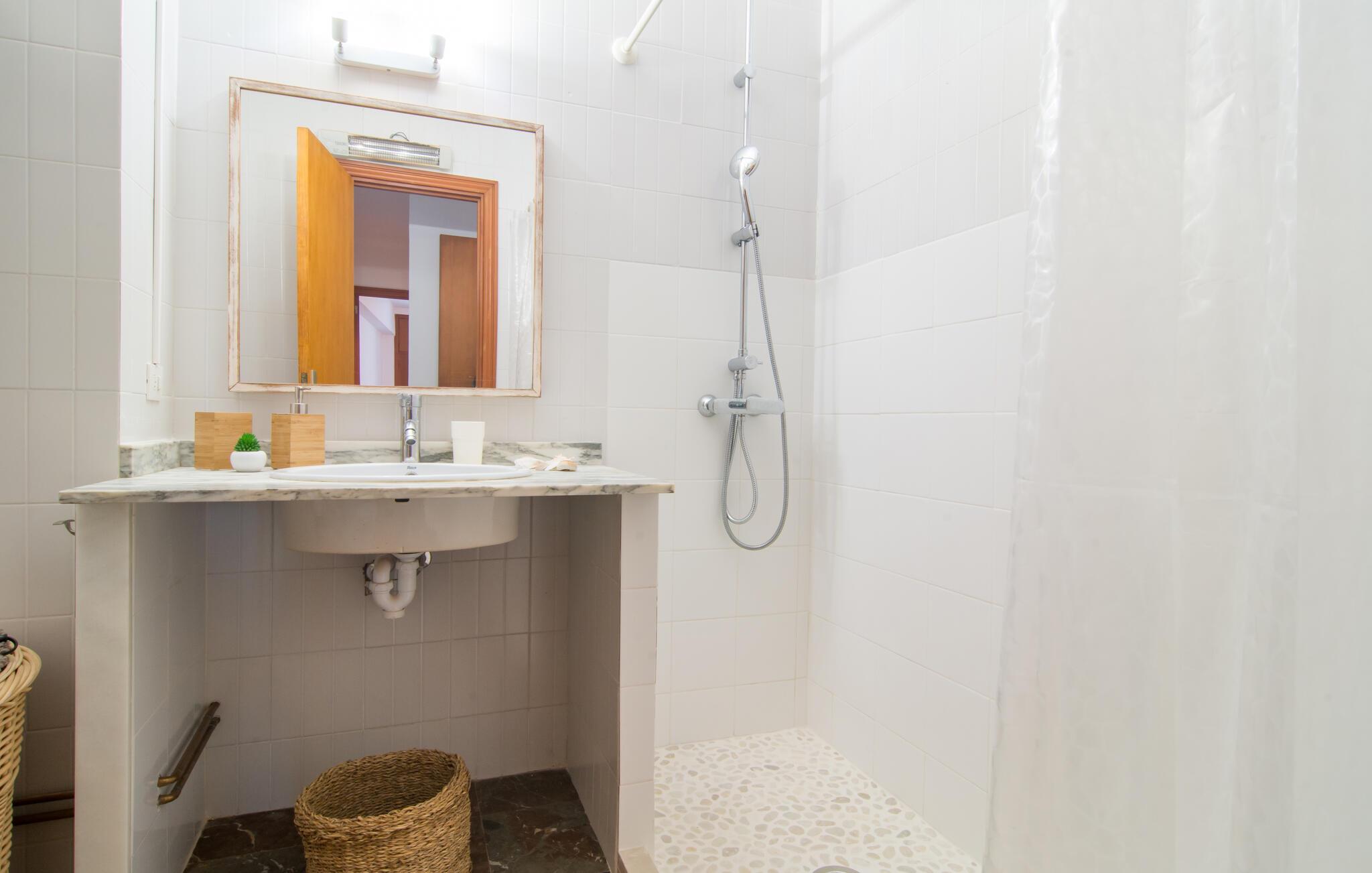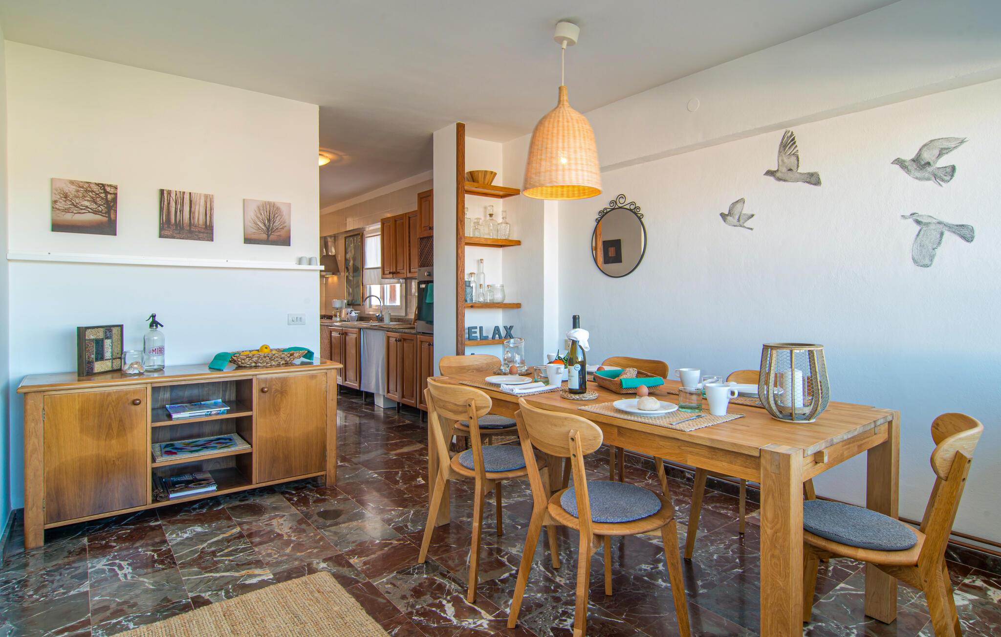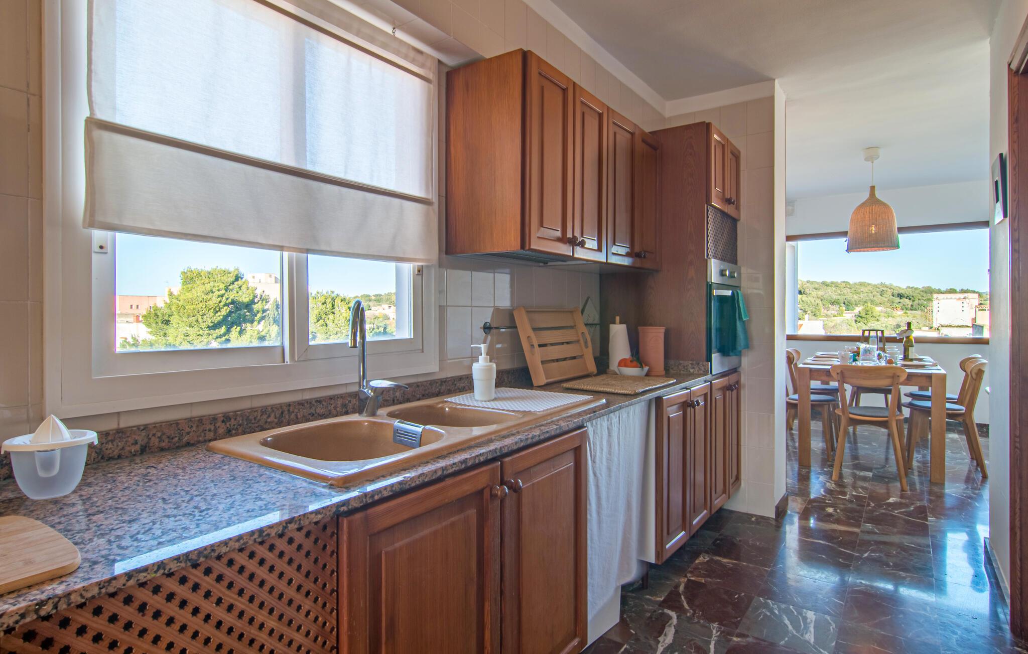 Denne lyse og rummelige ferielejlighed giver jer mulighed for at kombinere en strandferie på Mallorca med dejlige kulturelle udflugter. Nyd det smagfuldt møblerede interiør med en afslappet morgenmad i den indbydende spisestue, og planlæg jeres aktiviteter i fred og ro i den lyse stue. Efter en begivenhedsrig dag kan I slå jer ned på sofaen til en spilleaften eller med en god bog.