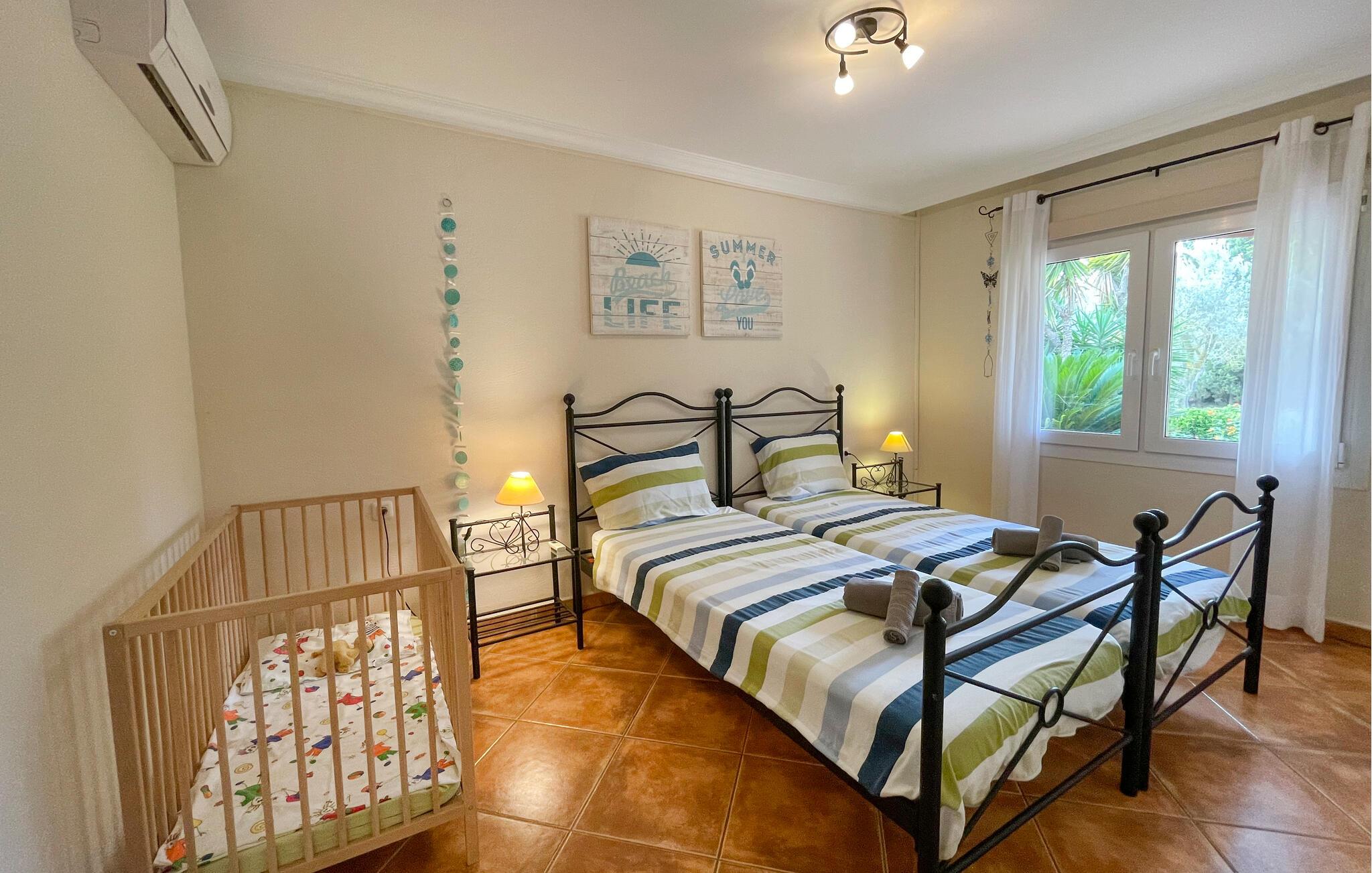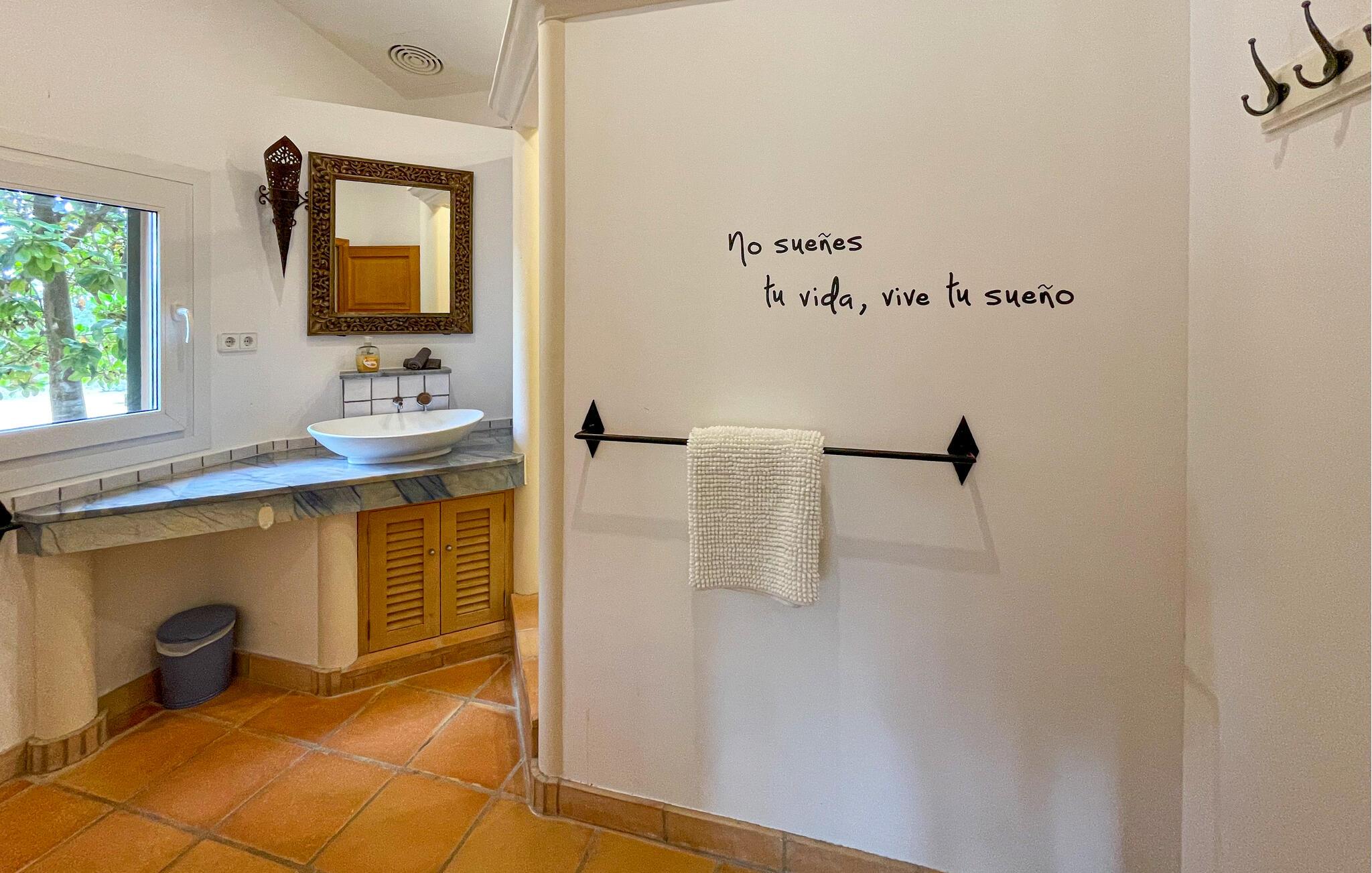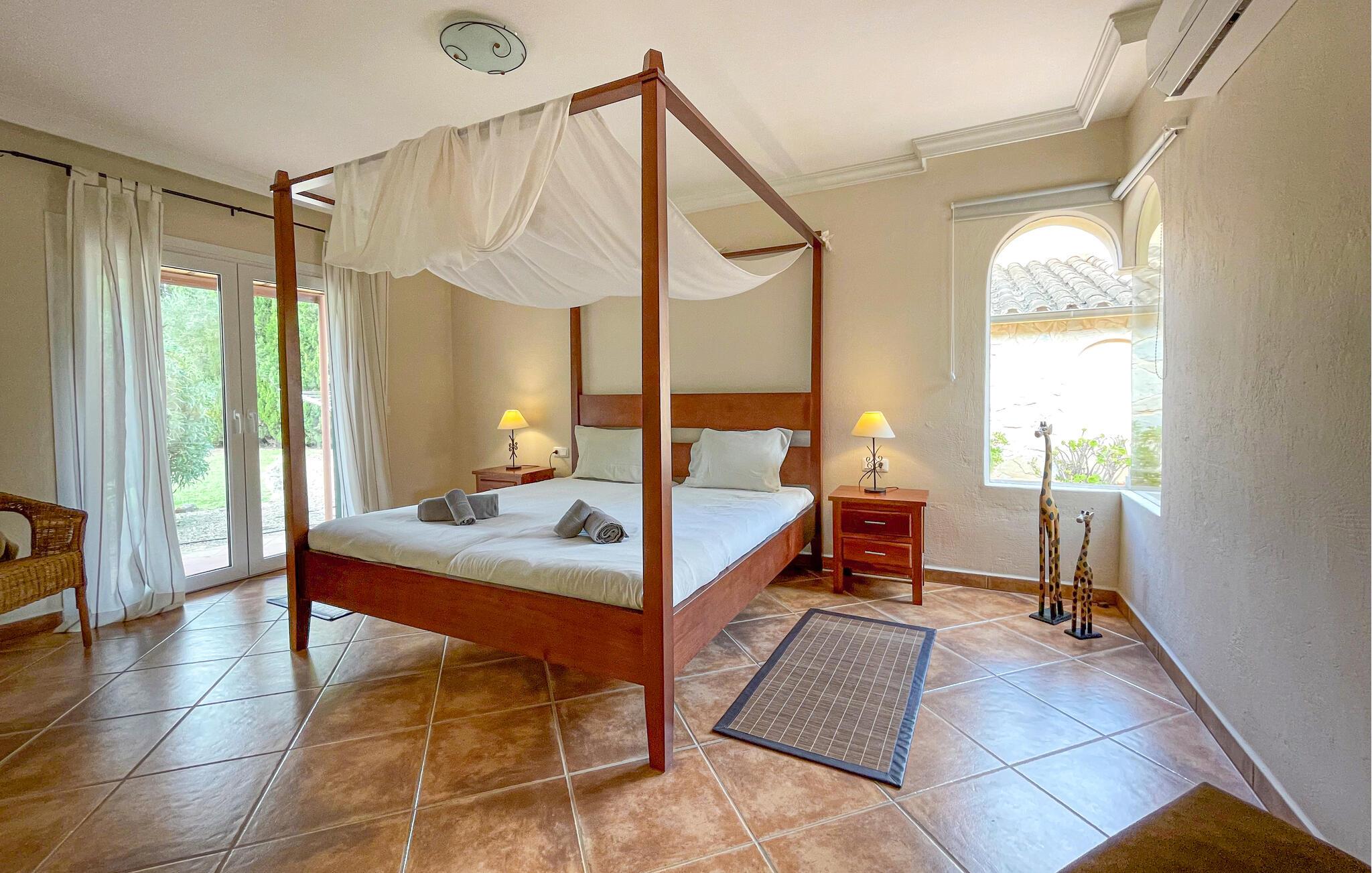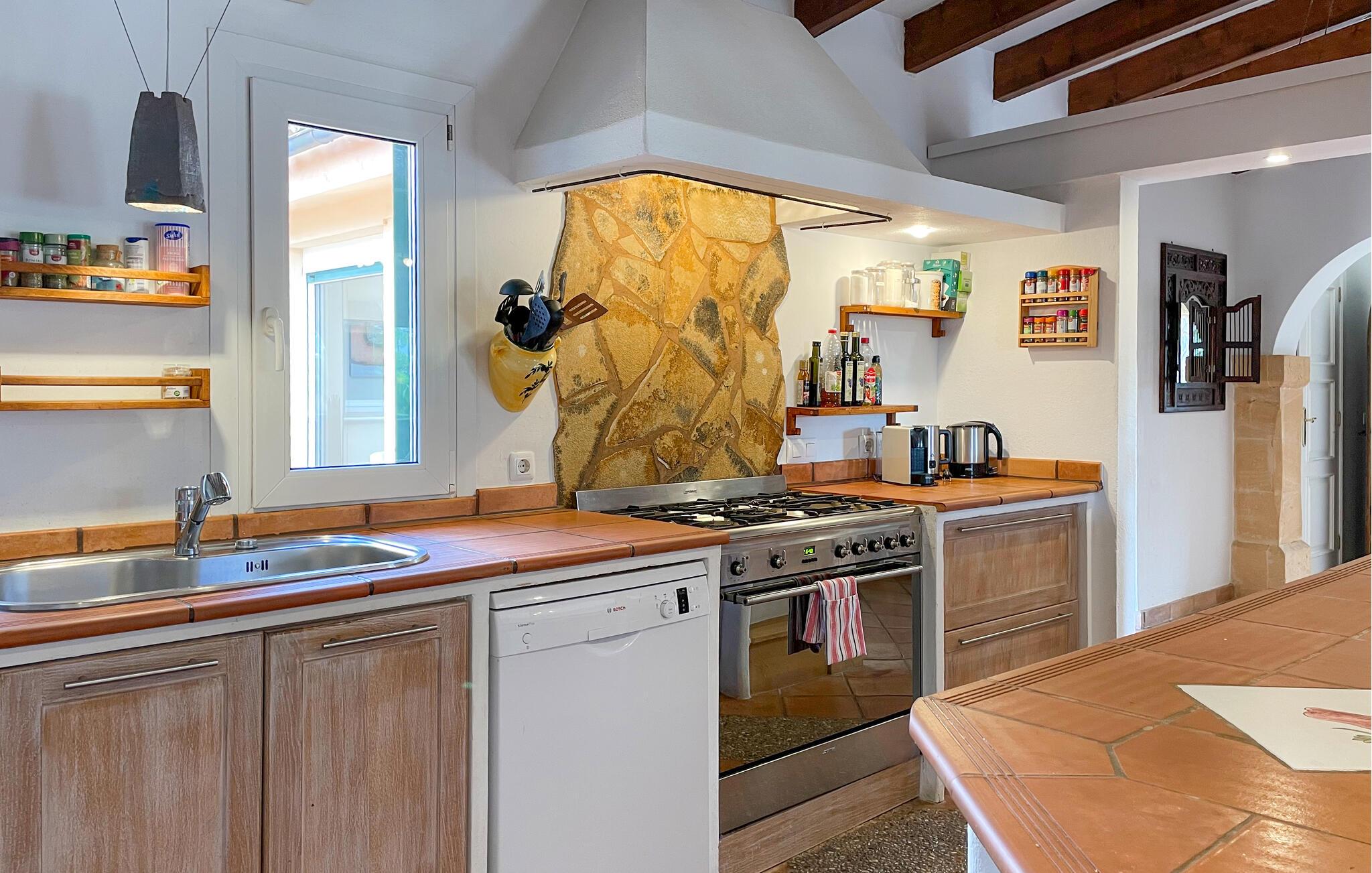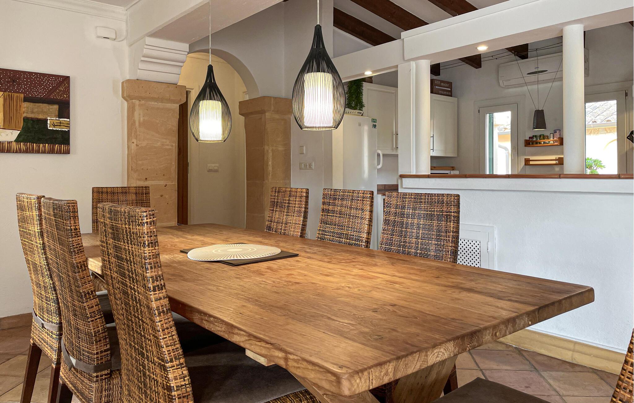 Denne fortryllende mallorcanske finca ligger på en smuk, velholdt grund og byder jer velkommen med et rummeligt og smagfuldt møbleret interiør, hvor I vil føle jer hjemme fra første dag. Tilbered middelhavsretter sammen i det rummelige køkken og snak over lange måltider ved det indbydende spisebord. Find tid til en hyggelig filmaften sammen, eller afslut en lang dag i solen med en spilleaften.