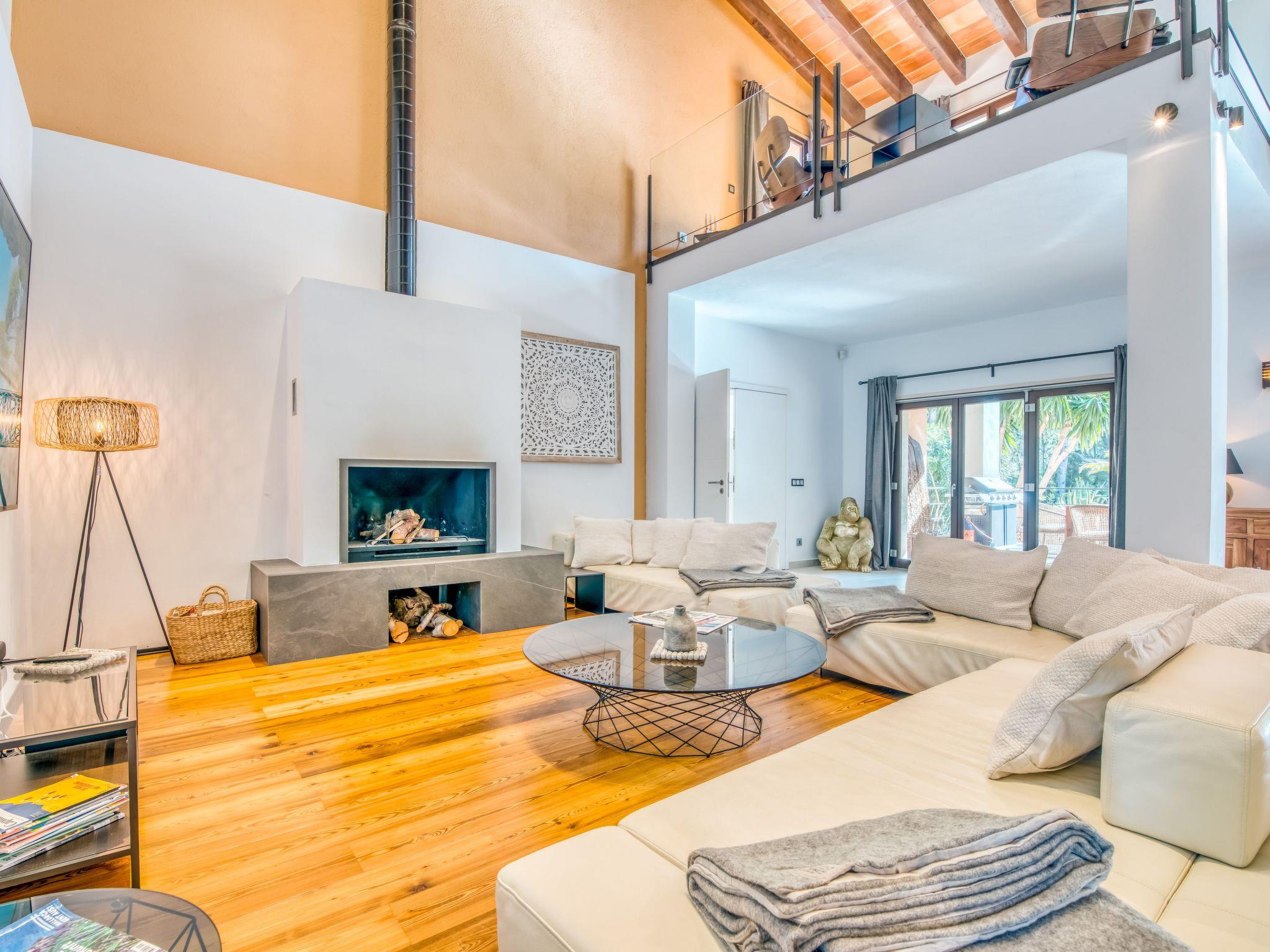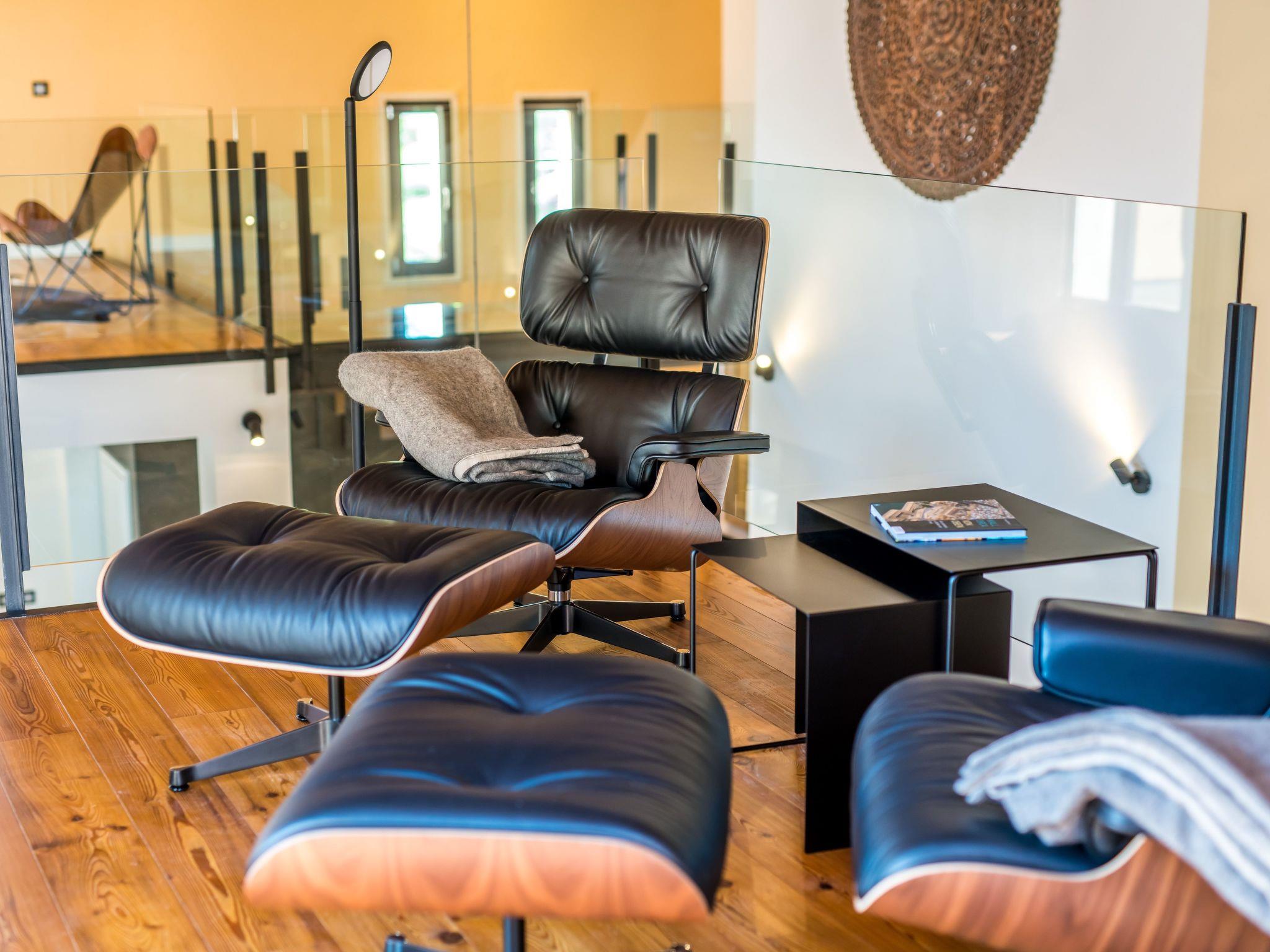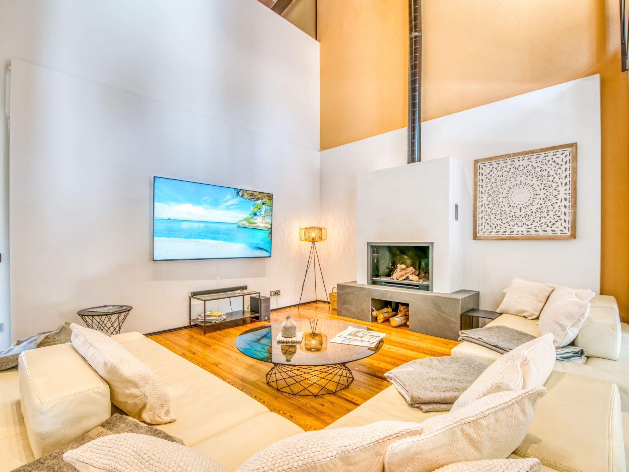 Other living room facilities : The living/dining/lounge area has approx. 150m2 on 2 levels, with an open gallery on the upper floor with a further seating area and exits to 2 terraces of approx. 100m2. On the ground floor there is a dining area with 2 large wooden tables that offer seating for up to 12 people. A spacious and elegant lounge area with an exclusive designer leather sofa landscape rounds off the living area. The unique architecture with ceilings up to 7.50 metres high and a view into the beams of the house, a steel bridge with a glass floor as a connection between the two galleries and a large planting zone with live cacti ensure a special spatial experience.