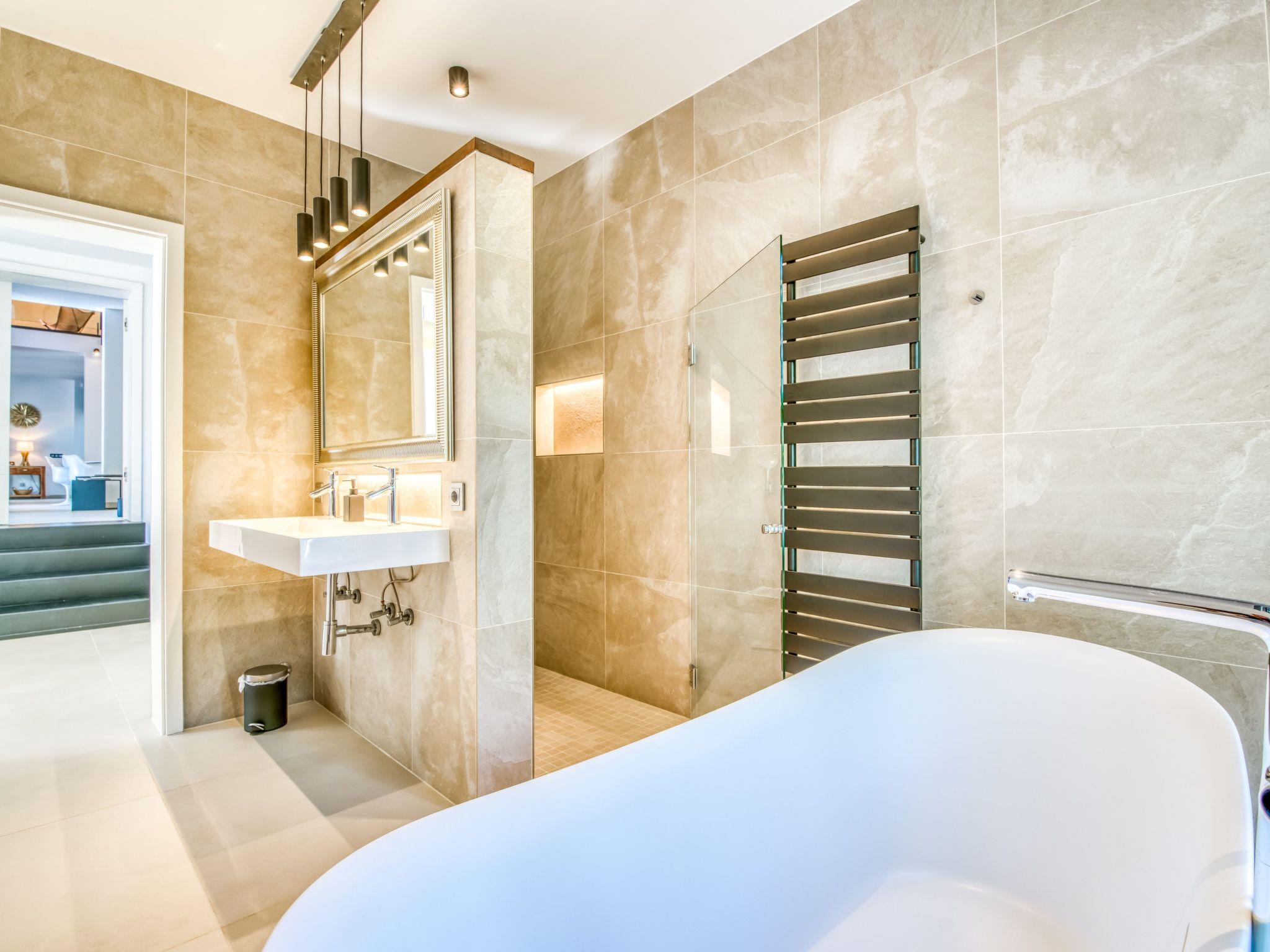 The bedrooms are all air-conditioned, the open, loft-like living/dining room has ceilings up to 7.50 metres high. The bathrooms each have walk-in showers, 3 of them even have a bathtub. In the kitchen you will find both gas and induction hobs, plus of course an oven, steam cooker and a fully automatic coffee machine - all from Siemens. And the barbecue - a large gas barbecue is located on the covered terrace. For the ingredients and the cool drinks, there is of course a large double-sided fridge-freezer combination - if you want to make your own ice cubes... Plus classic bar equipment. We open the bar at the start of the season with a selection of drinks to suit our taste. Over the summer, our guests then bring in what they have drunk themselves and what they love but are perhaps still missing. Then the bar is handed over to the next guest and so on. This is what we call give and take... where everyone leaves their own personal calling card - pure, mixed, as a cocktail or ice-cold on the rocks.