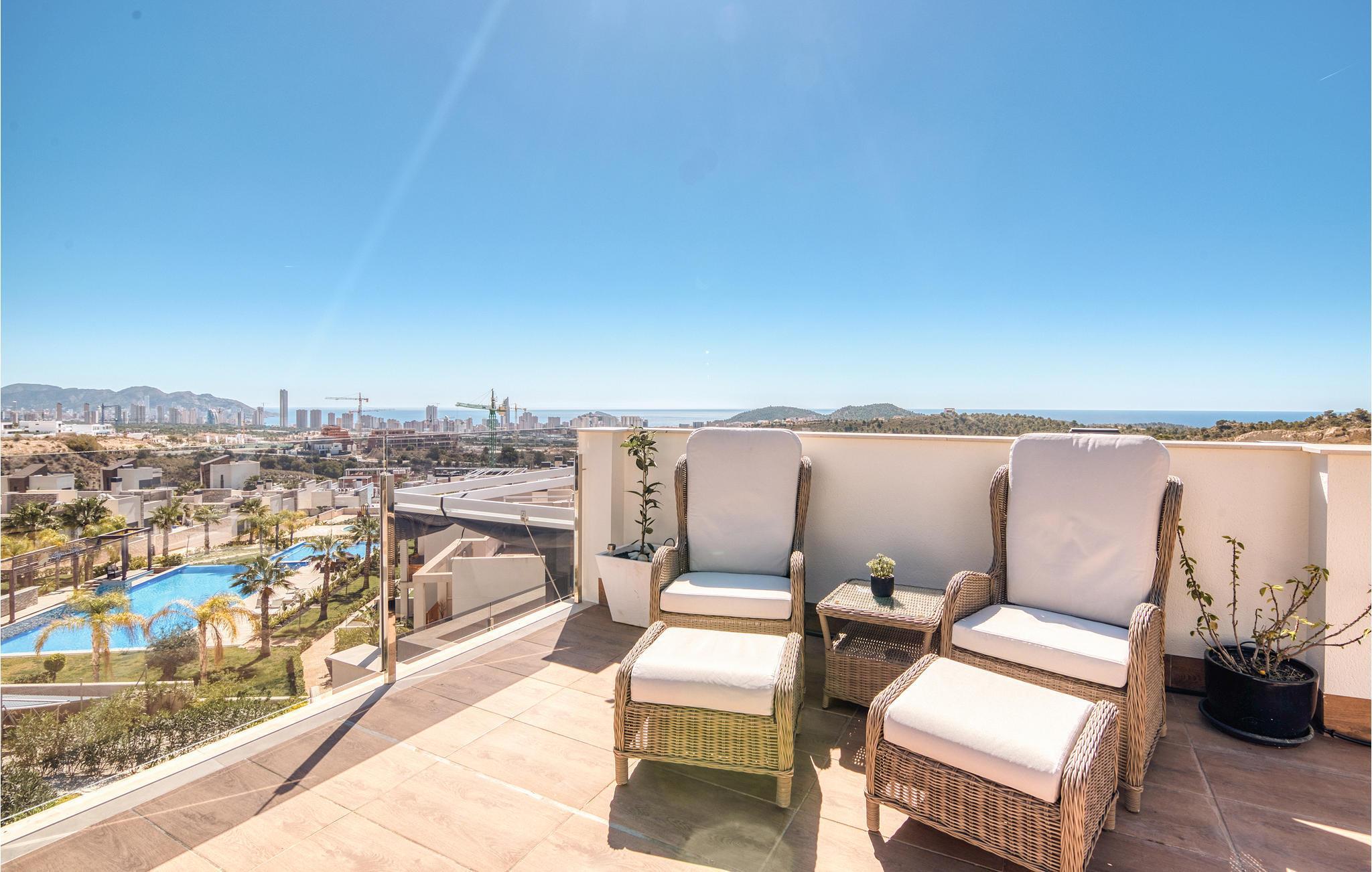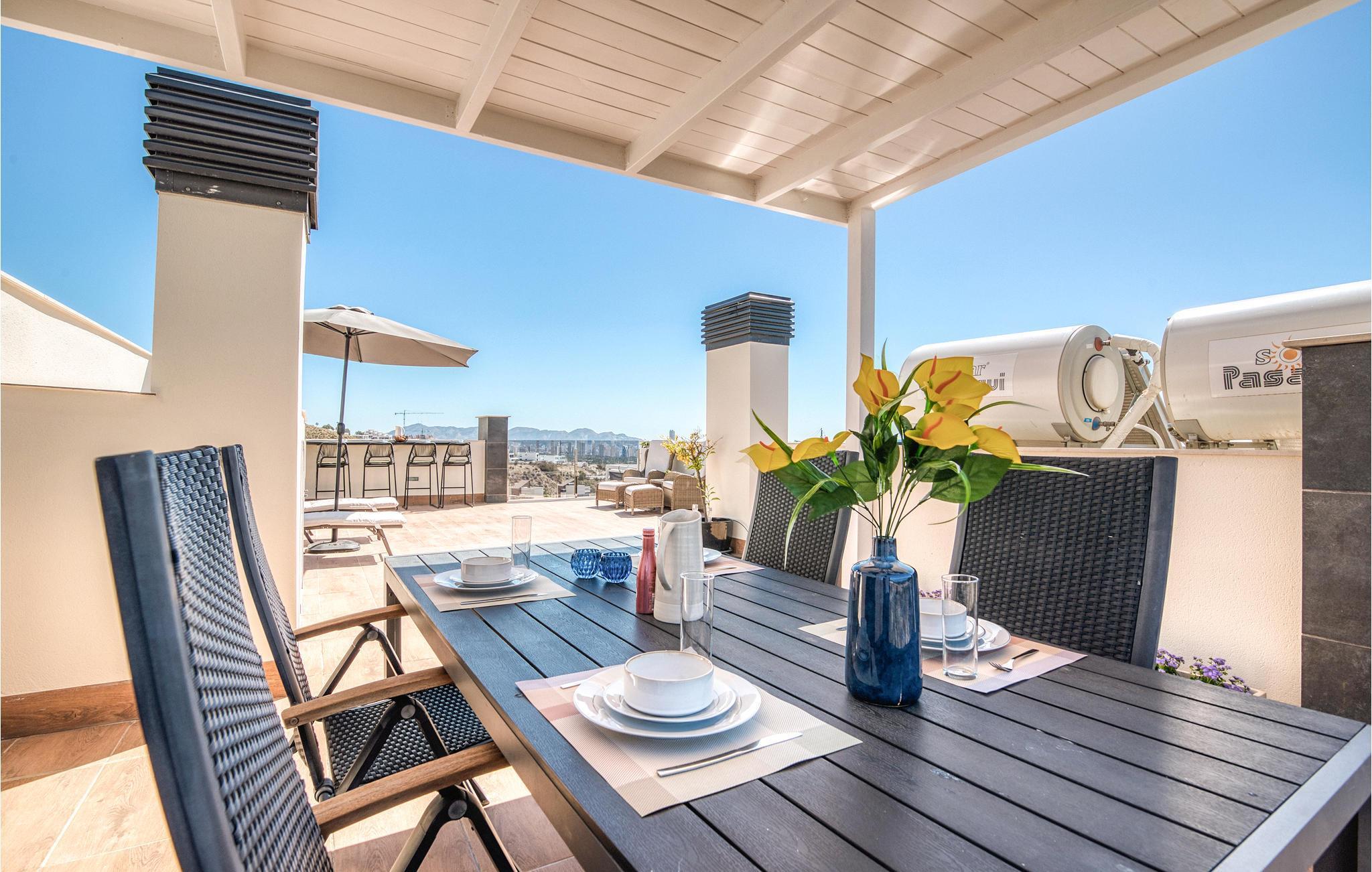 Den indbydende lejlighed er det optimale sted for en afslappende pause med de bedste underholdningsmuligheder i nærheden, herunder golfbanen, som I kan nå til fods. I vil føle jer hjemme, så snart I træder ind i de lyse lokaler. Her er luft og lys allestedsnærværende, og den moderne og komfortable indretning runder oplevelsen af. Så snart I vågner kan I nyde et fantastisk panorama. Planlæg jeres dags udflugter og aktiviteter over morgenmad med en vidunderlig udsigt, eller slap af ved den fællespool. Nyd solen i fulde drag på terrassen, herfra kan I se havet, forfriske jer i poolen og lade hverdagen ligge. Om aftenen kan I slappe af på tagterrassen og tilberede nogle lækre retter på grillen.