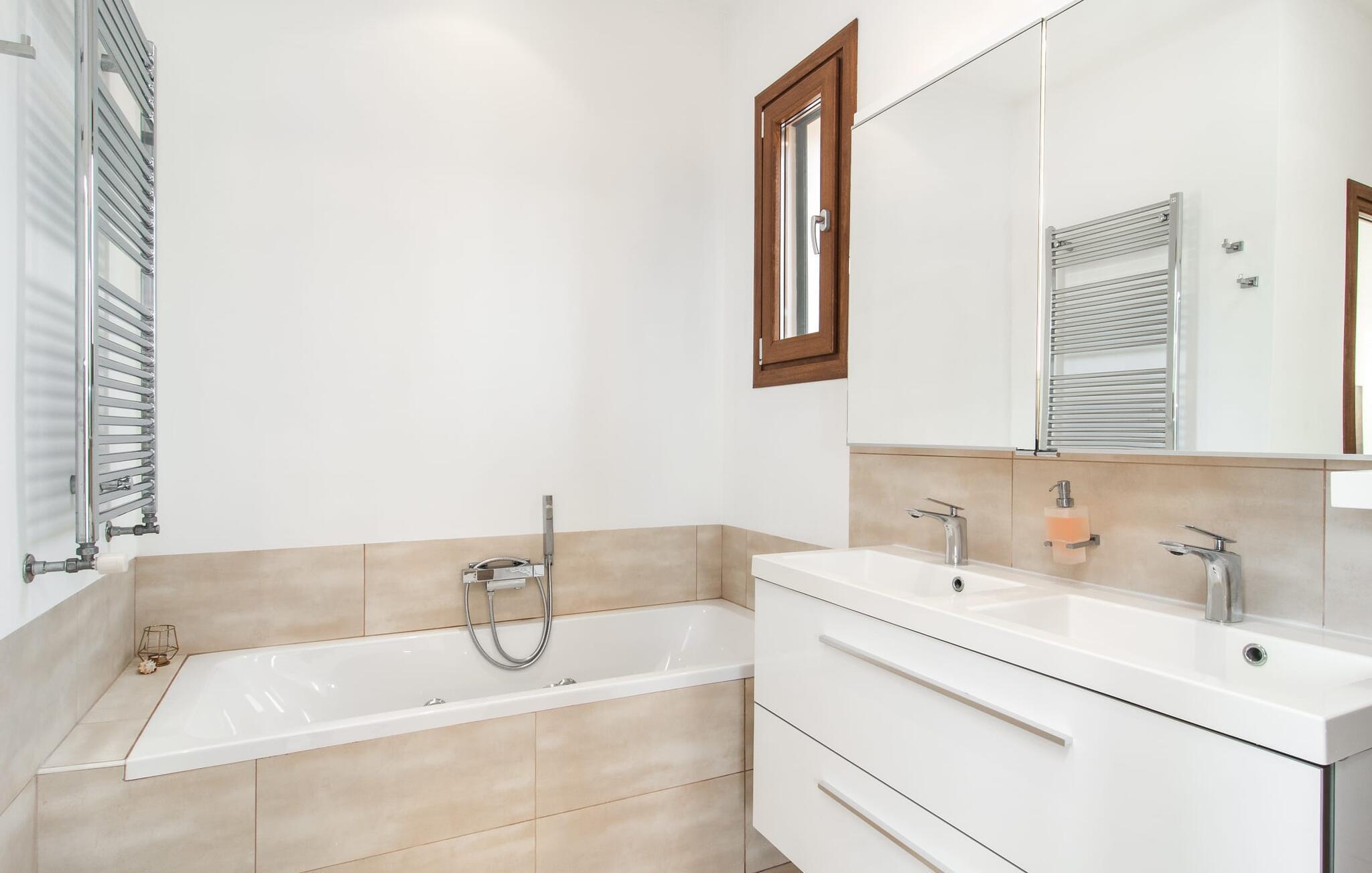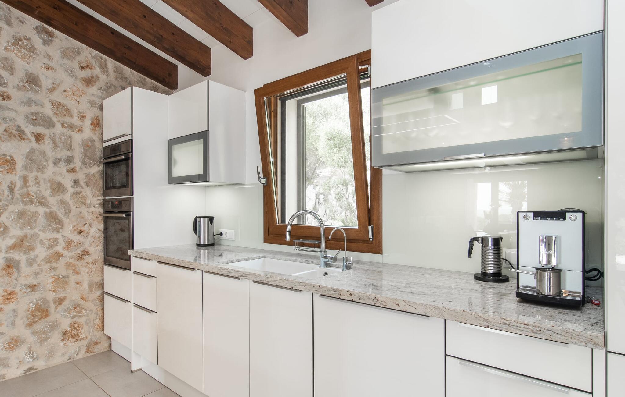 Nyd disse udsigter fra infinity-poolen eller slap af på liggestole omgivet af middelhavsflora. Det udendørs køkken, der er udstyret med en grill, har en charmerende spiseplads suppleret med en urtehave til friske kulinariske tilføjelser. En overdækket terrasse byder på endnu en spiseplads og et loungehjørne, ideelt til morgenmad eller afslapning efter en begivenhedsrig dag.