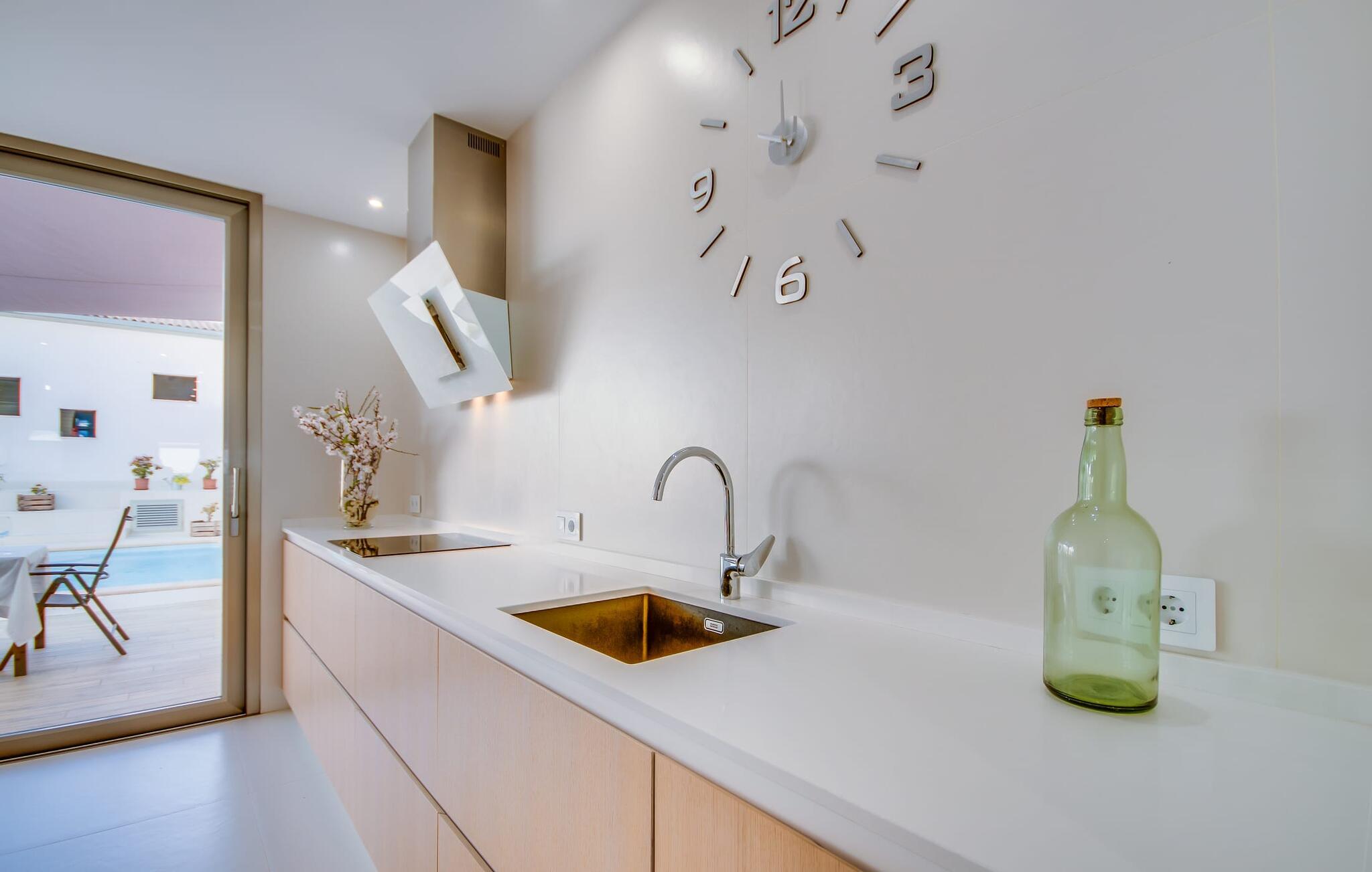 Kunne I tænke jer at holde ferie på Mallorca, men er hverken begejstret for hoteller eller det rolige landliv i en afsondret villa? Så har vi det helt rigtige midlertidige hjem til jer med det smukke rækkehus "Foners Mallorquins"! Dette lyse og hvide drømmehus ligger midt i den rustikke, charmerende landsby Muro på den nordlige del af Mallorca. Efter at have kørt fra lufthavnen kan I parkere jeres lejebil direkte på gaden ved huset og derefter fordybe jer i øens autentiske stress og jag. Det velholdte rækkehus er ikke kun et perfekt udgangspunkt, men også et vidunderligt afslappende tilflugtssted. På terrassen, som er delvist overdækket med skyggefulde markiser, finder I spisebord og stole samt indbydende liggestole. Perfekt til solbadning, men også til at finde et behageligt skyggefuldt sted at læse en god bog. I kan til enhver tid tage en forfriskende svømmetur i jeres afsondrede pool, skjult for naboernes udsigt og indrammet af en stilfuld brolagt terrasse med et puristisk design og rustik naturstensvæg, udendørs bruser og kærligt dekoreret plantebed. "Foners Mallorquins" er også en sand perle indefra. Takket være de store vinduespartier og det moderne lyssystem med mange små, integrerede loftslamper er alt lyst på alle tider af døgnet Den meget muntre, velholdte og stilrene atmosfære er blandt andet takket være den hyggelige interiør, som er præget af et design med stor kærlighed til detaljer og en særlig flair. Stueetagen er meget åben: Store glasdøre fører fra terrassen direkte ind i det stilfulde køkken, som er udstyret med førsteklasses hårde hvidevarer. Køkkenet har et stort spisebord og mange siddemuligheder. Om morgenen kan I få en afslappet morgenmad; Senere på dagen kan I tilberede kulinariske lækkerier til en udendørs middelhavsmiddag på terrassen. I kan også nyde jeres middag sammen i husets tilstødende opholds- og spiseområde. Der finder I endnu et stort bord med smukke kurvestole med et naturligt look - til at nyde overdådige måltider og udveksle gode historier. Blot et par skridt videre indbyder en lys hvid hyggelig sofa med talrige puder og tæpper jer til at tilbringe en hyggelig aften med at se tv. I finder også et smart badeværelse i stueetagen af "Foners Mallorquins". Når I er behageligt træt efter en lang, solrig dag, kan I bare gå forbi den smukke limegrønne vippe og op ad den elegante stentrappe. Soveværelserne er placeret i to etager og har en kærlig, individuel indretning - i hvidt, med farverige detaljer, der umiddelbart skaber en glad stemning. De smukke, delvist kunstfærdigt udskårne senge er et blikfang, og der er rummelige garderobeskabe i alle rum til jeres feriegarderobe. Det ene soveværelse, uden dør, er skjult på 3. sal i huset og kan nås direkte via trappen, mens de to andre soveværelser - hvoraf det ene har direkte udgang til en hyggelig lille altan - er i en sal med to soveværelser og meget moderne badeværelser med bruser i gulvniveau. "Foners Mallorquins" er et lysfyldt rækkehus midt i den rustikke landsby Muro på den nordlige del af øen - og tilbyder en masse privatliv. Takket være den centrale beliggenhed er alt i gåafstand - uanset om I vil shoppe eller besøge en af restauranterne. Men så snart I lukker jeres hoveddør, befinder I jer i jeres eget lille stykke paradis. I den private, afsondrede pool kan I forfriske jer i vidunderlig fred og ro, mens strande som C'an Picafort eller Alcúdia-bugten kun ligger omkring 14 km væk.