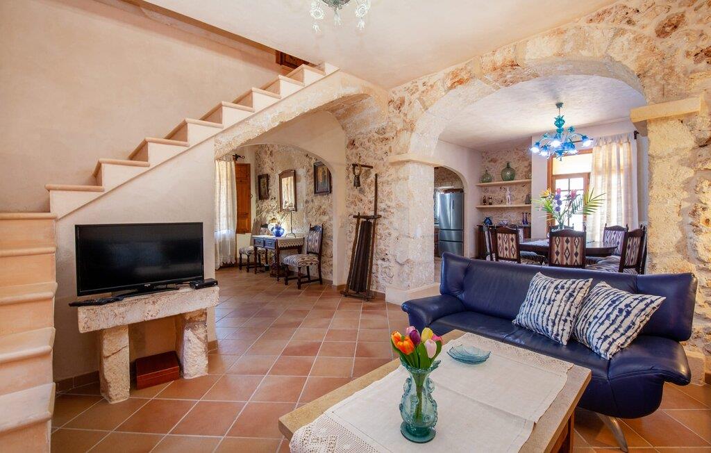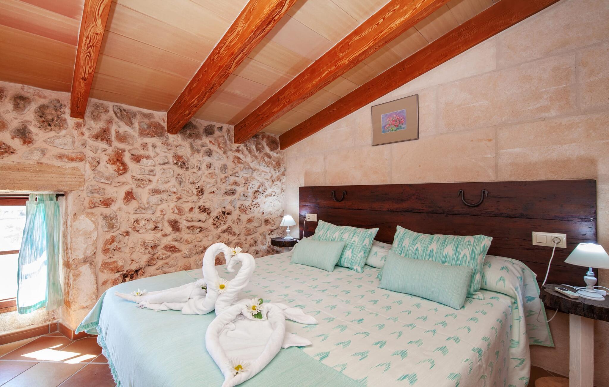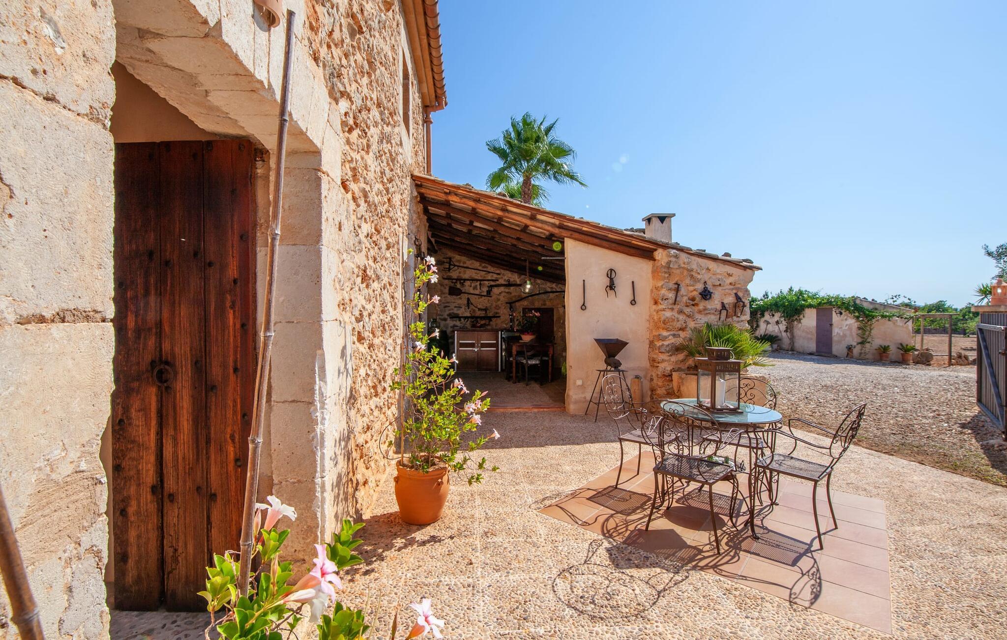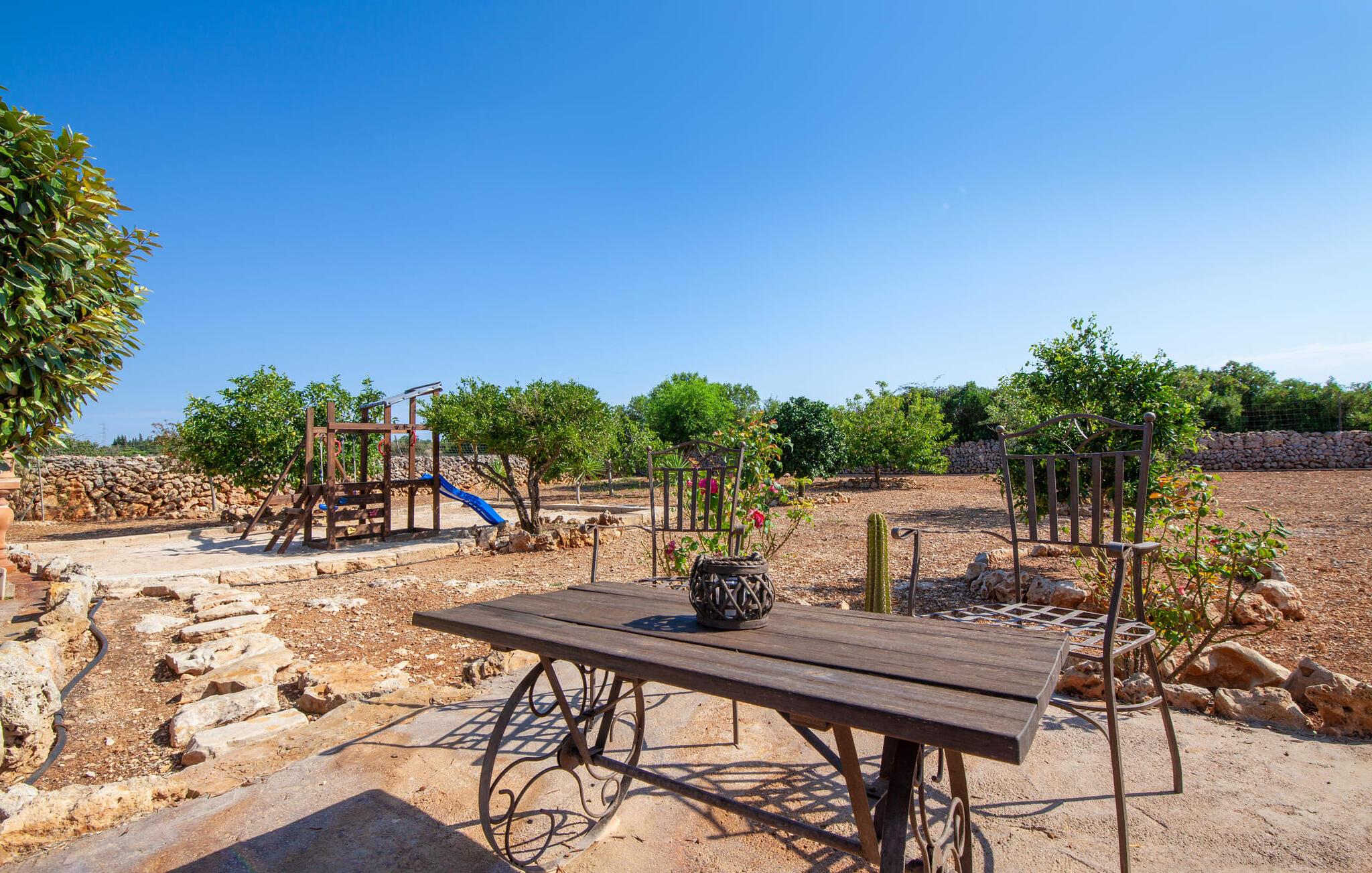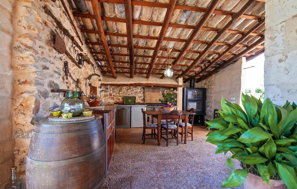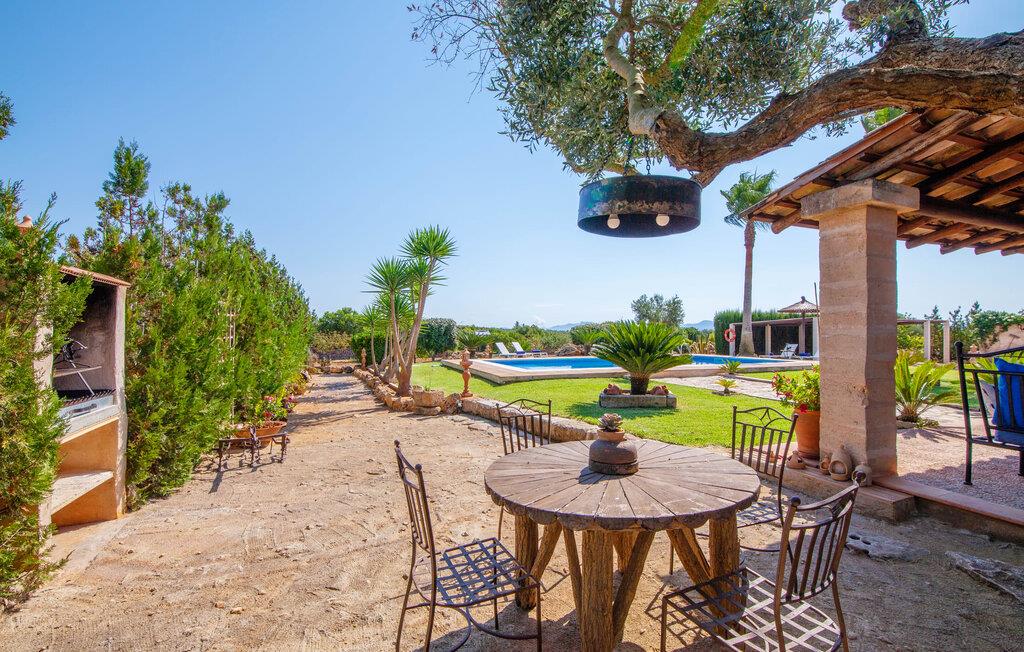 Fincaen "Fonoll", indlejret i et betagende landskab, var engang en landlig ejendom, der har bevaret sin traditionelle middelhavskarakter den dag i dag. Den rummelige private pool og legepladsen lover en uforglemmelig familieferie, mens den velholdte have, dekoreret med en række middelhavsplanter og høje palmer, skaber en attraktiv og æstetisk atmosfære. I kan nyde hyggelige aftener på den overdækkede terrasse, mens den murede grill og det fuldt udstyrede udekøkken gør udelivet til en skøn oplevelse. Det gennemtænkte udformede udendørs opholdsområde er et dejligt sted at slappe af og nyde omgivelserne. Indvendigt sikrer historiske detaljer som naturstensmurværk og dekorative buer en autentisk booplevelse. Træbjælkelofterne afspejler traditionel mallorcansk arkitektur. Fincaen imponerer med sit charmerende interiør, som kunstfærdigt kombinerer antikviteter, klassiske møbler og moderne elementer for at skabe en unik atmosfære. I stueetagen finder I indgangspartiet, en stue, der åbner ud til spisepladsen, samt køkkenet (en pejs giver hyggelig varme på køligere dage) og et badeværelse. På øverste etage er der tre stilfuldt indrettede dobbeltværelser - to med dobbeltsenge og et med to enkeltsenge - samt et ekstra badeværelse. Denne finca er det perfekte tilflugtssted for en uforglemmelig ferie. Den fantastiske finca "Fonoll" er roligt beliggende kun 10 minutter i bil fra den smukke sandstrand i Alcúdia. Den maleriske landsby Santa Margalida er kun omkring 3,5 km væk, hvor I også vil finde to supermarkeder til daglige behov og et ugentligt marked.