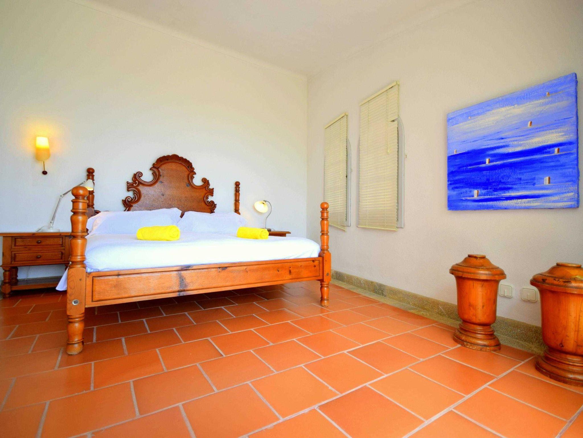 Auch die Schlafzimmer bieten eine traumhafte Aussicht: vier davon sind mit Doppelbetten, eines mit zwei Einzelbetten ausgestattet. Die typisch mediterranen Einbauschränke bieten nicht nur viel Stauraum, sondern fügen sich auch harmonisch in den rustikalen Stil des Hauses ein. Eines der Badezimmer ist en suite, zudem gibt es ein separates Gäste-WC.