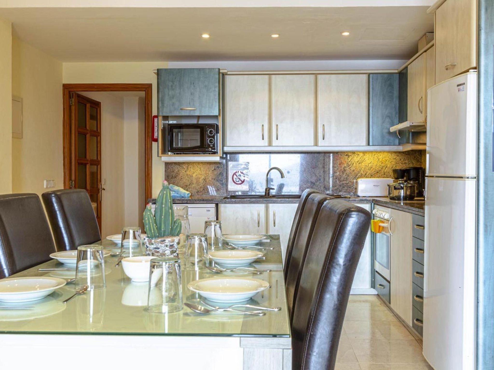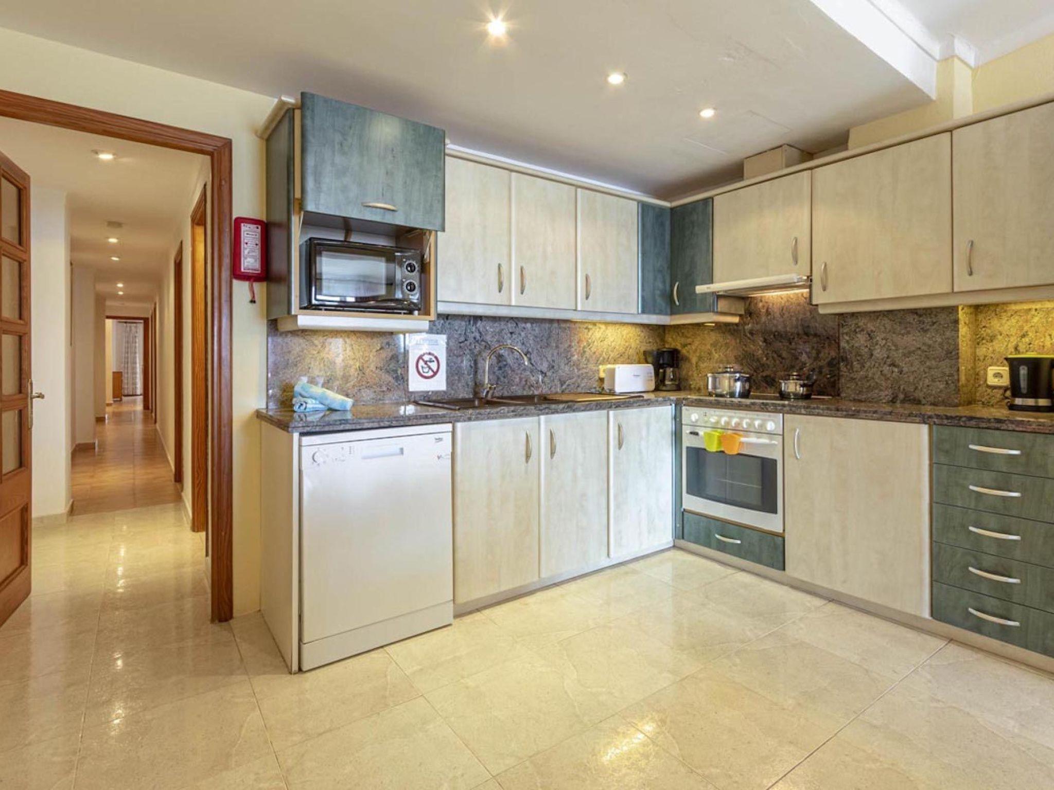 The flat has three bedrooms, one double and two twin. All of them have air conditioning and fitted wardrobes. There are two large bathrooms (one with a shower and the other with a bathtub).