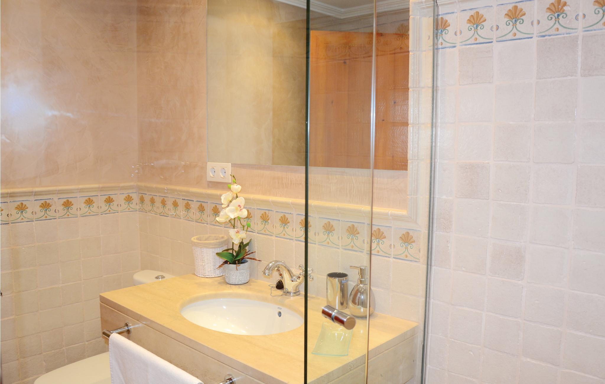 I bor på tre etager med elevator. Nederst i huset ligger poolen, og udenfor venter havens dejlige græsplæner, som I også kan nyde fra den indendørs pool, når I skubber poolrummets store skydedøre til side. De fire rummelige soveværelser er alle sammen en suite. Yderligere et praktisk badeværelse med separat bruser og wc ligger i stueetagen ved poolen. Poolen er opvarmet til 28 grader Celsius hele året rundt, og prisen er inkluderet. Pejs er kun til dekoration. Elektricitet inkluderet.