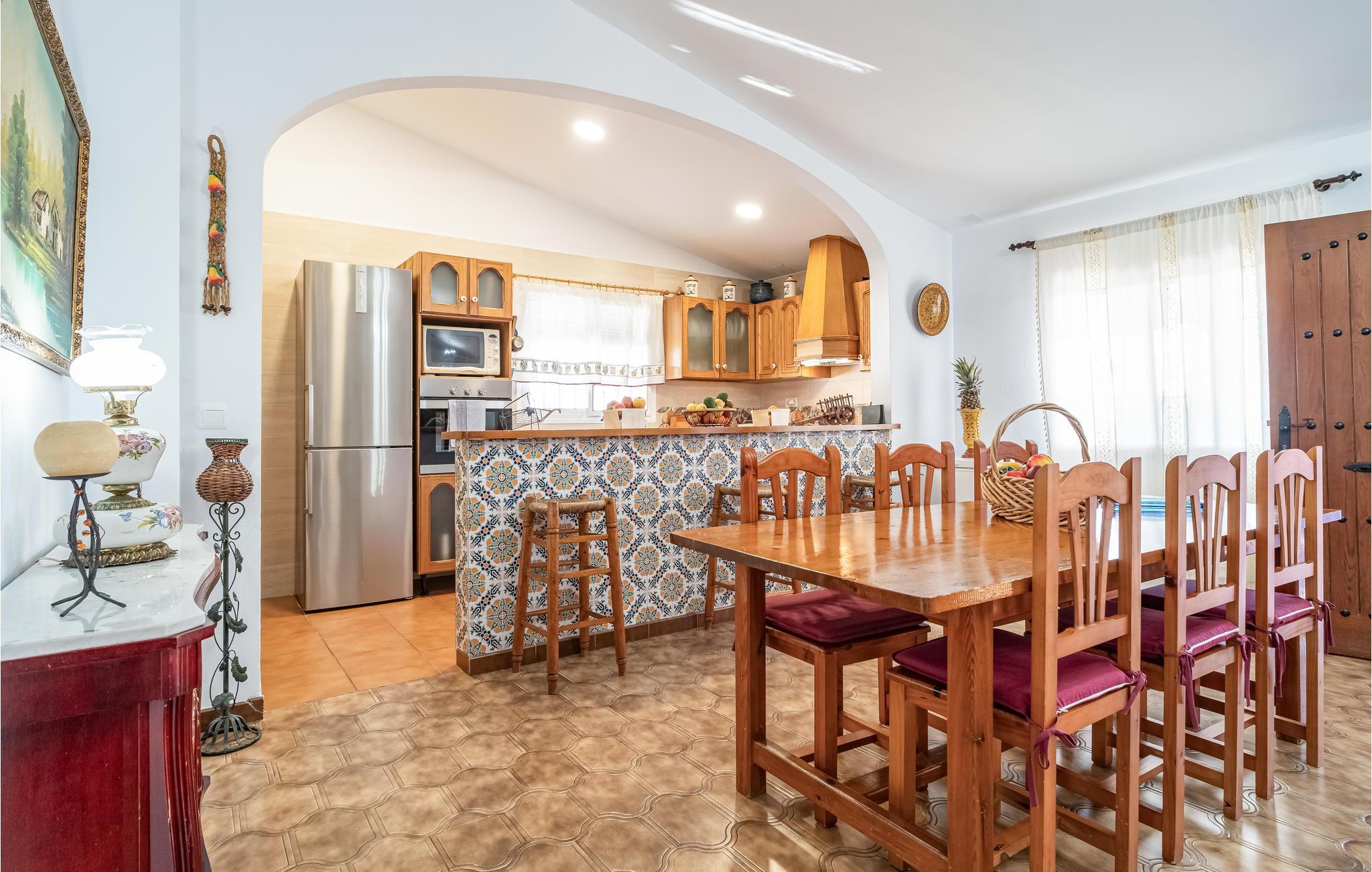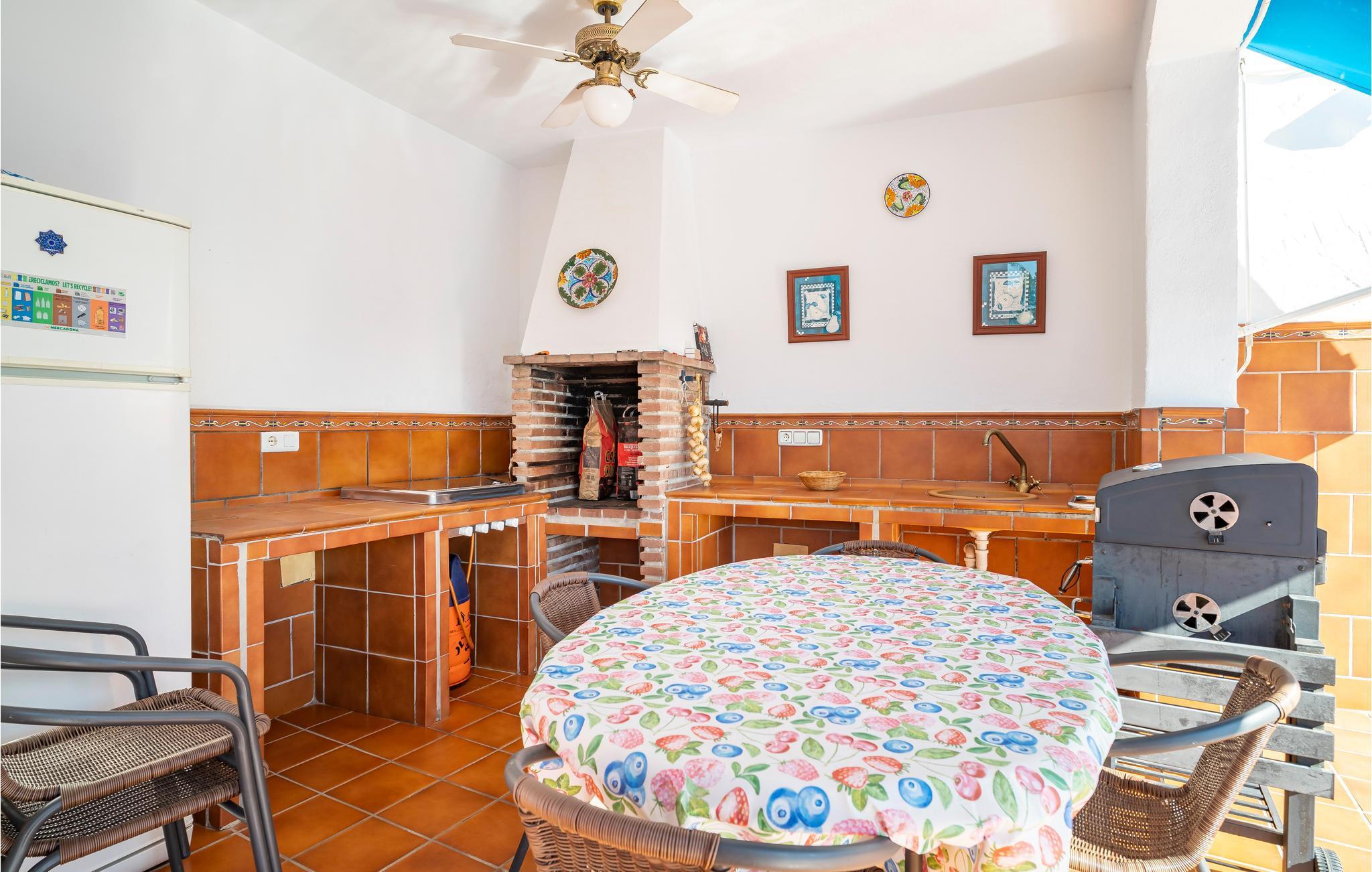 Kunne I tænke jer at komme på ferie med en vennefamilie? Holder I af god komfort og en fantastisk beliggenhed i en malerisk landsby, der flere gange er blevet kåret som den smukkeste landsby i Spanien? I så fald siger vi velkommen til Frigiliana og dette hus, der emmer af autentisk karakter og hjemlig charme. Huset er veludstyret og hyggeligt indrettet, og I kan allerede nu glæde jer til dejlige hyggeaftener i sofakrogen og til fælles madlavning i køkkenet. I kan nyde resultatet af jeres kulinariske formåen i den åbne stue eller på en af ??terrasserne. Kunne det friste med en sen aftendukkert i poolen? Her bestemmer I selv, om og hvornår I vil slappe af i poolen eller i spabadet. I kan også lave mad i udekøkkenet, hvor der er både køleskab, grill og 4-brænder gaskomfur.