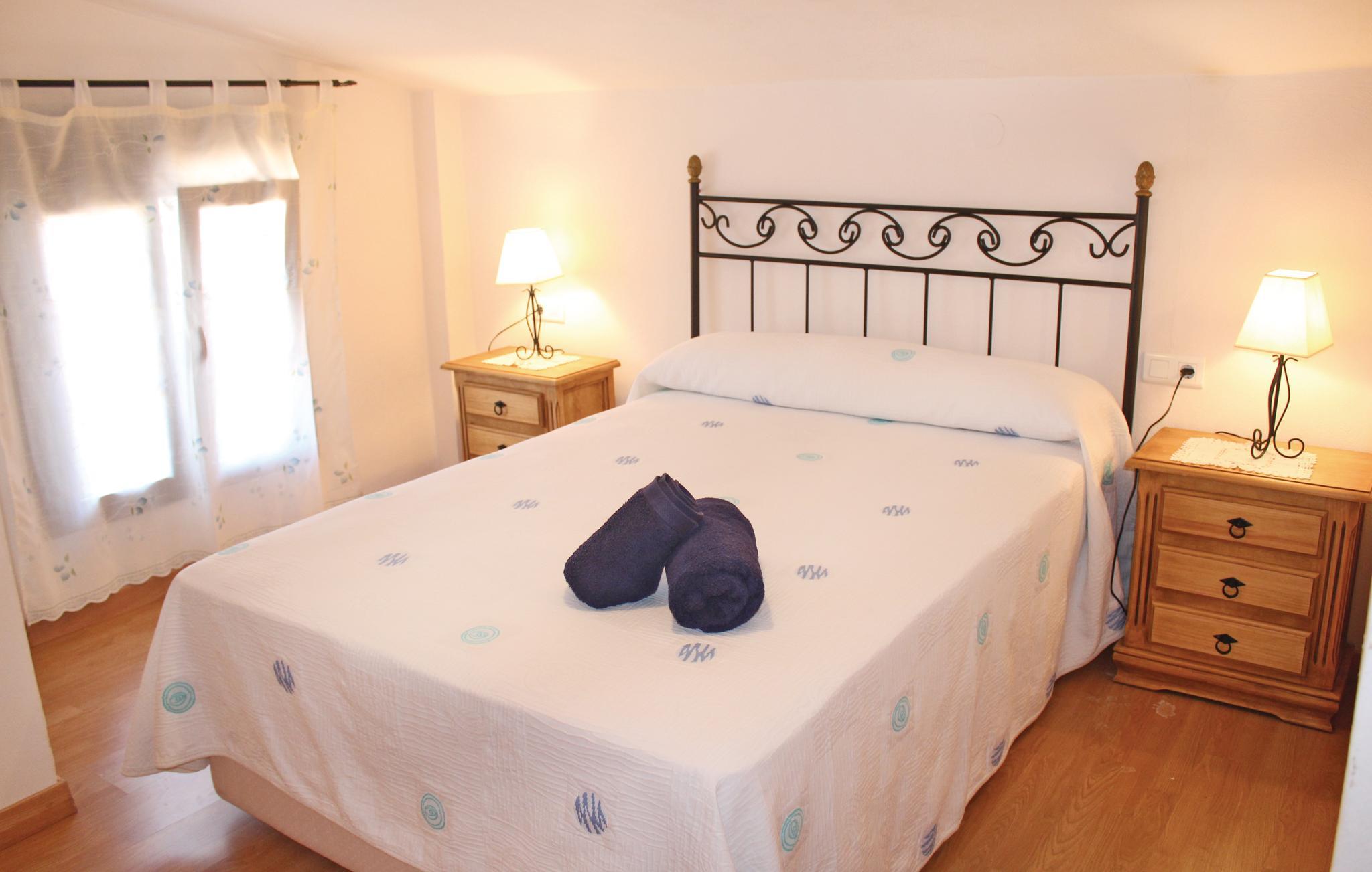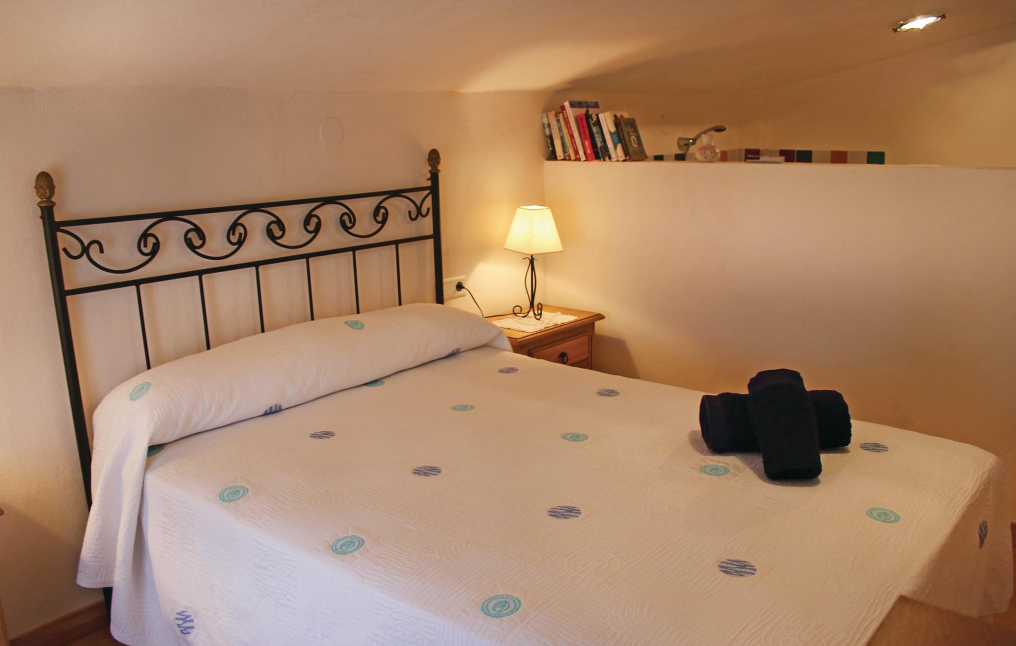 Det charmerende hus fordeler sig på to etager og er hyggeligt og traditionelt indrettet. Ovenpå er der toilet og soveværelse til to personer og i stueetagen finder I et køkken i åben forbindelse til opholdsstuen, hvor der er endnu en soveplads. I vil helt sikkert tilbringe det meste af ferien på den smukke terrasse, hvor I både kan sidde i solen eller skyggen, da der er delvist overdækket. Her råder I over en herlig, privat pool og kan nyde en fantastisk udsigt.