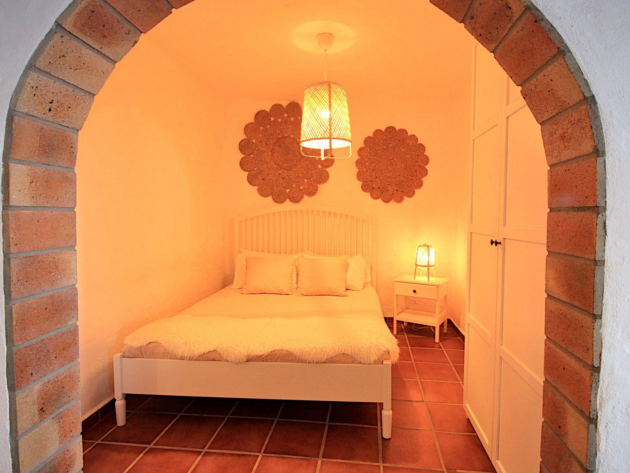 Die Wohnung ist, wie häufig auf den Kanaren üblich, in den Fels gebaut. Ein Schlafzimmer und die Küche haben offene Bögen als Zugang, was der Unterkunft ein geradezu uriges Ambiente verschafft. Der skandinavische, helle Einrichtungsstil verhindert aber, dass die Einrichtung altbacken oder gar muffig wirkt, im Gegenteil, die Unterkunft ist top gepflegt und gut belüftet.