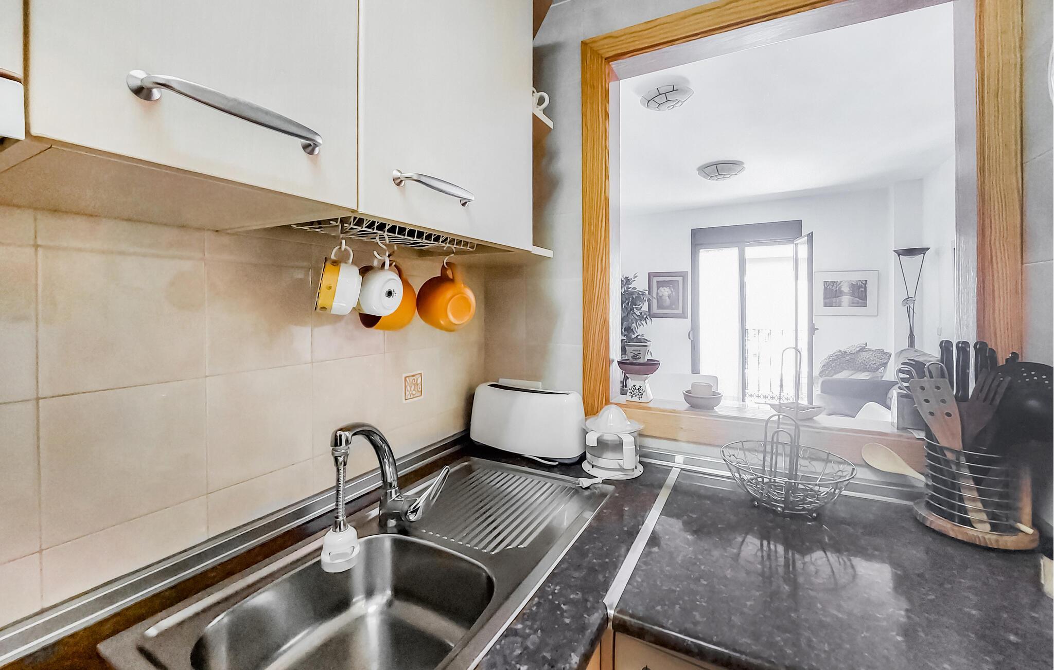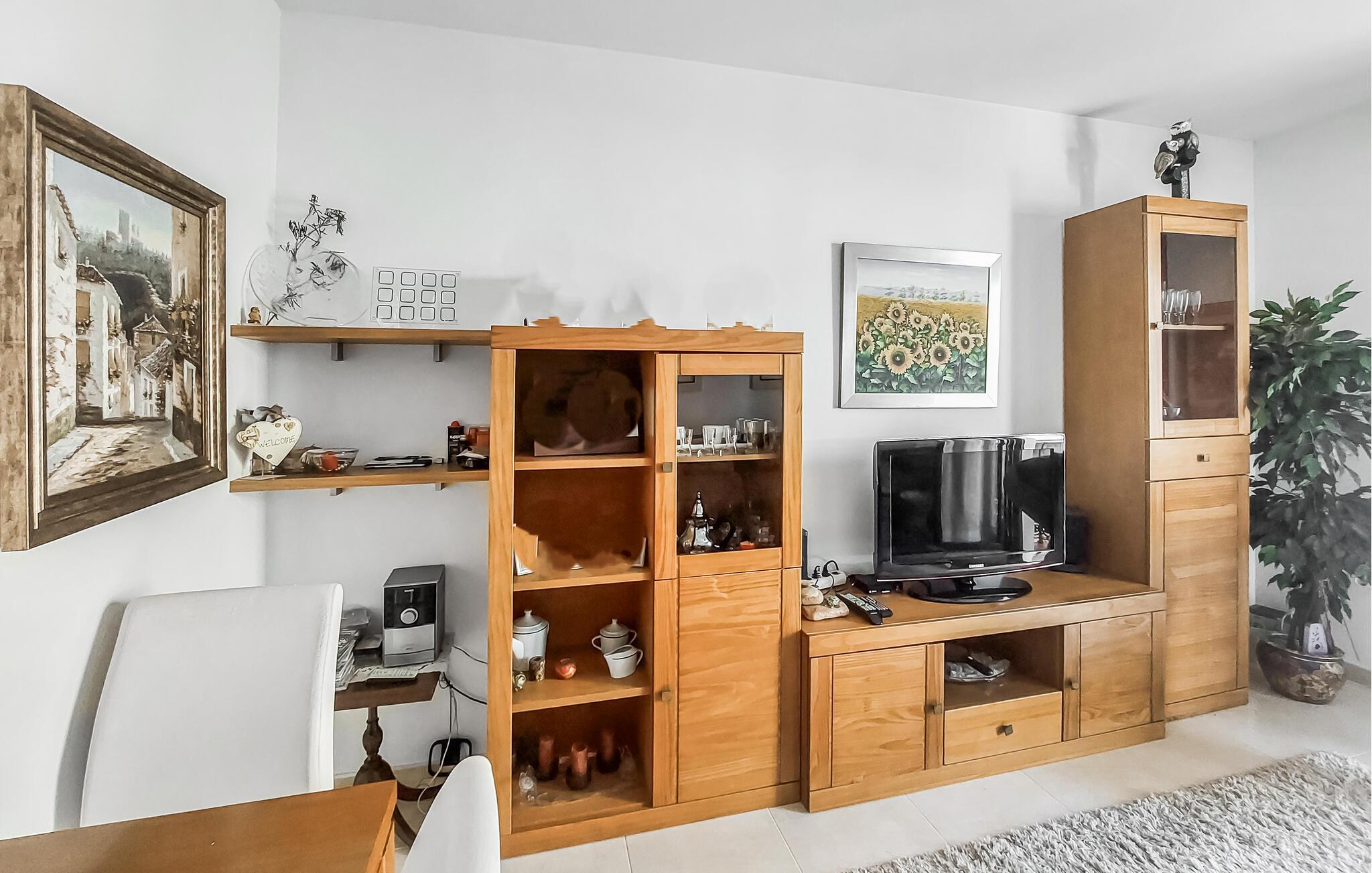 I denne skønne lejlighed får I alt, I som lille familie behøver til en magisk ferie med sol, strand og masser af vand. Boligen er virkelig hyggeligt indrettet med pæn kunst på væggene og rustikke udsmykningsdetaljer, der gør det nemt at slappe af og lade skuldrene falde efter en aktiv feriedag. Lad dagene begynde med en lækker morgenmad ved spisebordet og skyl efter med en friskbrygget kop kaffe, inden I tager på tur.