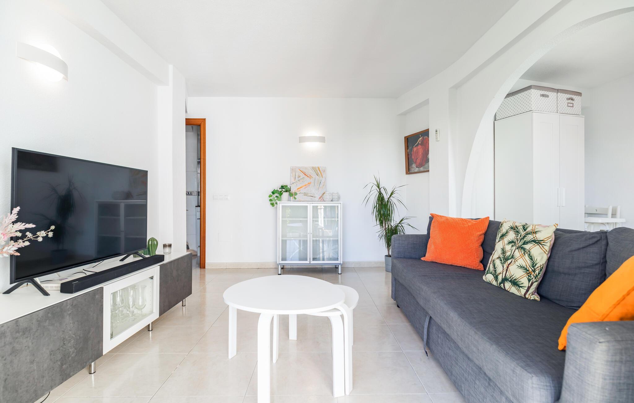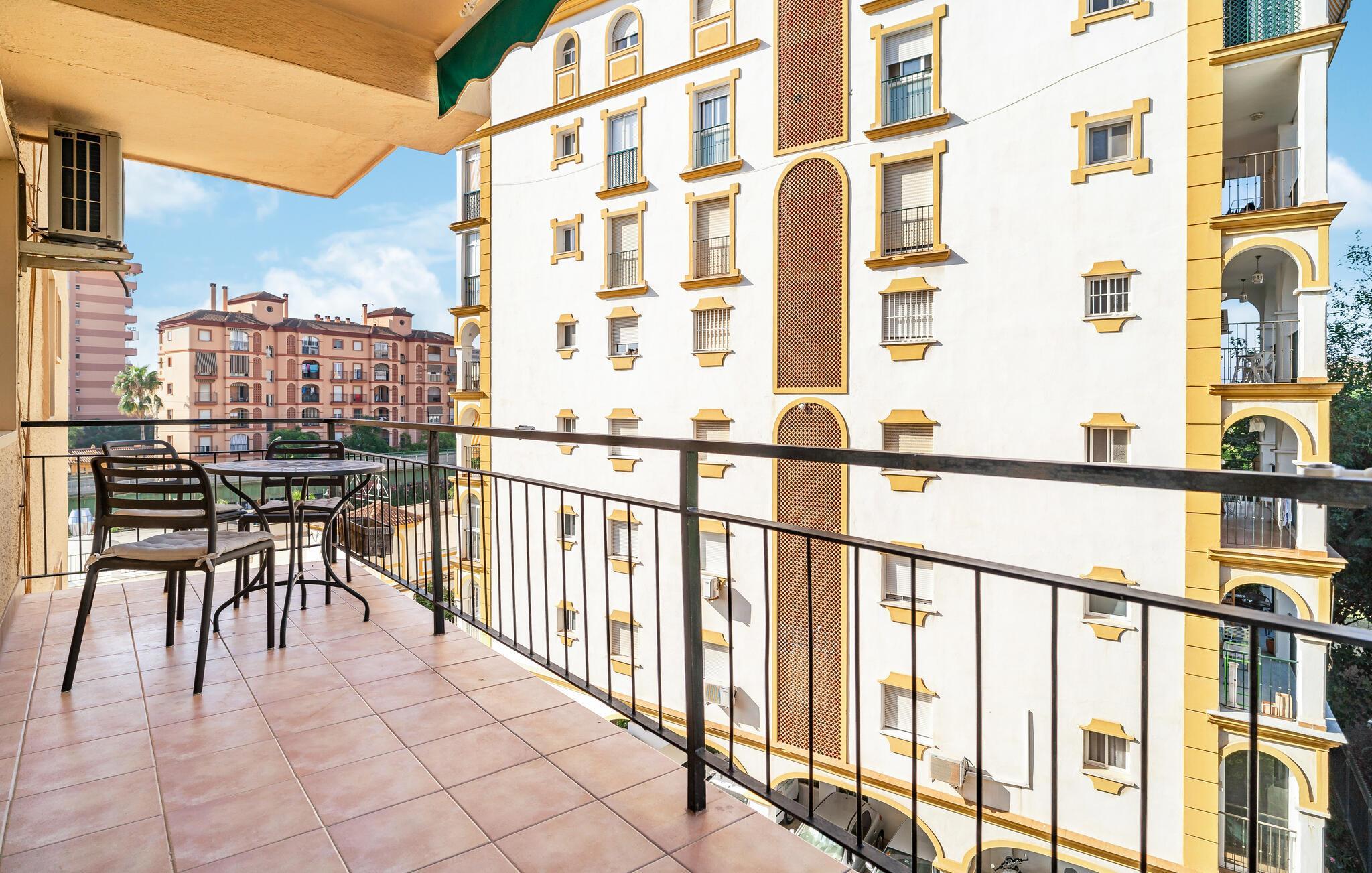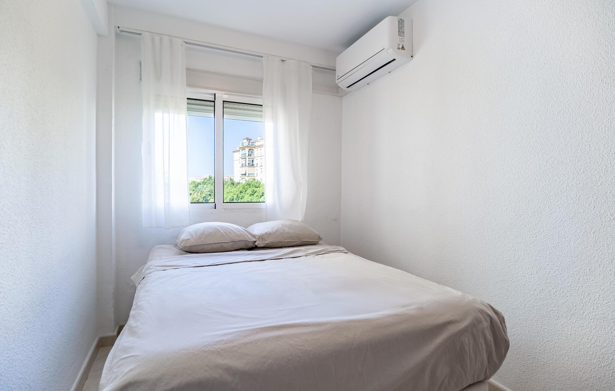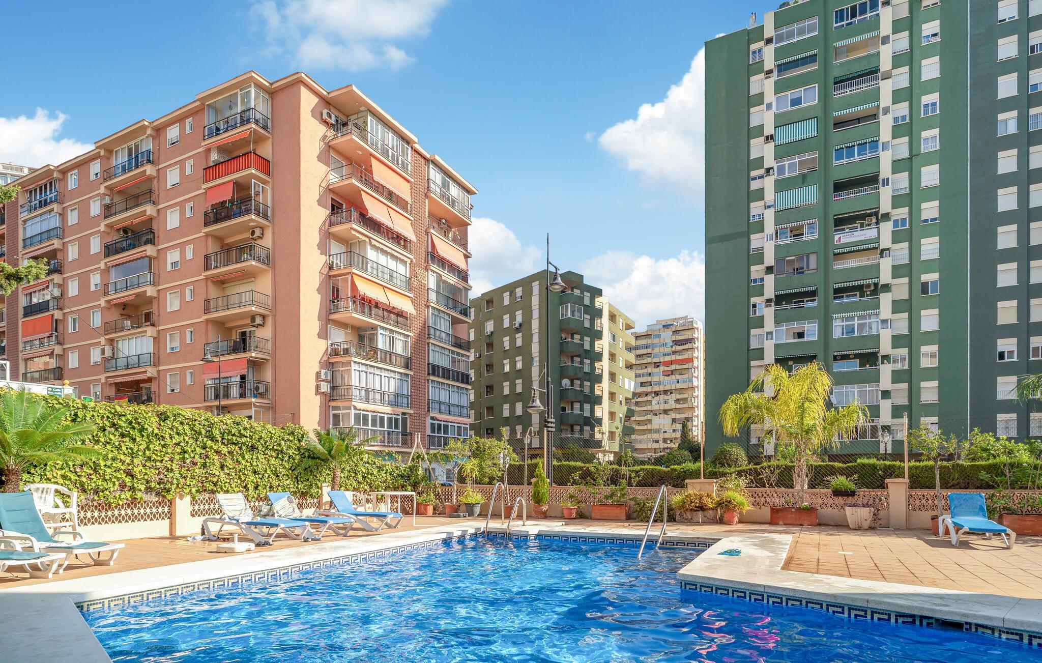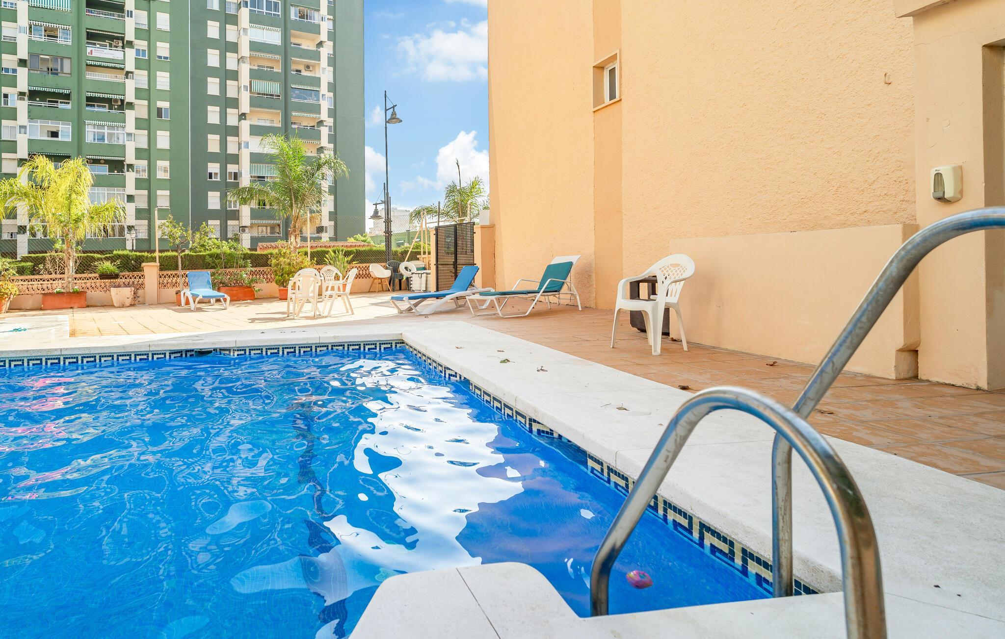 Velkommen til denne smukke og lyse ferielejlighed i Fuengirola. Denne hyggelige bolig tilbyder jer ikke kun en indbydende opholdsstue med en stilfuld indretning, men også en balkon, hvor I kan slappe af og nyde de varme solstråler. Den åbne grundplan skaber en luftig atmosfære, ideel til hyggelige aftener. Det fuldt udstyrede køkken gør det muligt for jer at tilberede lækre måltider, mens I nyder udsigten over omgivelserne. Adgang til den fælles swimmingpool giver jer en forfriskende afkøling på varme dage.