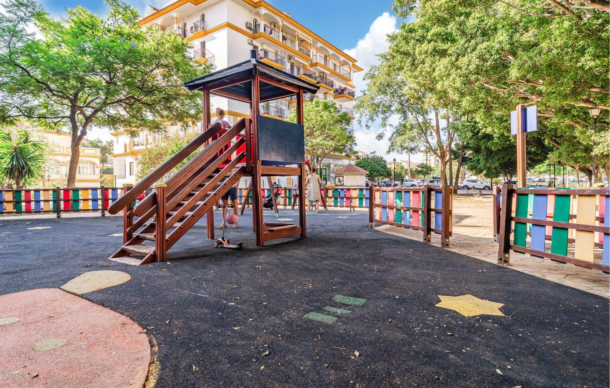 Fuengirola er et sandt paradis for strandelskere og aktive feriegæster. Omgivelserne byder på dejlige strande, hvor I kan nyde solen eller prøve vandsportsaktiviteter. I nærheden finder I en sportsplads og en legeplads, hvilket er ideelt for familier. Udforsk den livlige promenade med dens mange restauranter og butikker, eller besøg den nærliggende zoologiske have for at se eksotiske dyr. Fuengirola er også et fremragende udgangspunkt for udflugter i det betagende andalusiske område, herunder maleriske landsbyer og fascinerende seværdigheder. En uforglemmelig ferie venter jer."