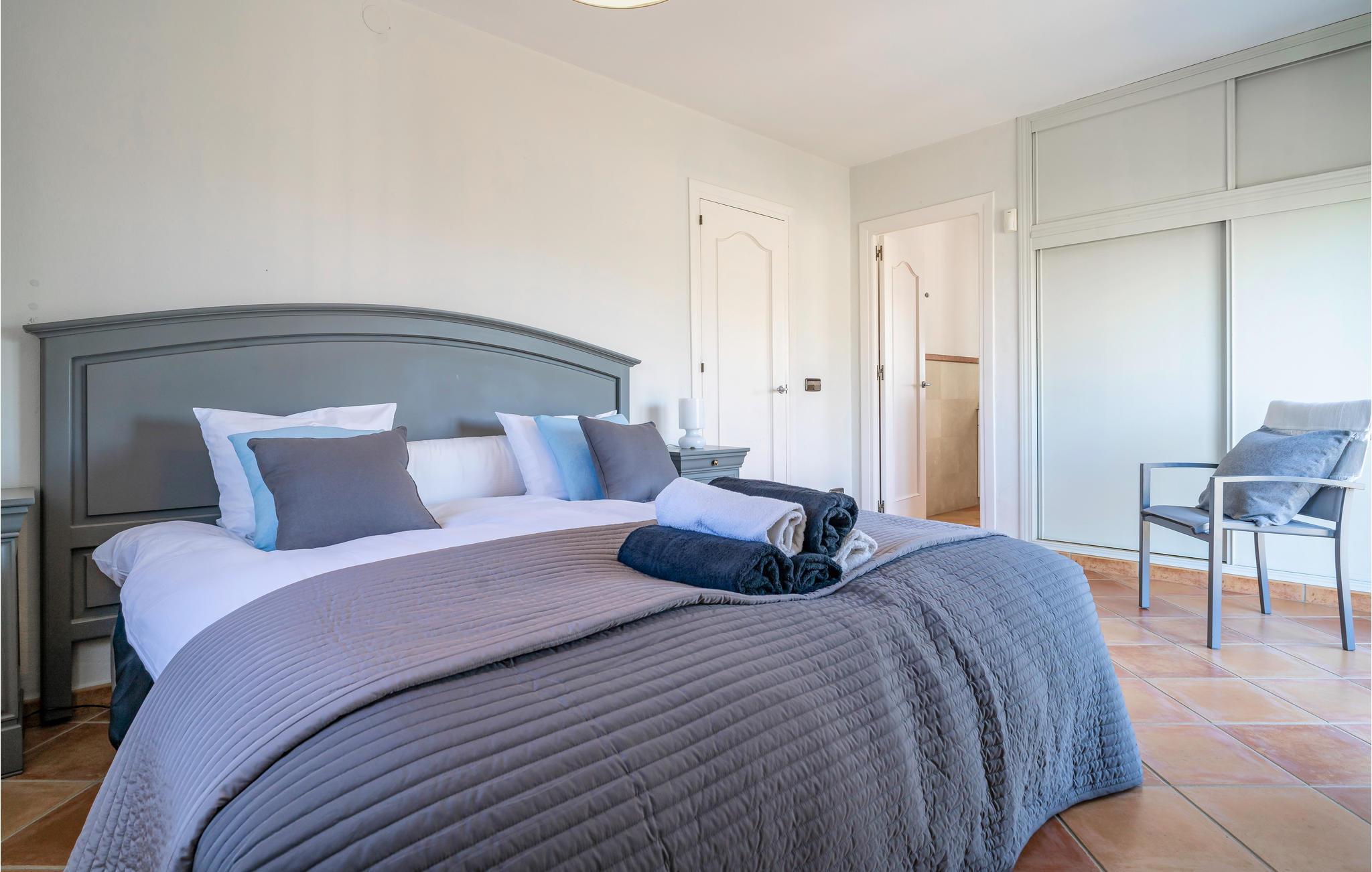 I huset, der er på hele 438 m² fordelt på 3 etager, er der plads til 14 personer. Her kan hele familien nyde deres ferie i elegante og komfortable omgivelser, hvor der helt ned i detaljerne, er skabt smukke rammer om jeres ferie. I stueetagen, er der ud over den smukke stue og køkkenet, også 2 soveværelser og 1 badeværelse. En trappe fører til første sal til 3 yderligere soveværelser, 2 badeværelser, en anden stue, køkken og en fantastisk terrasse. Det sidste en-suite soveværelse ligger på øverste etage, ideel til et par der gerne vil have privatliv. Den smukke terrasse er rummelig og udstyret med komfortable møbler, hvor I kan spise dagens måltider og nyde et godt glas vin familie og venner når mørket falder på. Udendørs er der en stor privat pool og en græsplæne til solbad hvor der står parasoller. Swimmingpoolen kan opvarmes på forespørgsel mod et tillægsgebyr. Her kan du slappe af i solen efter en forfriskende dukkert. Nyd at bo helt ugenert med spektakulær udsigt over havet og bjergene. På grunden er der plads til at parkere flere biler.