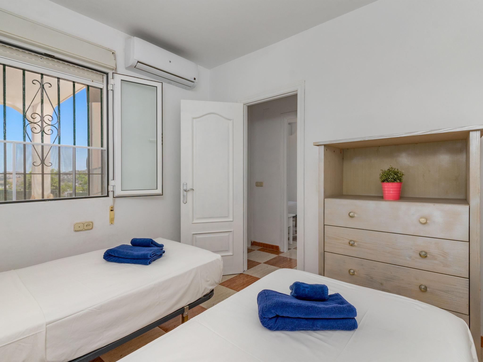 La Sierrezuela 4 km from Fuengirola: Very large, simple house "La Paisible", 2 storeys. In a quiet, sunny position, 4 km from the sea, 4 km from the beach. Private: large garden 600 m2 wildlife garden and trees, swimming pool angular (8 x 4 m, depth 200 cm, seasonal availability: 01.Jan. - 31.Dec.). Outdoor shower, pergola (70 m2), barbecue, parking at the house. Supermarket 1 km, restaurant 500 m, bus stop "Campo Mijas" 1.2 km. Sports harbour 5 km, marina 5 km, golf course (18 hole) 5 km.