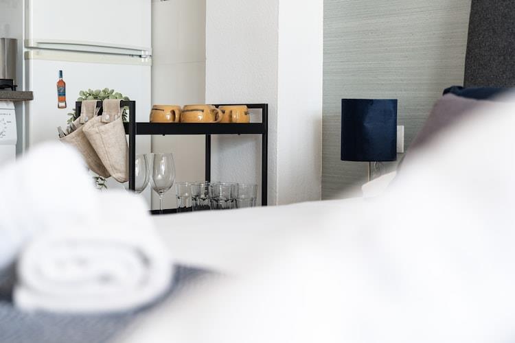 Køkken(kogeplade, elkedel, brødrister, kaffemaskine, mikrobølgeovn, køle-fryseskab, vaskemaskine, ), Stue/soveværelse(dobbeltseng, Fjernsyn, spisebord, klimaanlæg), badeværelse(bruser, toilet, bidet), balkon, elevator, Håndklæder/sengelinned (inkl.)