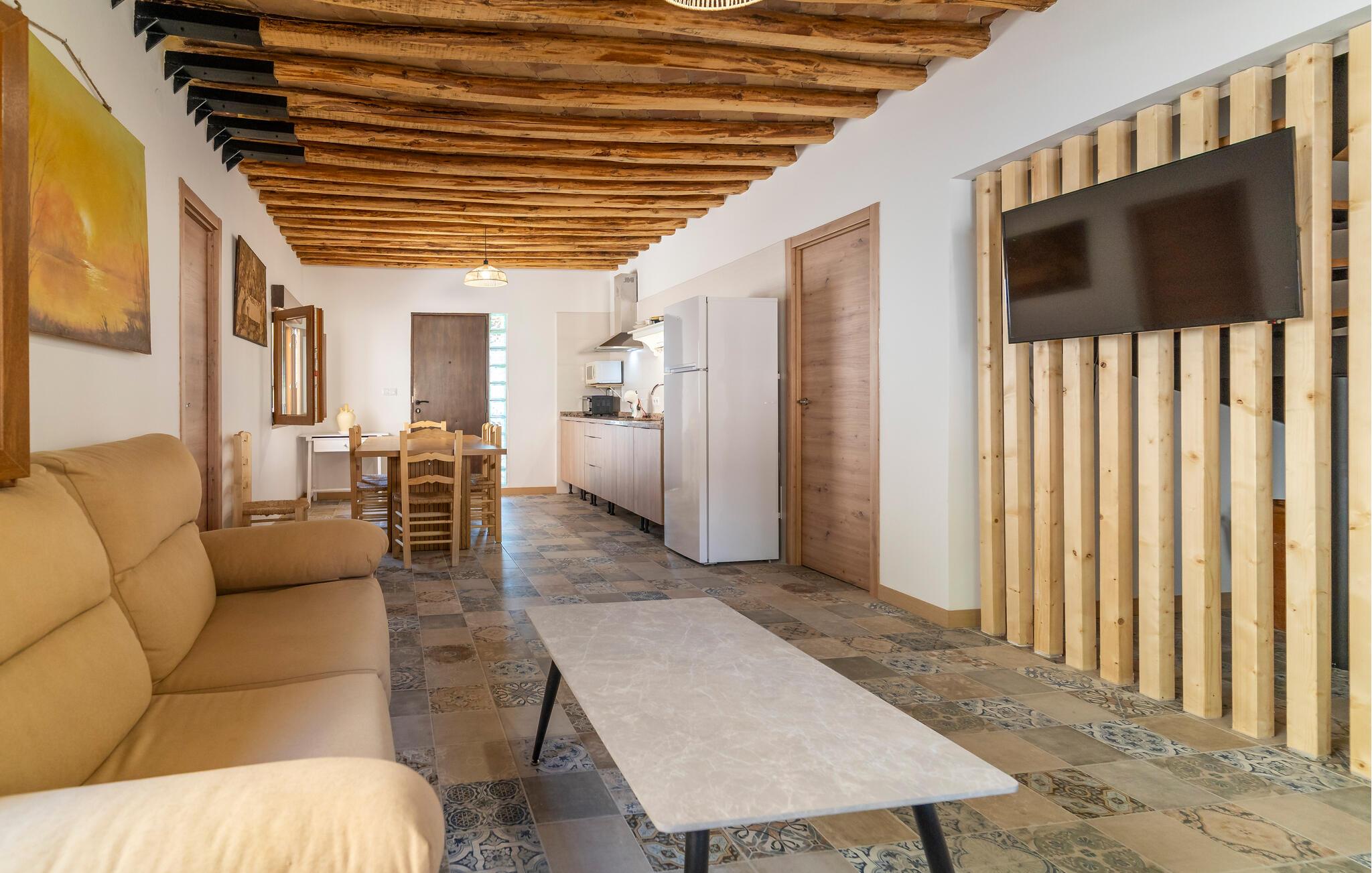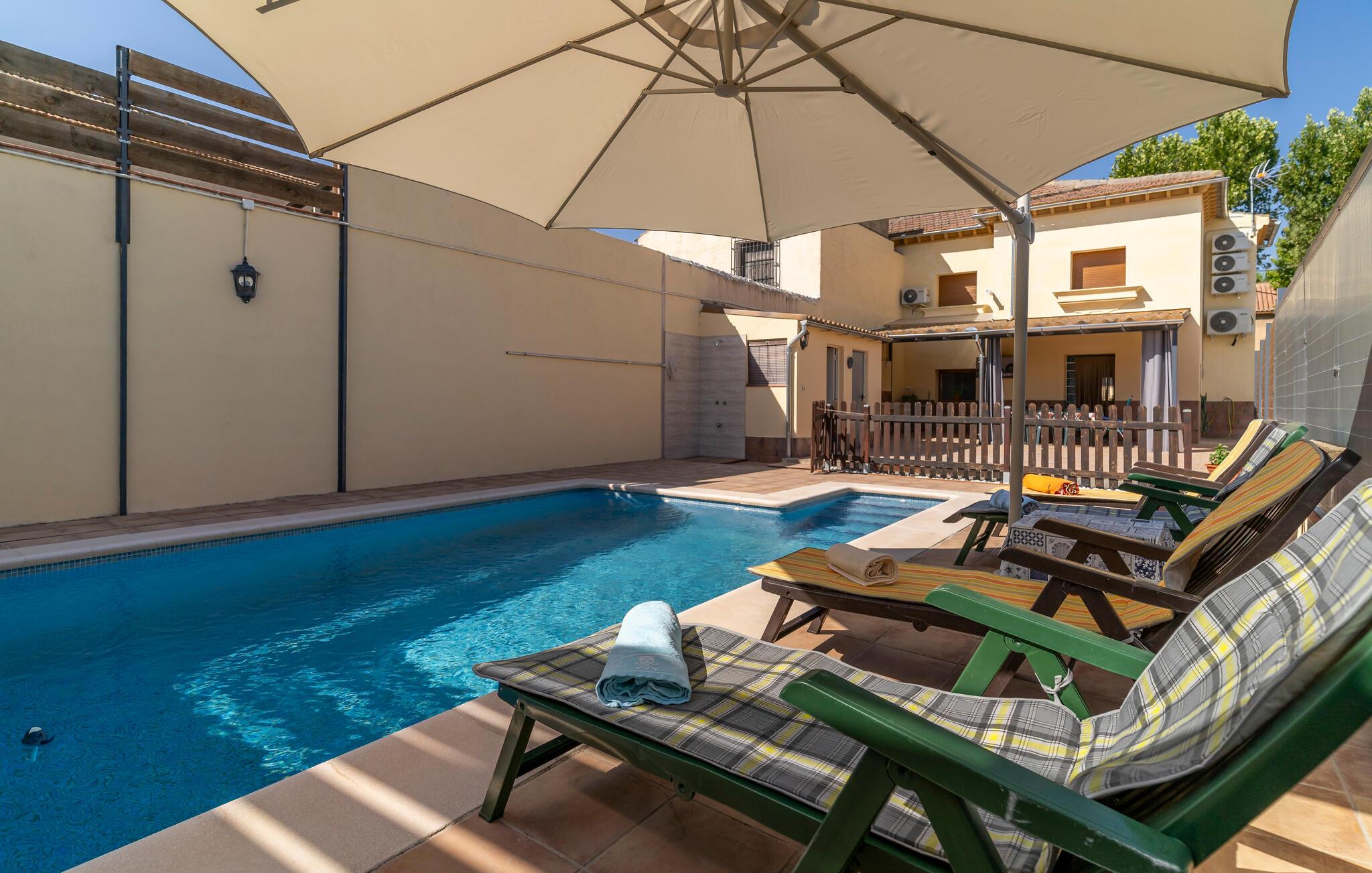 Nyd ren afslapning i et komfortabelt feriehus med pool. Dette indbydende hus er ideelt placeret til at udforske Andalusien. I de smukt renoverede værelser med smukke klinkegulve og synlige loftsbjælker samt moderne møbler i landlig stil kan I virkelig nyde jeres tid sammen. Glæd jer til hyggelige aftener i en stilfuld atmosfære. Tilbring dejlige timer på terrasserne, solbad, læs i skyggen og forfrisk jer i poolen. Nyd lune sommeraftener med kolde drikke under åben himmel. Start dagen med en slentretur gennem landsbyen, hvor arven fra den berømte digter Federico García Lorca lever videre i gaderne. I Granada kan I slentre gennem gyderne i det mauriske Albaicín-distrikt, lade jer friste af duften af friske tapas og beundre det majestætiske Alhambra, der hæver sig over byen. Den omkringliggende natur med sine olivenlunde, marker og vidtstrakte landskaber indbyder til lange vandreture eller cykelture.