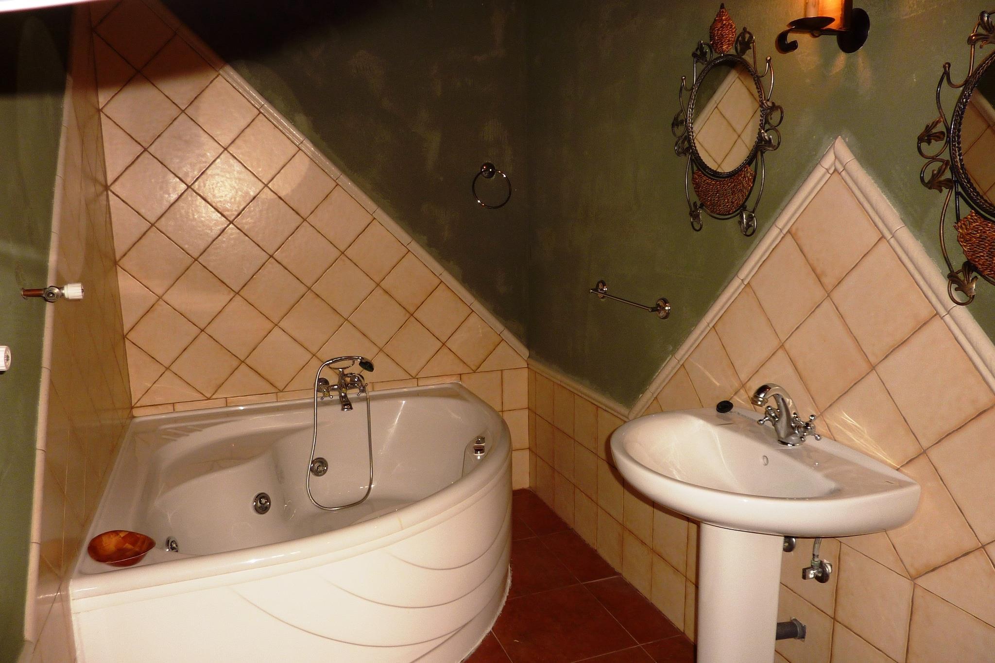 Ground floor: (open kitchen(cooker(ceramic), oven, microwave, fridge-freezer, washing machine), Living/diningroom(TV, fireplace), Bedroom with bathroom(small double bed, Bubble bath, washbasin, toilet), Bedroom with bathroom(2x single bed, shower(adapted for disabled), washbasin, toilet), Bedroom with bathroom(2x single bed, Bubble bath, washbasin, toilet)) Attic: (Living/bed room(via fairly steep stairs)(single sofa bed(80 x 160 cm)), Living/bed room(via fairly steep stairs)(2x single sofa bed(80 x 160 cm))) heating, air conditioning, terrace, BBQ, swimming pool(private, fenced, 8 x 4 m., opened from Jan upto and including Dec), children's bed(on request), high chair(on request)