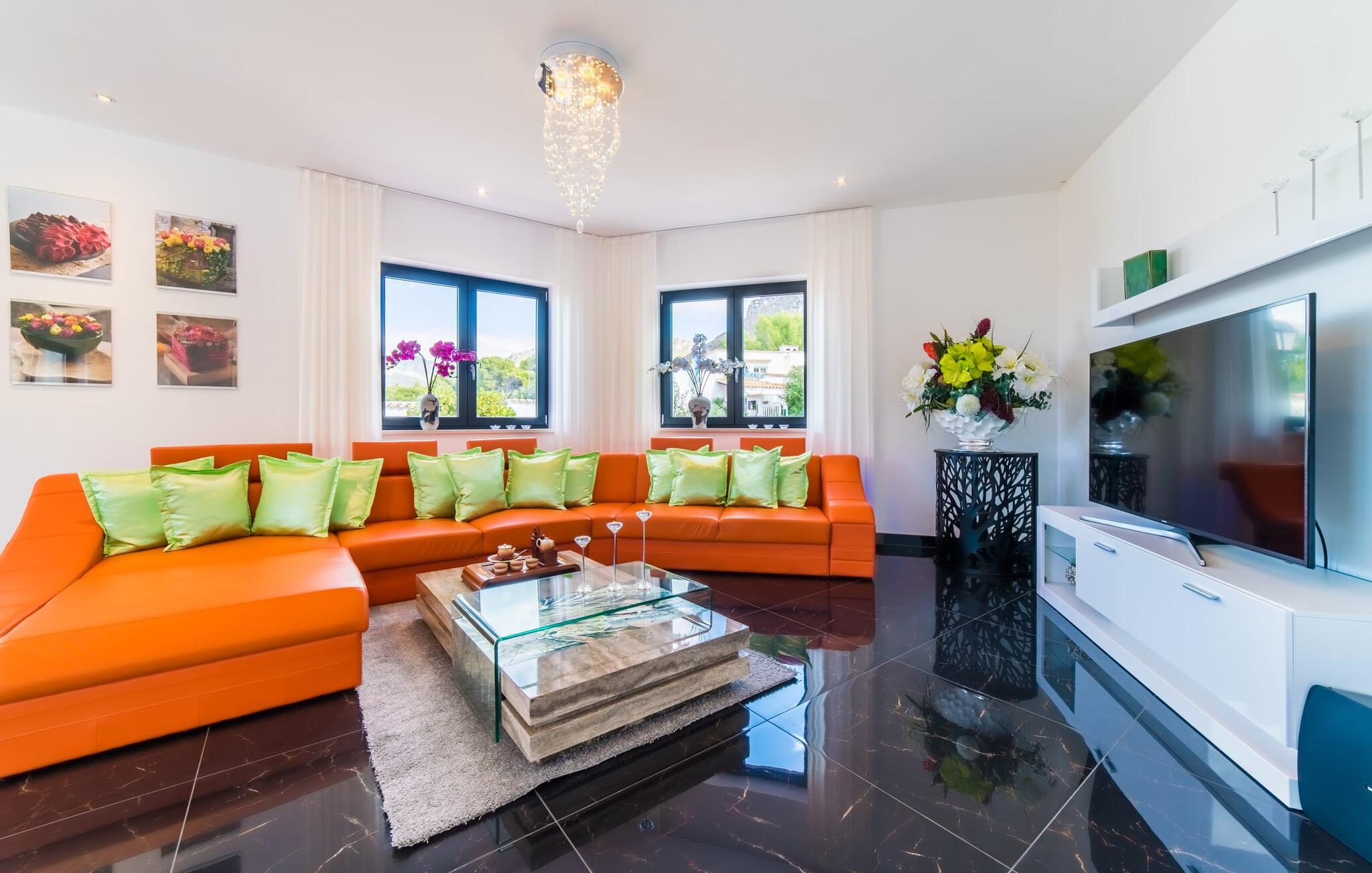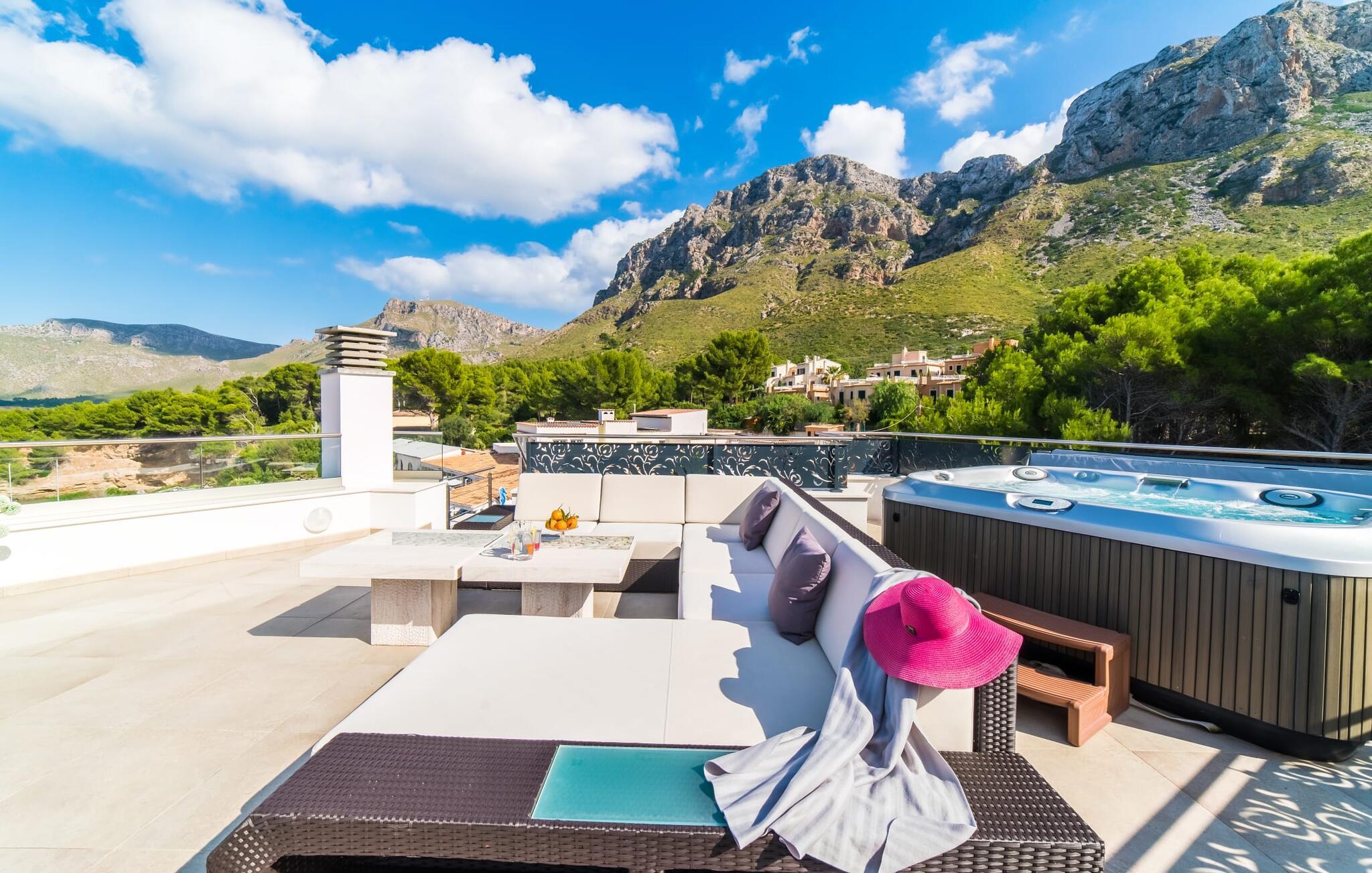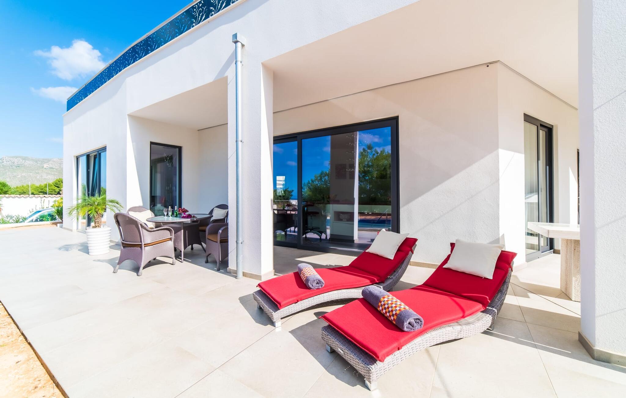 Denne ejendom på 970 m² med avantgardedesign imponerer med sin ubekymrede elegance og karakteren af et stilfuldt feriested, som ellers kun kendes fra fire- og femstjernede hoteller. Det er det perfekte sted at slappe af og nyde årets bedste dage fuldt ud. Den rummelige tagterrasse med smagfuldt udvalgte loungemøbler er det ideelle sted for en solid morgenmad. Bliv fortryllet af den uforstyrrede udsigt over havet og det omkringliggende kystlandskab. På en mild sommeraften fuldender solnedgangen den vidunderlige stemning. Wellness-området er lige på stedet: Villaen "Galeria Verde" er blevet udstyret med et udendørs spabad til afslappende stunder med forkælelse. En etage nedenfor finder I komfortable dagsenge med parasoller og et spisebord med fire stole på en anden tagterrasse. Den nederste terrasse er forbundet med haven, som har et minimalistisk design. Højdepunktet er poolen på 8 x 4 m med trappegulv: svøm mod horisonten og fordyb jer i det endeløse blå vand... et øjeblik ser poolen ud til at blive ét med havet! Der er også komfortable liggestole til jeres rådighed; En udendørs bruser og et andet spisebord med fire stole samt en grill fuldender udstyret. Den afslappede luksus ved denne enestående ejendom fortsætter indenfor. Denne stilfulde villa "kun for voksne" med 161 m² boligareal byder på en overraskende mængde elegance, som sammen med et strejf af ekstravagance kulminerer i en meget individuel karakter. Gulv-til-loft vinduer giver masser af lys i opholdsrummet; Det slående er interiørets farverige design, som understreger en unik boligoplevelse i topklasse. Det store spisebord med udsigt over poolen kan rumme op til otte personer. En serie af enorme sofaer inviterer jer til at slappe af; Det store fladskærms-tv passer harmonisk ind i rummets design. Det åbne køkken er udstyret med moderne, højkvalitets elektriske apparater. Den store ø med morgenmadsbar er et sandt blikfang. Dette er et fantastisk sted at lave mad, chatte og nyde et glas vin sammen! Derudover er der to soveværelser i stueetagen, hver med et moderne design og store sovesofaer. Det ene af de to soveværelser har gulv-til-loft vinduer; den anden har et ekstra bord med to stole. Det elegante badeværelse har to separate håndvaske, store spejle og et brusekabine. På øverste etage er der et rummeligt, lyst studie med direkte udgang til tagterrassen. Den øverste etage i denne drømmevilla har direkte adgang udefra og kan kun lejes sammen med villaen. Det store afslapningsområde og den flydende overgang til det store dagslysbadeværelse med bruseniche og regnbruser understreger den luksuriøse flair. Alle soveværelser samt opholdsstuen og studiet har aircondition, som sikrer behagelig kølighed i sommermånederne. Det lille feriested Betlem ligger i den nordvestlige del af kommunen Artà i Llevant-regionen. Det er det fjerneste, man kan forestille sig fra masseturisme og pakkerejser. Det lille feriested er mere et tilflugtssted for kræsne feriegæster, der udover at være tæt på havet også værdsætter privatlivets fred. “Galerie Verde” ligger i gåafstand fra en lille badebugt og er let tilgængelig i bil via en asfalteret indkørsel. Omkring 3 km vest ligger fiskerbyen Colonia de San Pere. Resortet er berømt for sine restauranter, der serverer dagens fangst. Den smukke promenade inviterer jer til at slentre. På Club Náutico kan I spise, mens I nyder udsigten over den lille lystbådehavn. For en mere urban følelse anbefaler vi en tur til Àrta, en dejlig lille kunstnerby med sin egen charme. I baglandet til Betlem finder I ægte postkortscener: Oliventræer, cypreslunde og græssende får kulminerer i landskabet. En vandrerute fører sydpå i bjergene, forbi Font de s'Ermita-flodens kilde, til Ermita de Betlem-klosteret. Fra det nærliggende udsigtspunkt kan I nyde et vidunderligt panorama over Alcúdia-bugten. Denne villa er ikke egnet til babyer/småbørn i gående alder og børn op til 12 år. Blot få minutters gang fra havet og med udsigt over Serres de Llevant-bjergkæden ligger denne drømmevilla i Betlem ved foden af Son Morell og Puig de Ferrutx-bjergene. Det lille resort har en afslappet, men alligevel tiltalende karakter. Herfra kan I tage en naturskøn vandrerute til det berømte Ermita de Betlem-kloster. Der er en række restauranter i den nærliggende fiskerby Colonia de San Pere. Artà er omkring 20 minutter væk i bil; Der er et lille supermarked lige uden for døren.