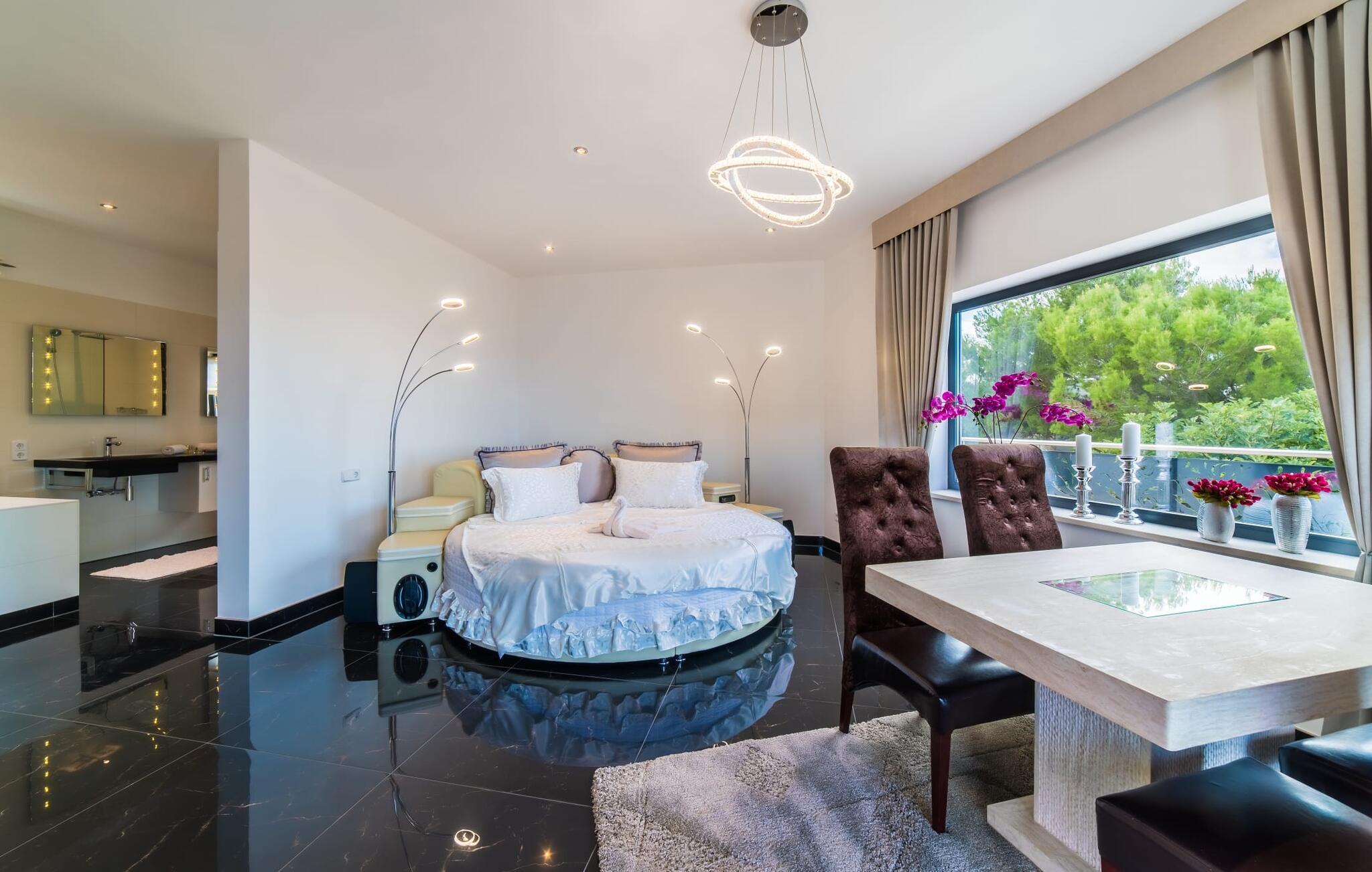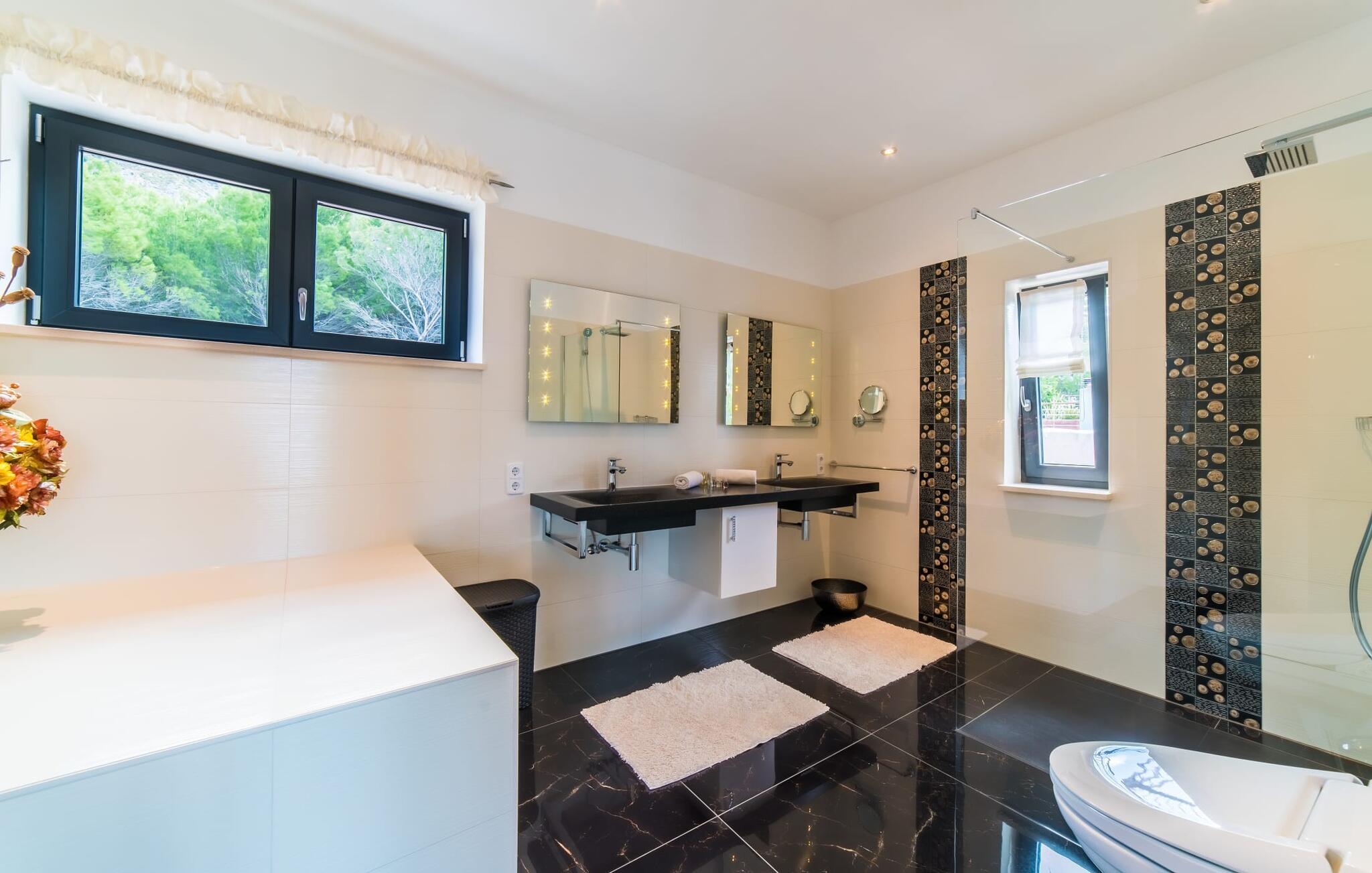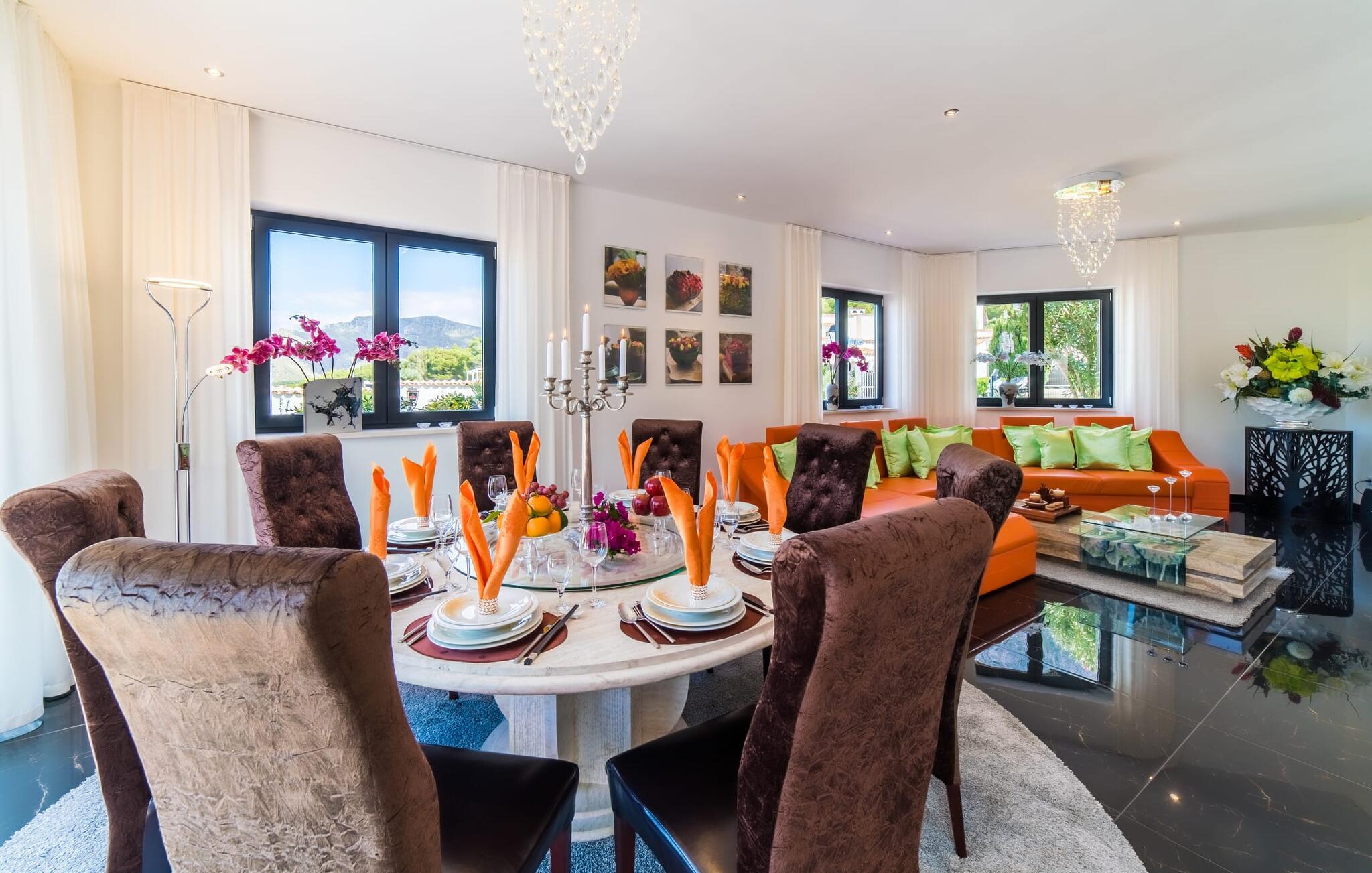 Denne ejendom på 970 m² med avantgardedesign imponerer med sin ubekymrede elegance og karakteren af et stilfuldt feriested, som ellers kun kendes fra fire- og femstjernede hoteller. Det er det perfekte sted at slappe af og nyde årets bedste dage fuldt ud. Den rummelige tagterrasse med smagfuldt udvalgte loungemøbler er det ideelle sted for en solid morgenmad. Bliv fortryllet af den uforstyrrede udsigt over havet og det omkringliggende kystlandskab. På en mild sommeraften fuldender solnedgangen den vidunderlige stemning. Wellness-området er lige på stedet: Villaen "Galeria Verde" er blevet udstyret med et udendørs spabad til afslappende stunder med forkælelse. En etage nedenfor finder I komfortable dagsenge med parasoller og et spisebord med fire stole på en anden tagterrasse. Den nederste terrasse er forbundet med haven, som har et minimalistisk design. Højdepunktet er poolen på 8 x 4 m med trappegulv: svøm mod horisonten og fordyb jer i det endeløse blå vand... et øjeblik ser poolen ud til at blive ét med havet! Der er også komfortable liggestole til jeres rådighed; En udendørs bruser og et andet spisebord med fire stole samt en grill fuldender udstyret. Den afslappede luksus ved denne enestående ejendom fortsætter indenfor. Denne stilfulde villa "kun for voksne" med 161 m² boligareal byder på en overraskende mængde elegance, som sammen med et strejf af ekstravagance kulminerer i en meget individuel karakter. Gulv-til-loft vinduer giver masser af lys i opholdsrummet; Det slående er interiørets farverige design, som understreger en unik boligoplevelse i topklasse. Det store spisebord med udsigt over poolen kan rumme op til otte personer. En serie af enorme sofaer inviterer jer til at slappe af; Det store fladskærms-tv passer harmonisk ind i rummets design. Det åbne køkken er udstyret med moderne, højkvalitets elektriske apparater. Den store ø med morgenmadsbar er et sandt blikfang. Dette er et fantastisk sted at lave mad, chatte og nyde et glas vin sammen! Derudover er der to soveværelser i stueetagen, hver med et moderne design og store sovesofaer. Det ene af de to soveværelser har gulv-til-loft vinduer; den anden har et ekstra bord med to stole. Det elegante badeværelse har to separate håndvaske, store spejle og et brusekabine. På øverste etage er der et rummeligt, lyst studie med direkte udgang til tagterrassen. Den øverste etage i denne drømmevilla har direkte adgang udefra og kan kun lejes sammen med villaen. Det store afslapningsområde og den flydende overgang til det store dagslysbadeværelse med bruseniche og regnbruser understreger den luksuriøse flair. Alle soveværelser samt opholdsstuen og studiet har aircondition, som sikrer behagelig kølighed i sommermånederne. Det lille feriested Betlem ligger i den nordvestlige del af kommunen Artà i Llevant-regionen. Det er det fjerneste, man kan forestille sig fra masseturisme og pakkerejser. Det lille feriested er mere et tilflugtssted for kræsne feriegæster, der udover at være tæt på havet også værdsætter privatlivets fred. “Galerie Verde” ligger i gåafstand fra en lille badebugt og er let tilgængelig i bil via en asfalteret indkørsel. Omkring 3 km vest ligger fiskerbyen Colonia de San Pere. Resortet er berømt for sine restauranter, der serverer dagens fangst. Den smukke promenade inviterer jer til at slentre. På Club Náutico kan I spise, mens I nyder udsigten over den lille lystbådehavn. For en mere urban følelse anbefaler vi en tur til Àrta, en dejlig lille kunstnerby med sin egen charme. I baglandet til Betlem finder I ægte postkortscener: Oliventræer, cypreslunde og græssende får kulminerer i landskabet. En vandrerute fører sydpå i bjergene, forbi Font de s'Ermita-flodens kilde, til Ermita de Betlem-klosteret. Fra det nærliggende udsigtspunkt kan I nyde et vidunderligt panorama over Alcúdia-bugten. Denne villa er ikke egnet til babyer/småbørn i gående alder og børn op til 12 år. Blot få minutters gang fra havet og med udsigt over Serres de Llevant-bjergkæden ligger denne drømmevilla i Betlem ved foden af Son Morell og Puig de Ferrutx-bjergene. Det lille resort har en afslappet, men alligevel tiltalende karakter. Herfra kan I tage en naturskøn vandrerute til det berømte Ermita de Betlem-kloster. Der er en række restauranter i den nærliggende fiskerby Colonia de San Pere. Artà er omkring 20 minutter væk i bil; Der er et lille supermarked lige uden for døren.