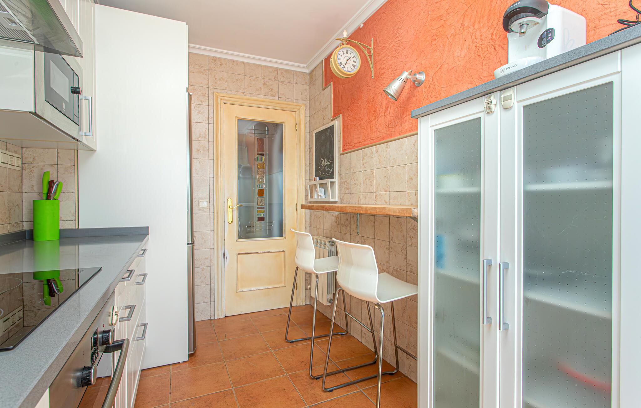 En ferie med fred, ro og masser af skøn natur er, hvad der venter jer i denne dejlige lejlighed. I bor her i et roligt kvarter på tredje sal, og lejligheden er nydeligt indrettet med festlige farver, velholdte klinkegulve- og vægge og gode faciliteter, der gør det nemt for jer at slappe af og bare nyde. Tilbered jeres livretter i det veludstyrede køkken, slap af den lyse stue og smid en god film på tv'et, mens I lægger planer for de kommende dage.