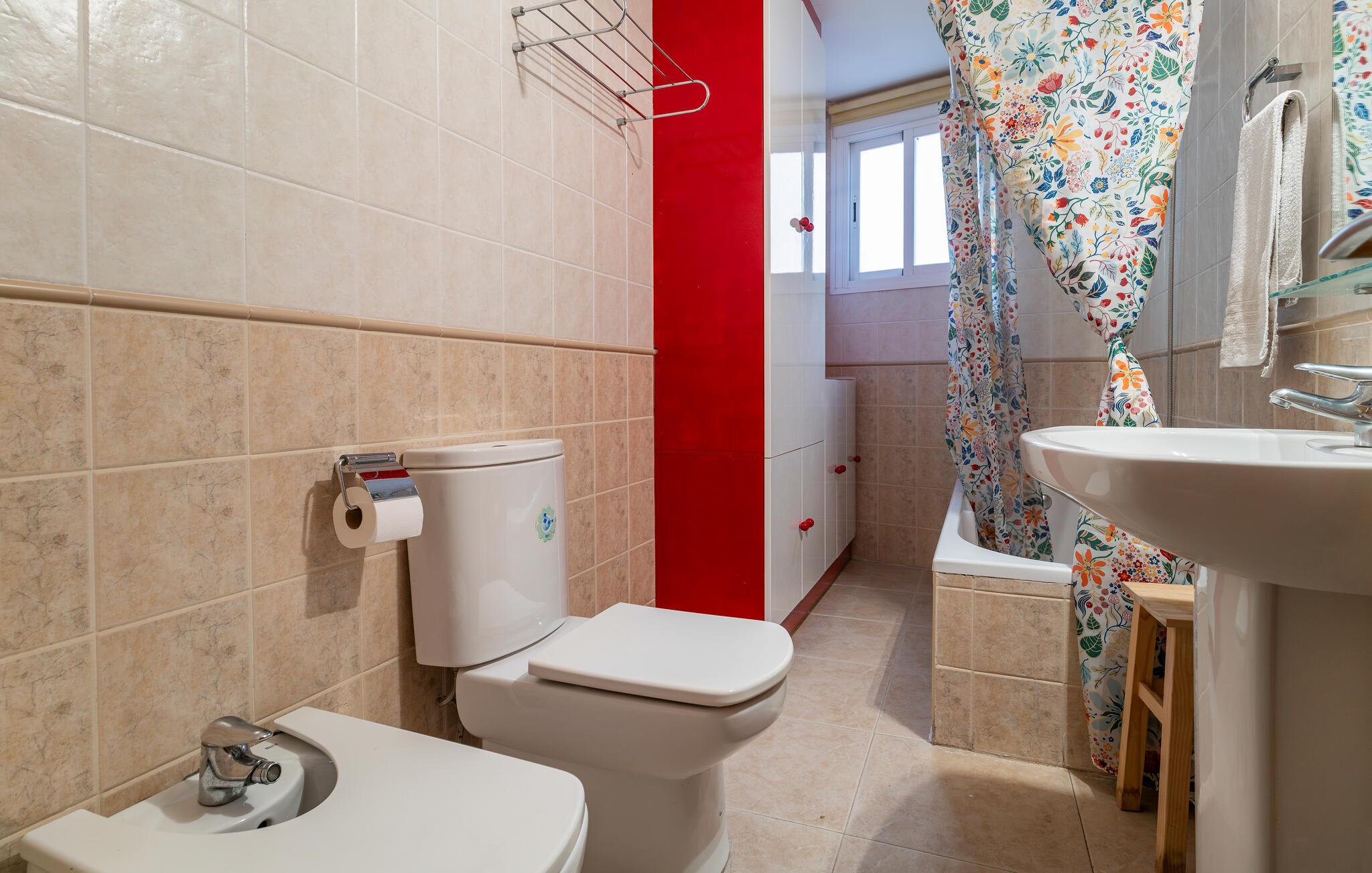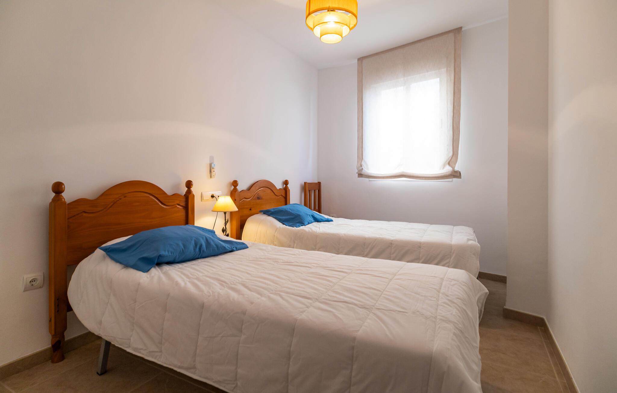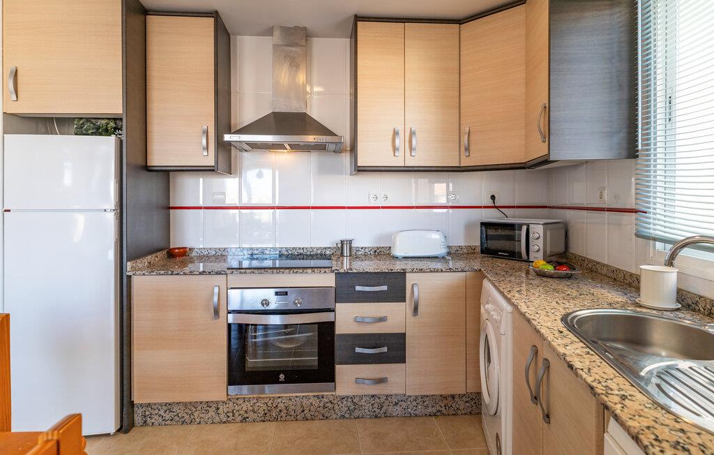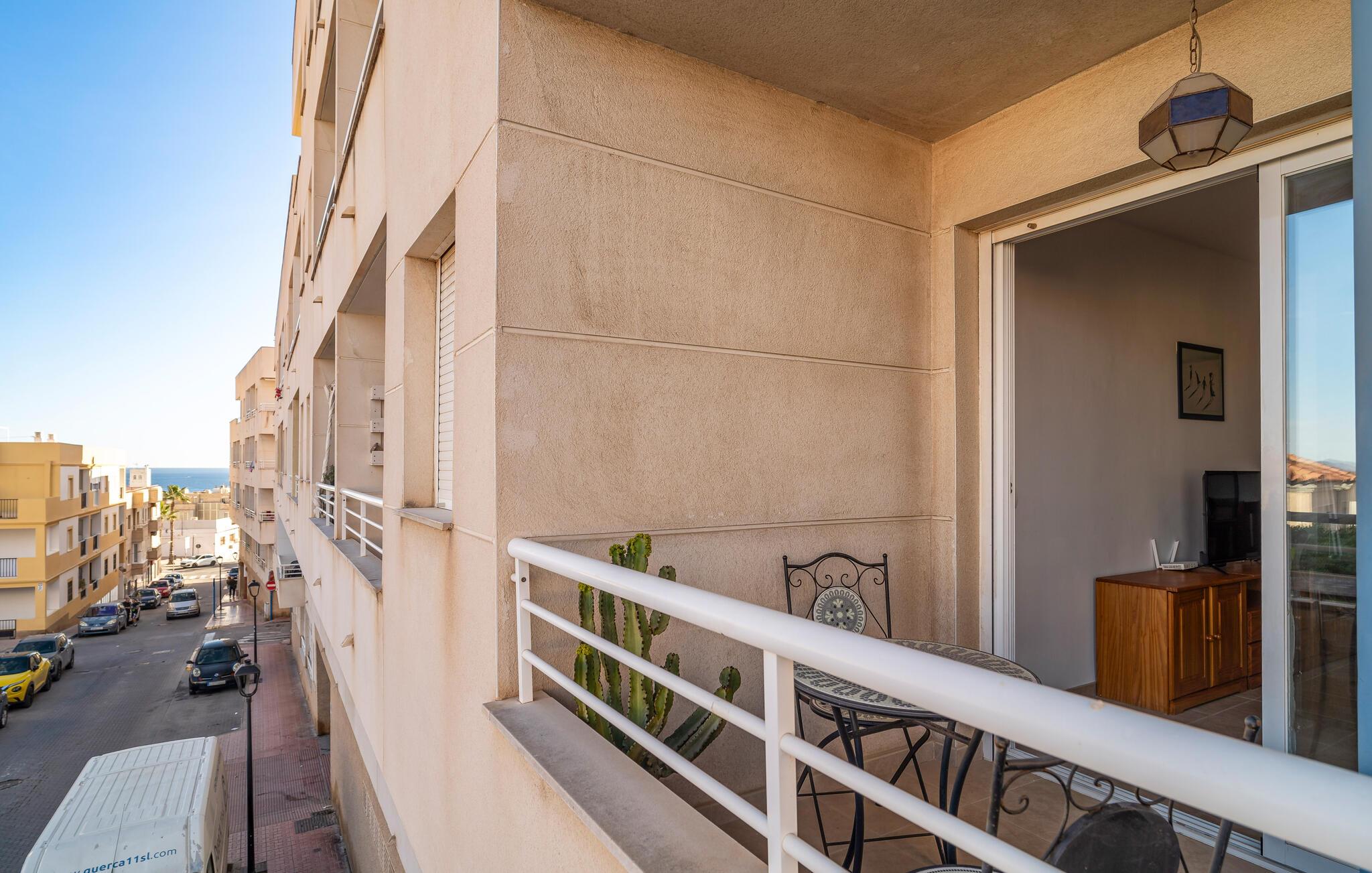 Jeres stilfuldt indrettede ferielejlighed i Garrucha tilbyder jer alt, hvad I skal bruge til en afslappende ferie på Costa de Almeria. Begynd jeres morgen på balkonen, hvor I kan nyde jeres morgenmad med en vidunderlig udsigt over området. Havet funkler i baggrunden og lægger op til en varm dag på stranden. Den lyse opholdsstue lover ren afslapning takket være de komfortable siddepladser, mens det veludstyrede køkken giver jer mulighed for at tilberede lækre måltider. Brug den elegante spiseplads til sociale aftener eller slap af med en bog på den komfortable sofa.
