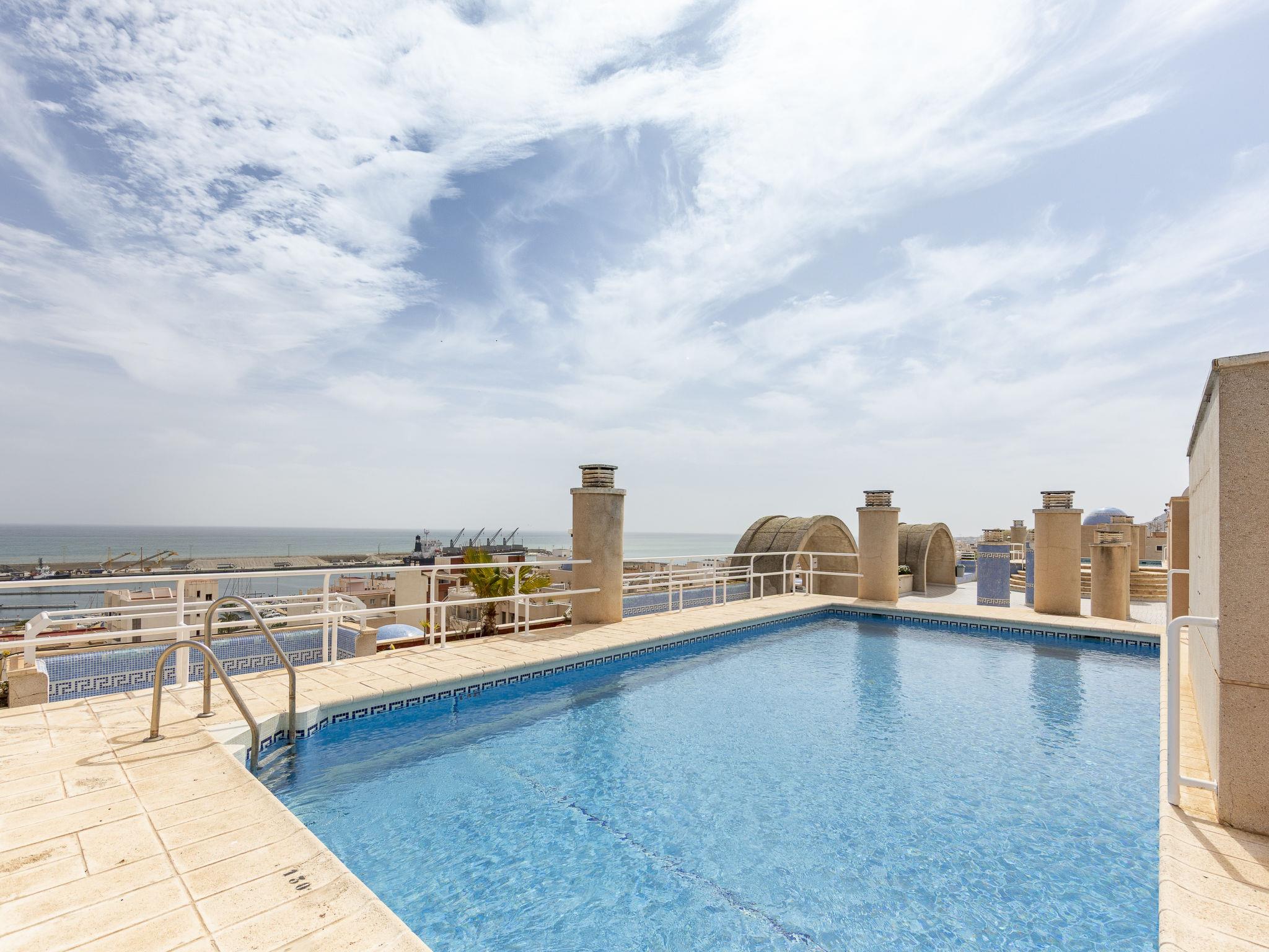 Residence "Las Terrazas de Garrucha". In the centre of Garrucha, in a sunny position, 200 m from the sea, 500 m from the beach. For shared use: 2 swimming pools (10 x 5 m, depth 140 cm, seasonal availability: 01.Jul. - 15.Sep.). Children's pool, outdoor shower. In the house: lift. Roofed, parking at the house. Supermarket 300 m, restaurant, bar, café 100 m, bus stop "Garrucha Centro" 450 m. Sports harbour 200 m. The owner does not accept any youth groups. Neighbourhood highly sensitive to noise. Quietness and good behaviour expected. The opening of the pool is subject to weather conditions..