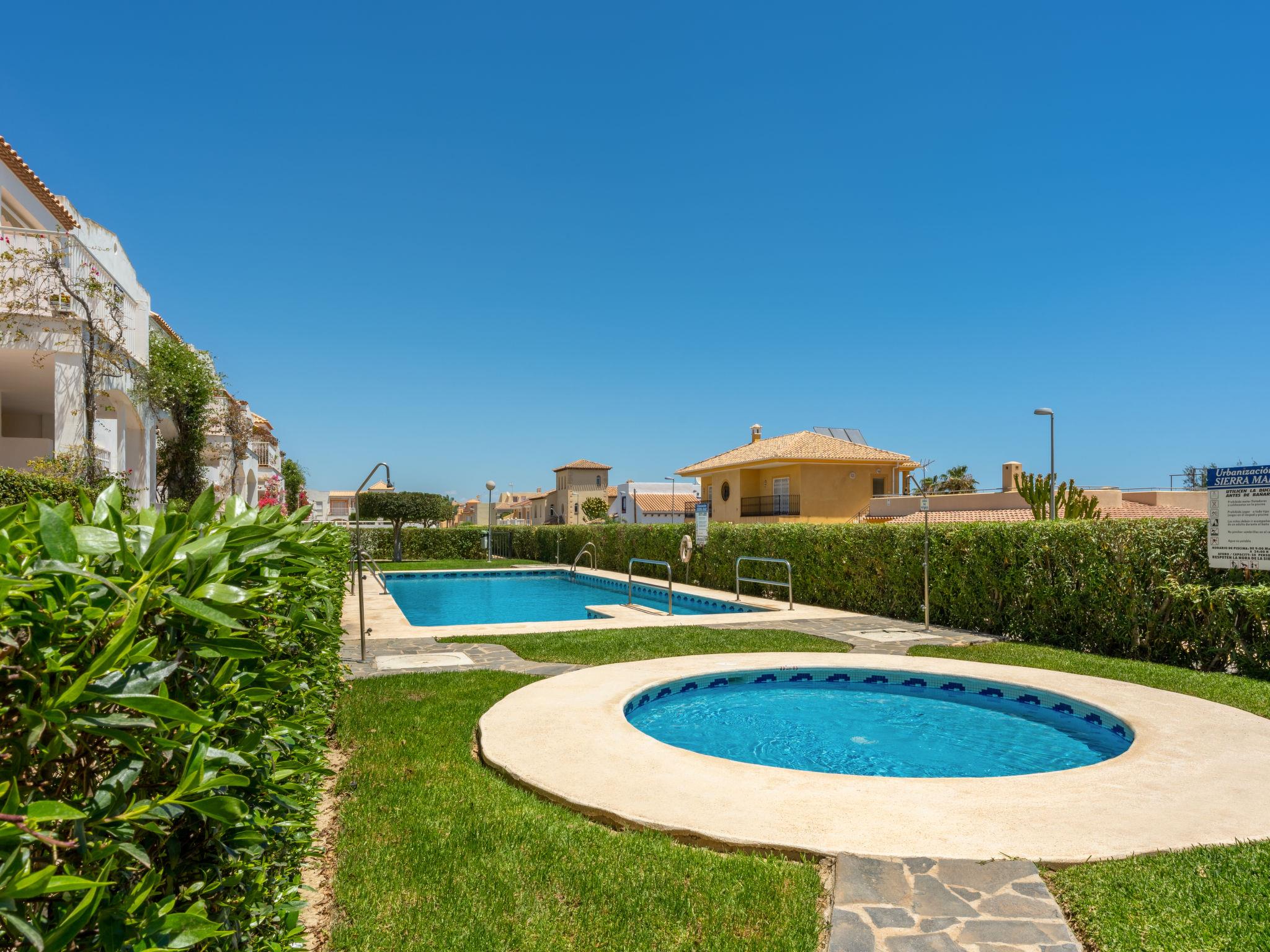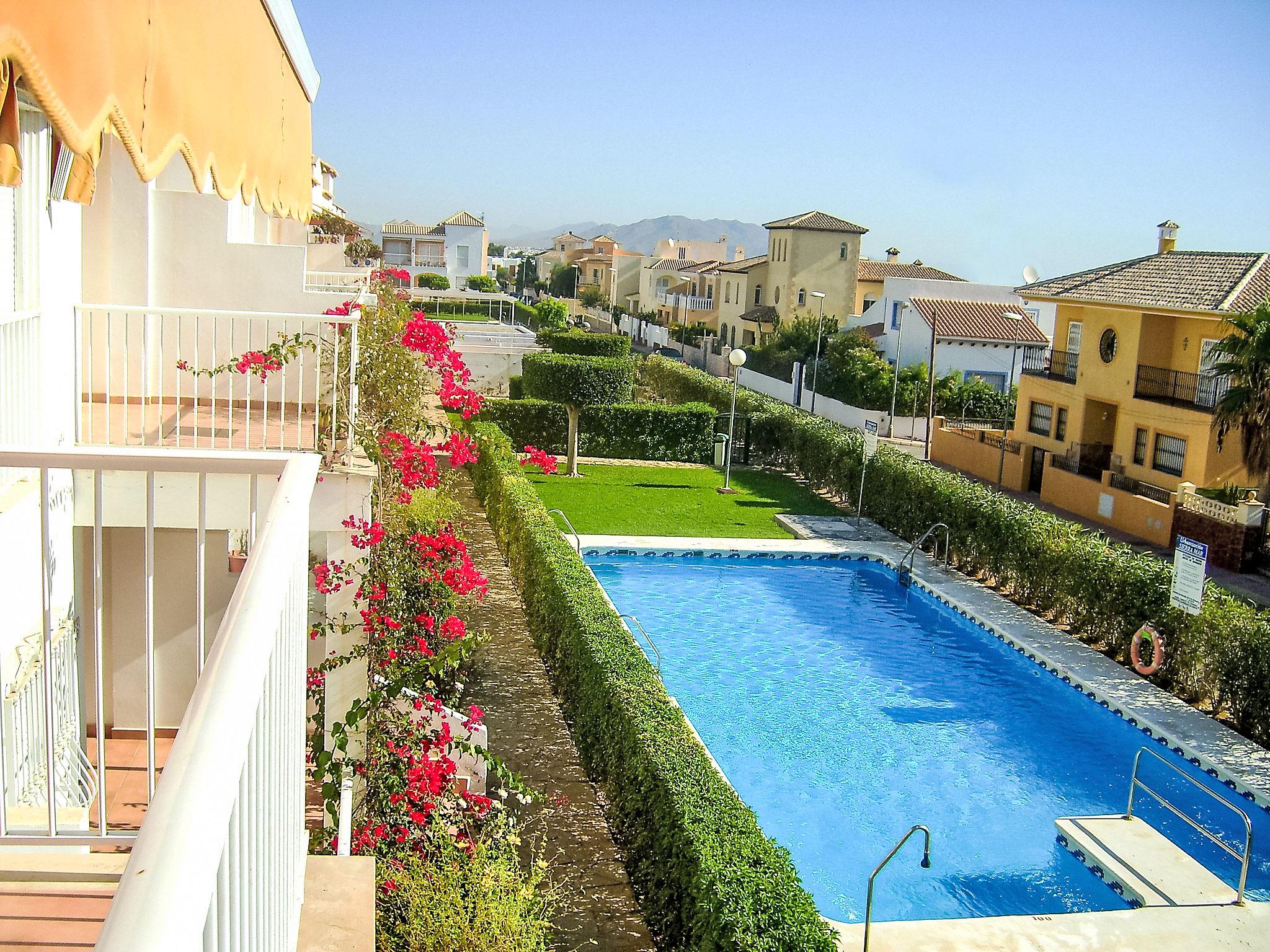 Apartment block "Sierra Mar". Outside the resort, 1 km from the centre of Garrucha, in a quiet position, 500 m from the sea. For shared use: garden 40 m2 (fenced) with lawn, swimming pool angular (5 x 10 m, seasonal availability: 01.Jan. - 31.Dec.). Children's pool, outdoor shower, poolhouse with shower and WC. Supermarket 200 m, restaurant 500 m, bus stop 290 m, sandy beach 500 m. Golf course (18 hole) 8 km, riding stable 2 km. Vera 5 km.