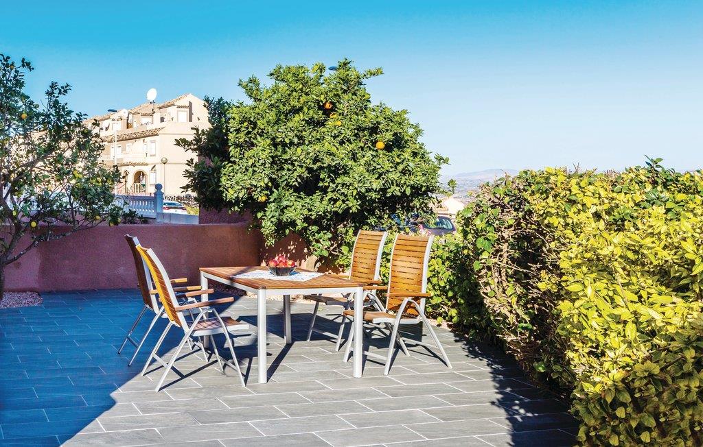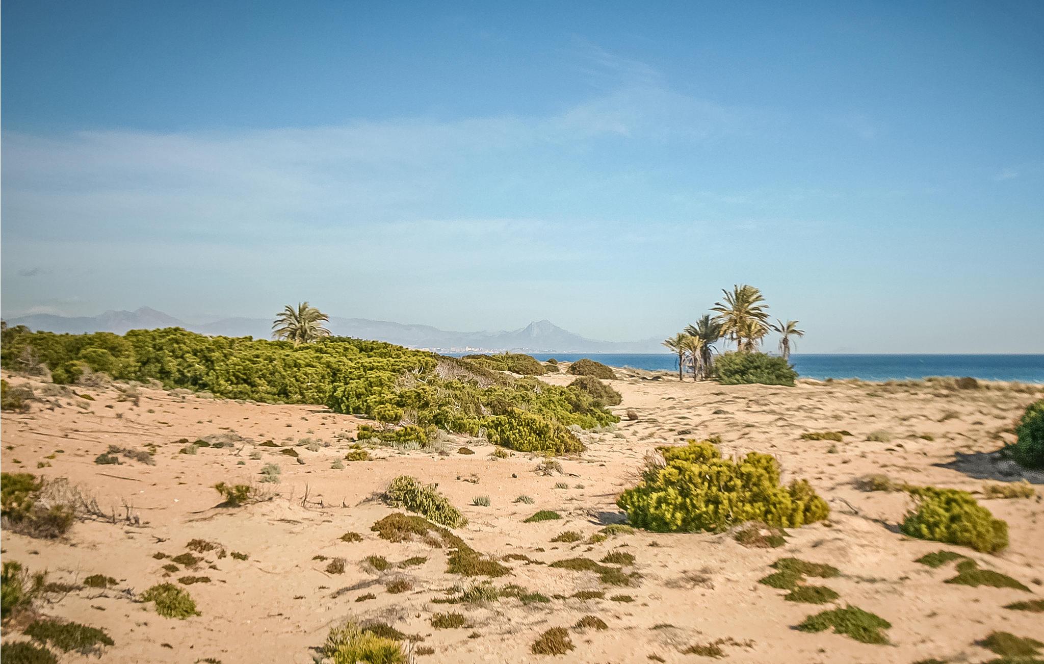 Dette charmerende ferierækkehus med terrasse, balkon og tre soveværelser ligger ikke langt fra den paradisiske strand Carabassí, som er en af de skønneste strande langs Costa Blanca. Nyd at gå ture i strandkanten langs klitter og pinjeskove, dyrk vandsport på og i vandet og nyd en drink eller en kop kaffe på en af de mange strandbarer. I kan også hoppe en tur i den fælles pool og bagefter tage solbad i en behagelig solstol. Holder I af natur, så er der meget at se og opleve: Det smukke naturlandskab Clot de Galvany med sin unikke flora og fauna er ikke langt væk. Gå også ture hvor I måske kan opleve en af bunkerne, med historie tilbage til den spanske borgerkrig.