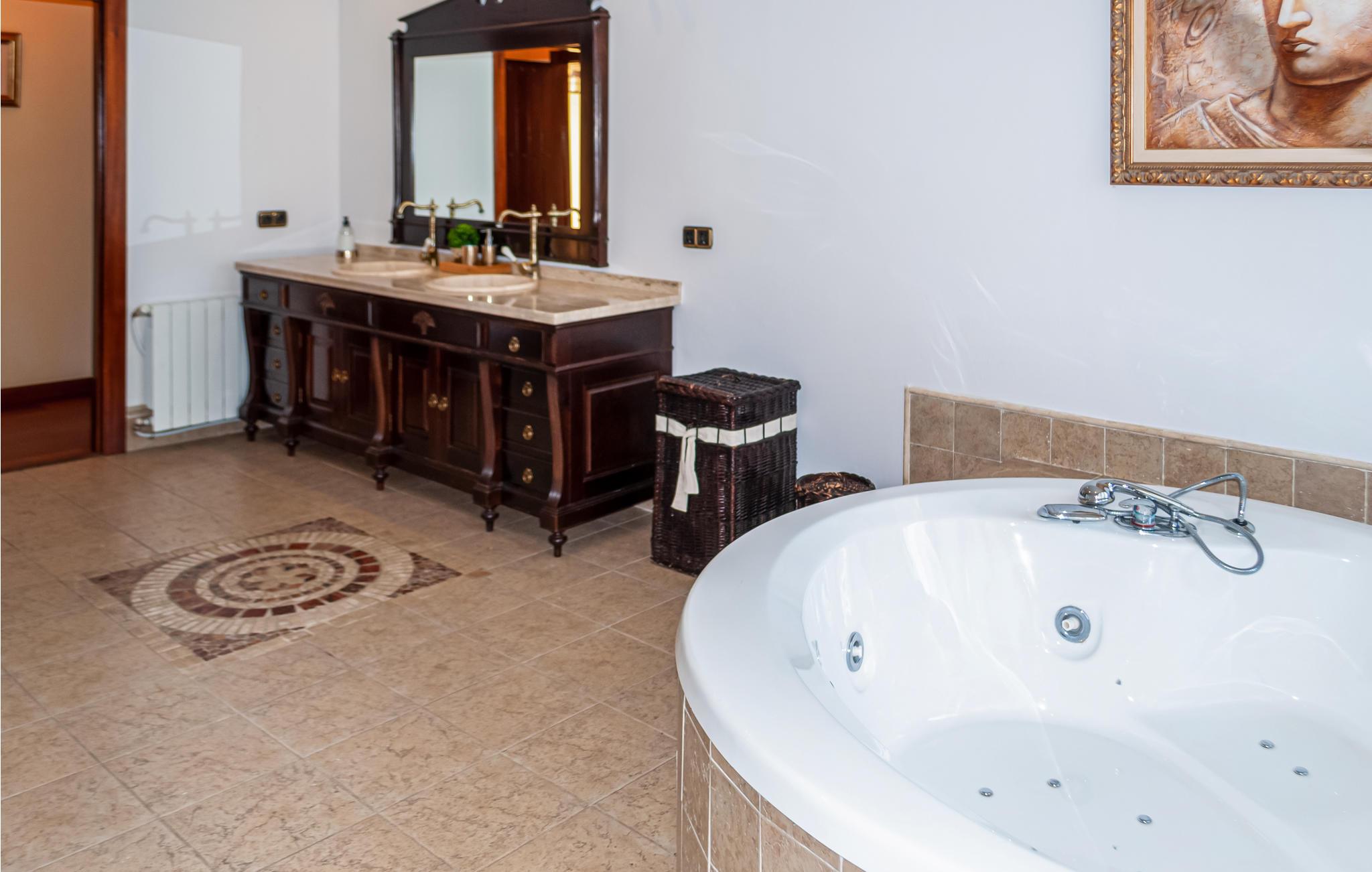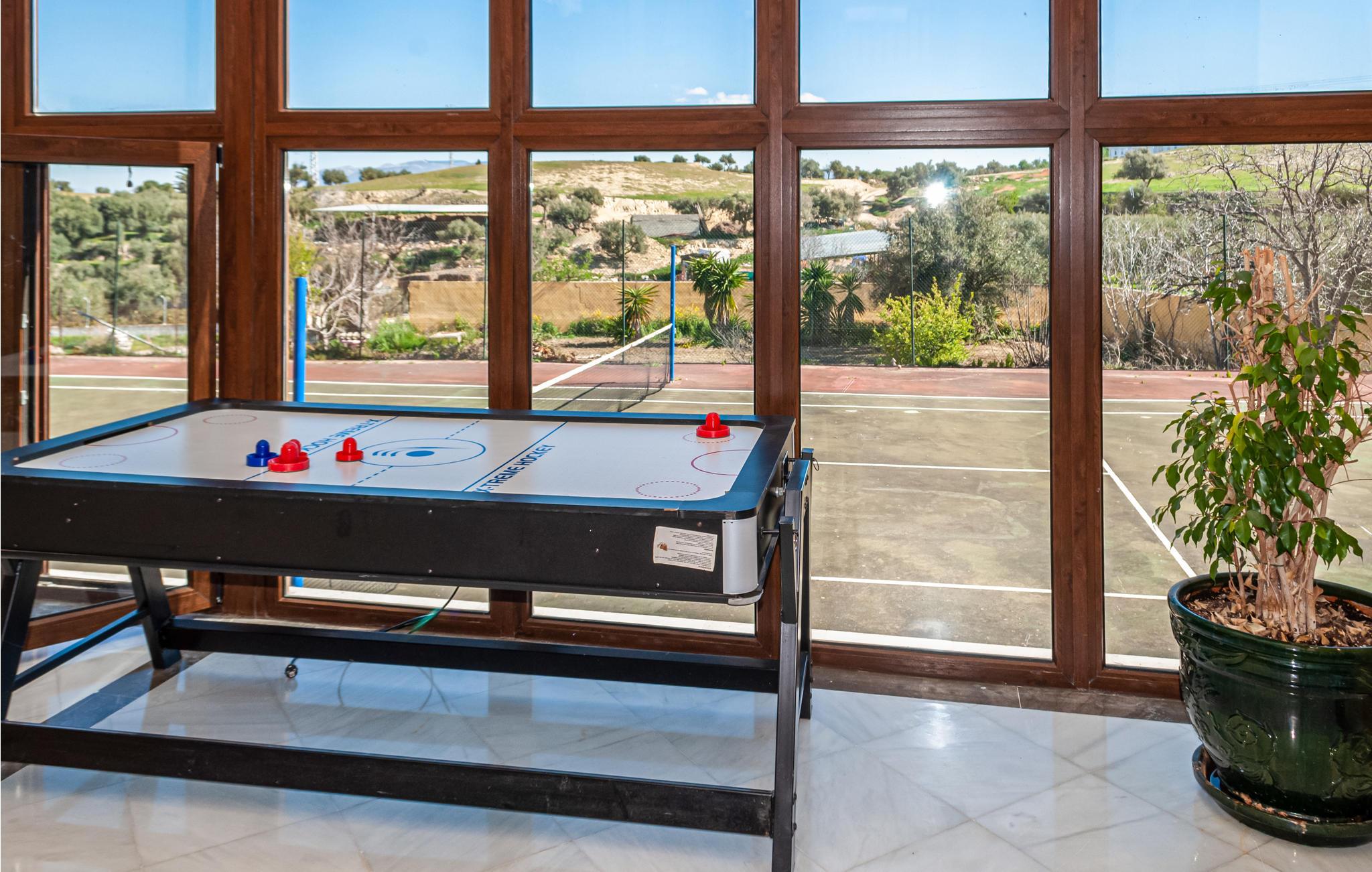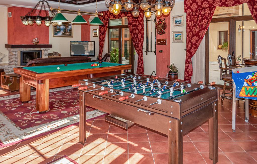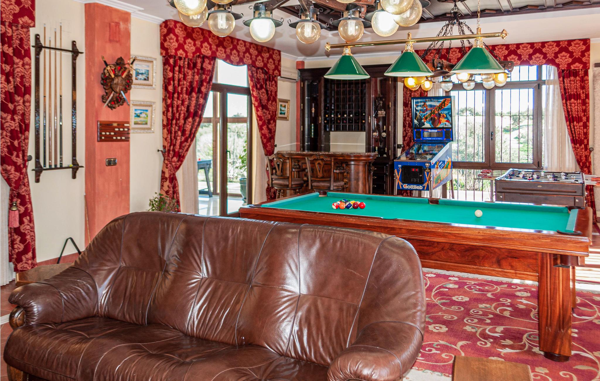 Glæd jer til nogle herlige dage i dette komfortable feriehus. De 9 soveværelser og 10 badeværelser giver plads til 23 personer, og så kan I også medbringe et enkelt kæledyr. Uanset om I rejser flere familier sammen eller skal på ferie med en gruppe venner, vil I sætte pris på de gode faciliteter, der omfatter aktivitetsrum, fitnessudstyr og spil. Saunaen og boblebadet lægger op til masser af afslapning.