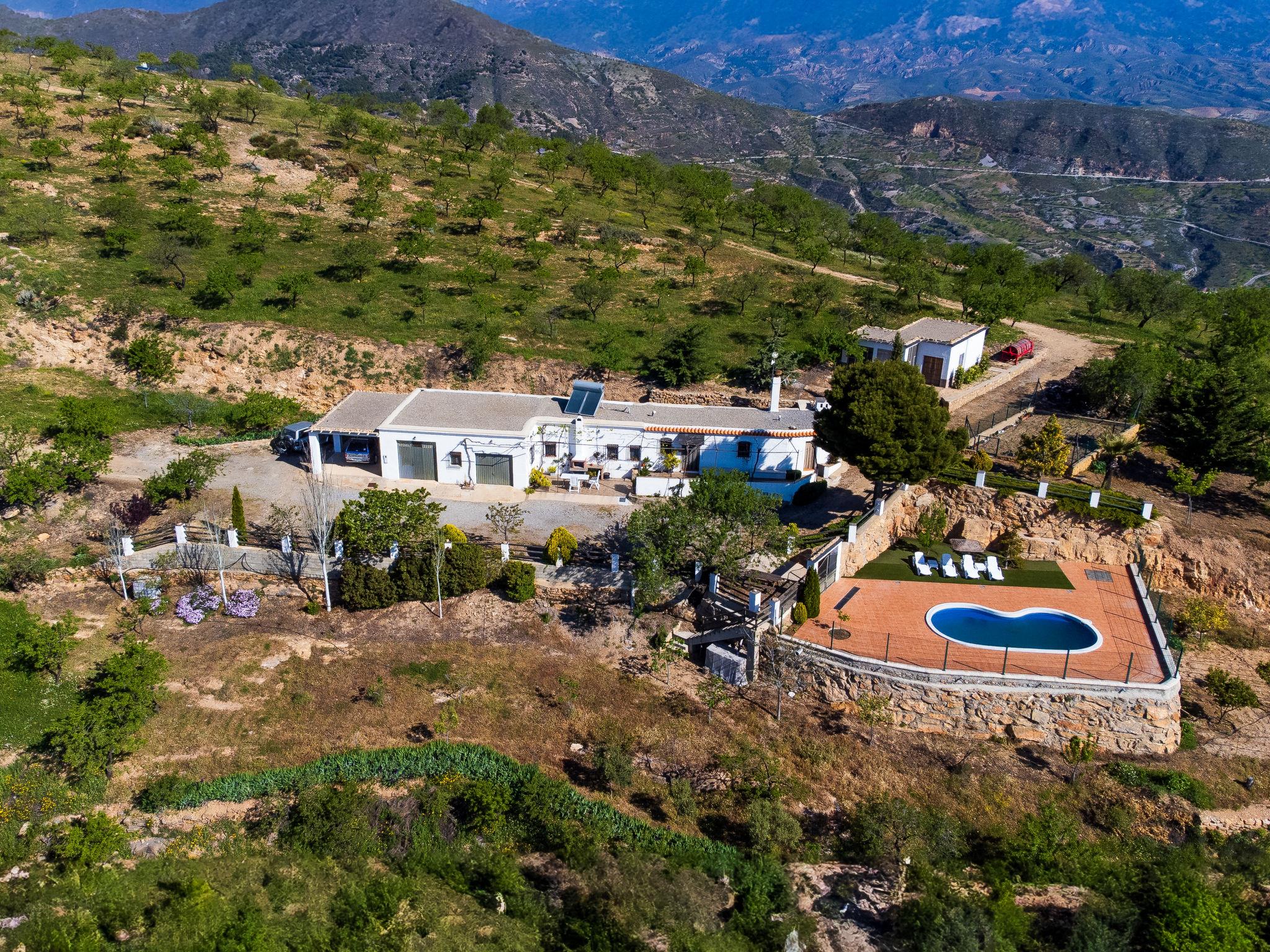Single-family house "Paraje Starlight Murtas - Alpujarra". In a secluded position, 30 km from the sea. Private: swimming pool (8 x 4 m, depth 200 cm, seasonal availability: 07.Jun. - 27.Sep.). Outdoor shower, terrace, barbecue. Stepped path (4 steps) to the house. Roofed, parking (for 2 cars) at the house. Bus stop "Murtas" 800 m. Golf course (9 hole) 80 km. Hiking paths: La Solana.