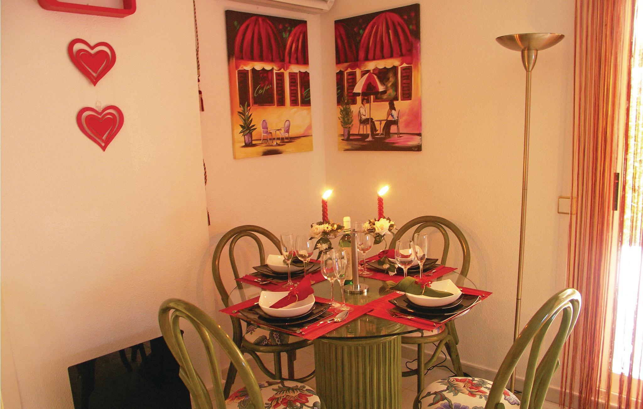 Denne ferielejlighed ligger i stueplan og er indrettet med spansk charme i klare stærke farver. Den ligger i EL Moncayo og har to terrasser, der begge er møbleret med behagelige havemøbler til ophold i det fri – fx en hængesofa til afslappet ophold. Der er fælles adgang til poolområde, der ligger omgivet af grønt og susende palmer. I kan også spadsere ned til sandstranden og det blå middelhav, ad en anlagt sti der går gennem en pinjeskov. Turen tager ca. syv minutter. En oplagt feriebolig til to eller til en familie på fire.
