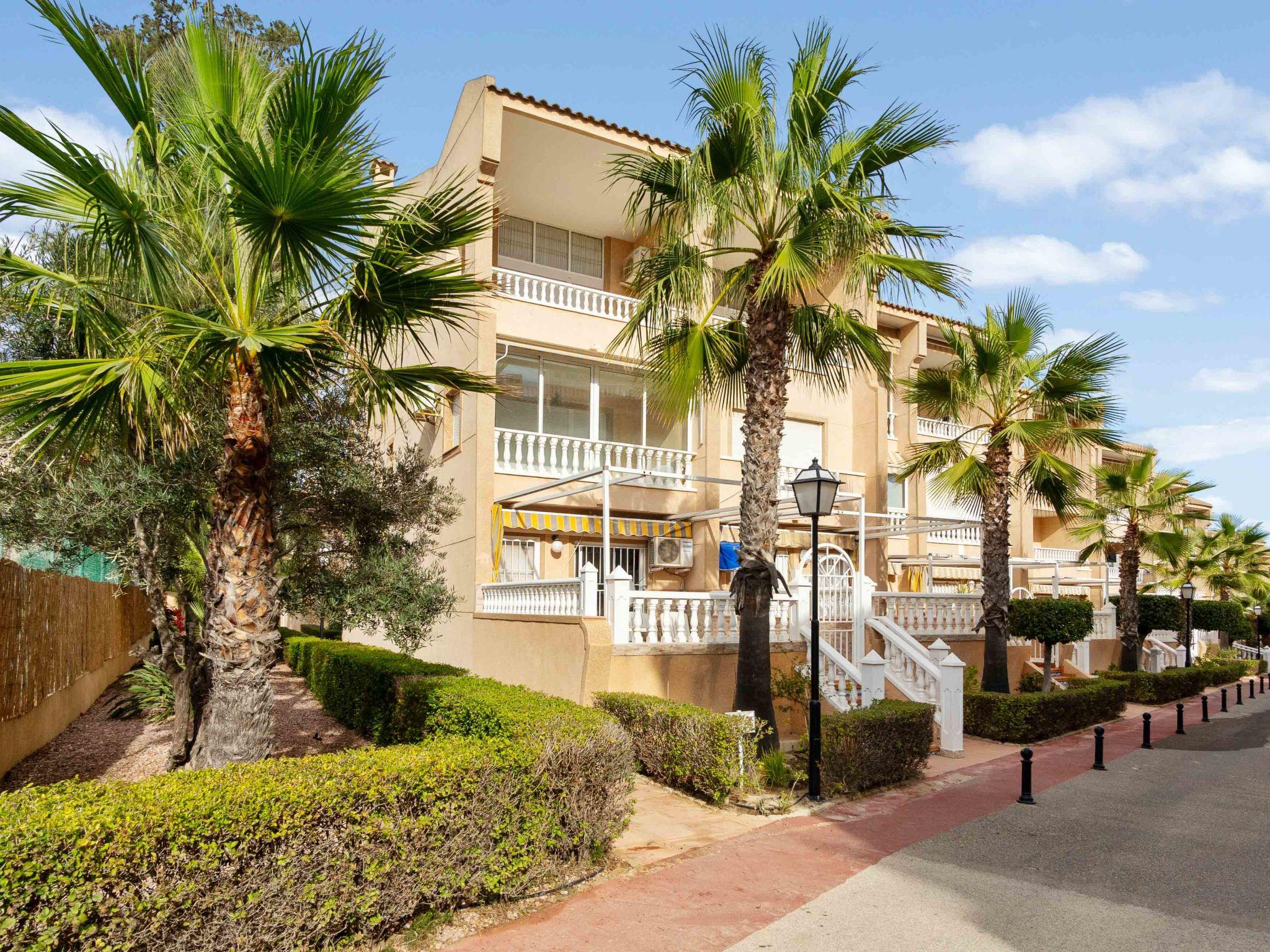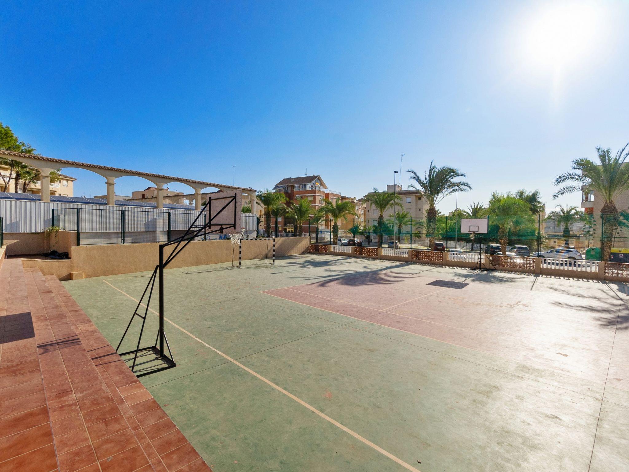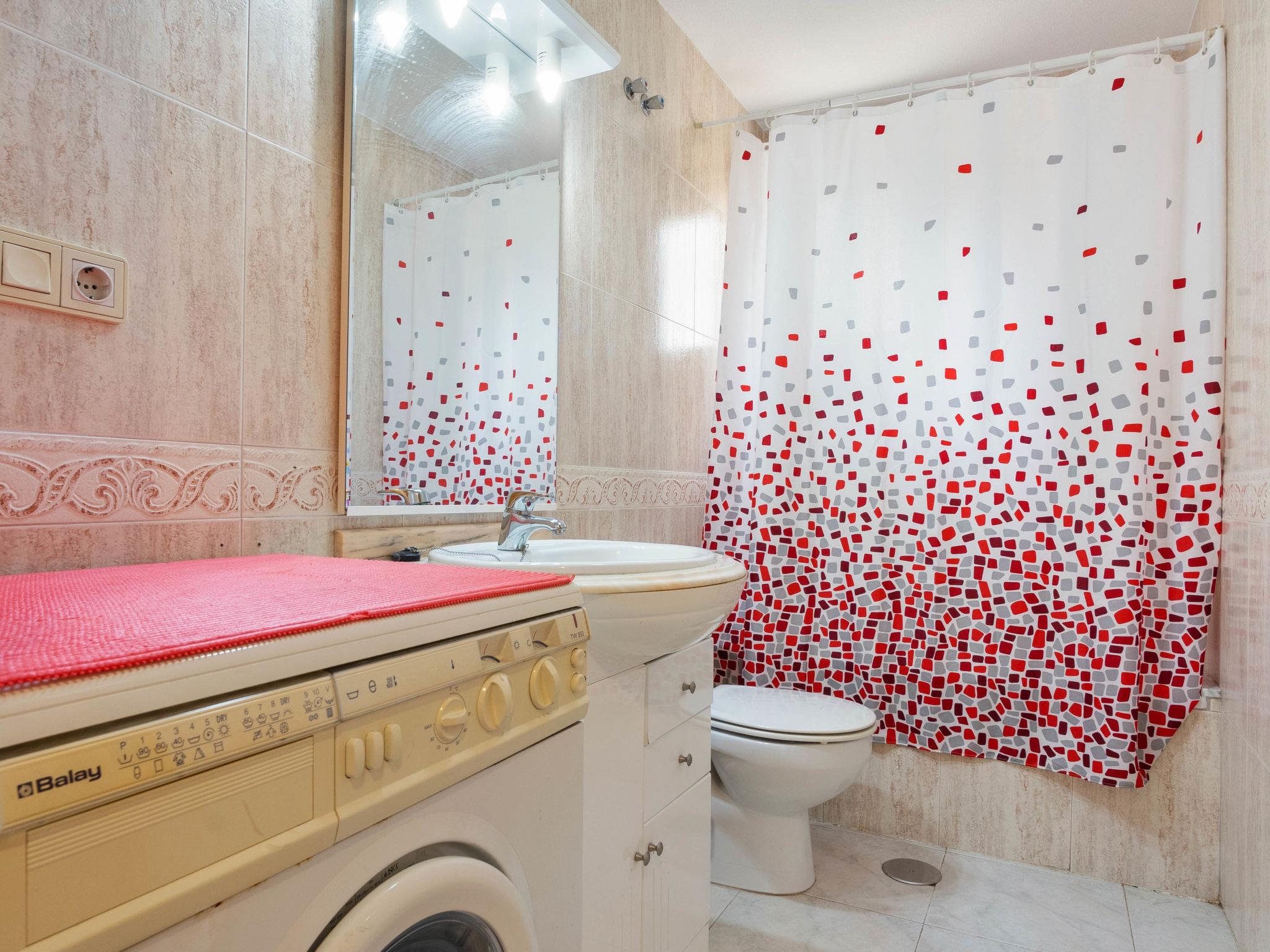 Guardamar del Segura: Comfortable apartment block "Residencial del Pinar", 2 storeys. Outside the resort, 1 km from the centre of Guardamar del Segura, 200 m from the sea, 300 m from the beach. For shared use: swimming pool kidney-shaped fenced (seasonal availability: 15.Jun. - 15.Sep.). Shower/WC in the pool area, children's pool, outdoor shower, tennis, children's playground (slide, swing). In the house: washing machine. Stepped path (37 steps) to the house. Public parking on the road. Grocery 50 m, shopping centre 500 m, restaurant, bar 200 m, bus stop "Estación Autobuses Guardamar" 1.5 km, sandy beach 200 m.