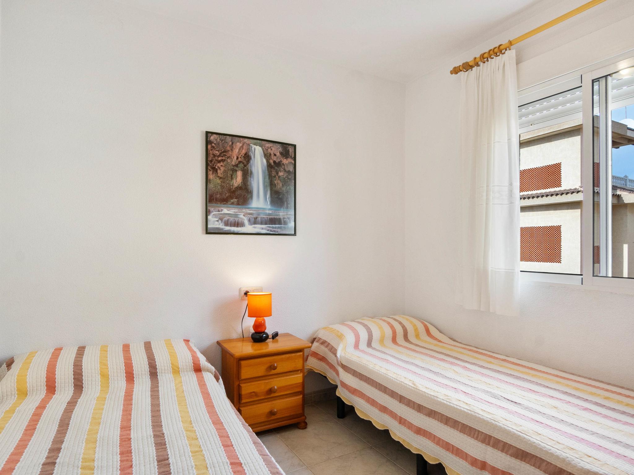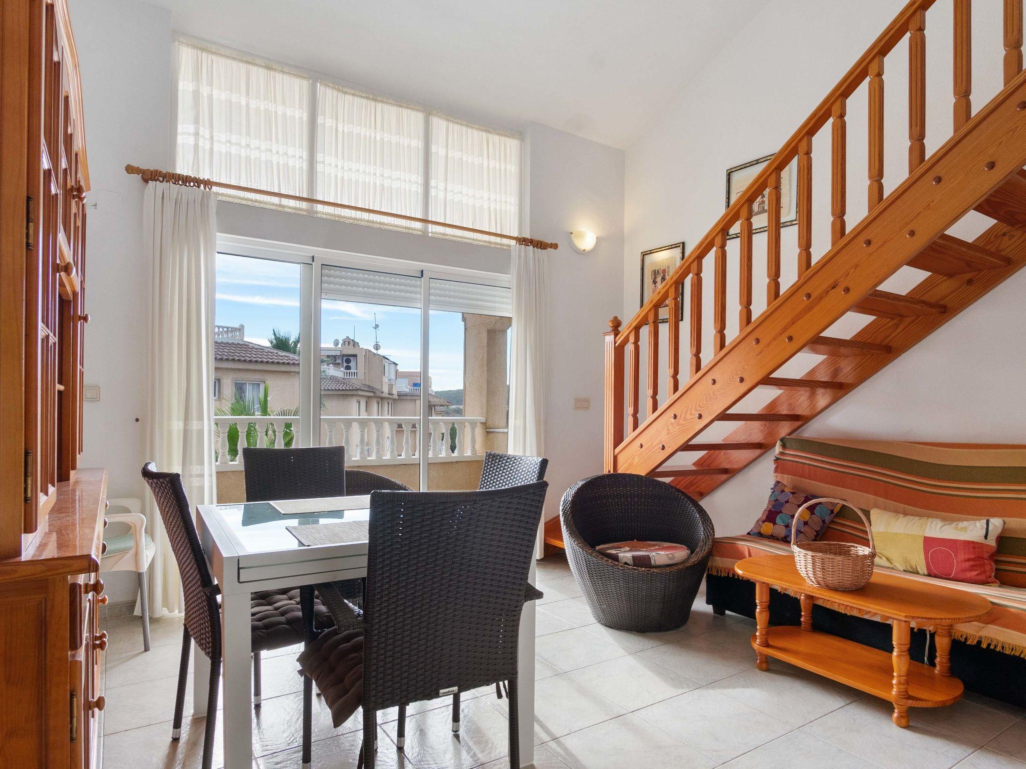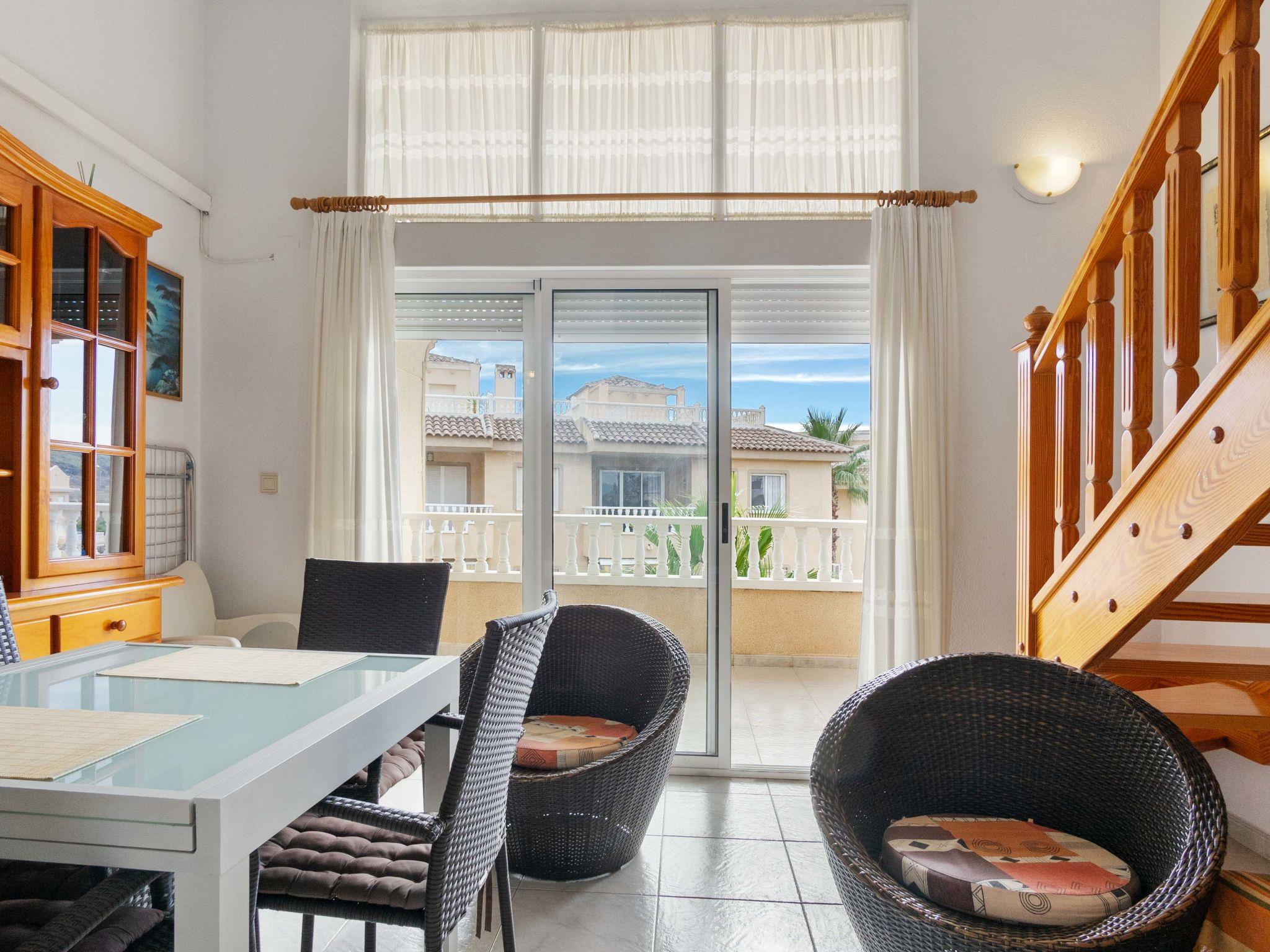 "Residencial El Pinar", 4-room maisonette 75 m2 on 2 levels. Bright, practical and comfortable furnishings: living/dining room with 1 sofabed, digital TV, flat screen, radio, CD-player, DVD, air conditioning and forced-air heating. 1 room with 2 beds. Open kitchen (oven, dishwasher, 4 ceramic glass hob hotplates, microwave, freezer) with bar. Shower/WC. Upper floor: 1 room with 1 french bed, air conditioning and forced-air heating. 1 room with 2 beds. Bath/bidet/WC. Large terrace 10 m2. Partial view of the valley. Facilities: washing machine, iron. Internet (WiFi). Please note: suitable for families. Maximum 1 pet/ dog allowed. No lift. AT-438862-A // Reg. Nr.: ESFCTU00000305700042636800000000000000000AT-438862-A3