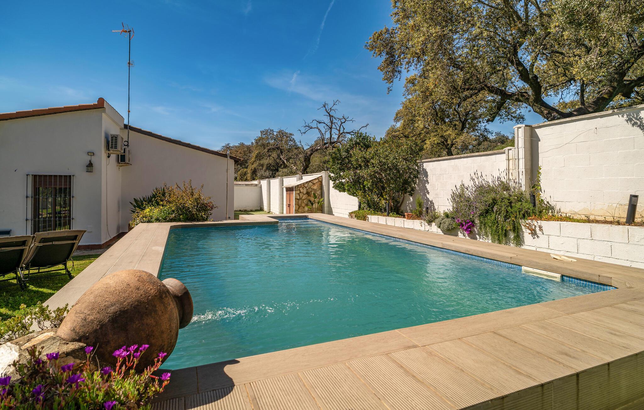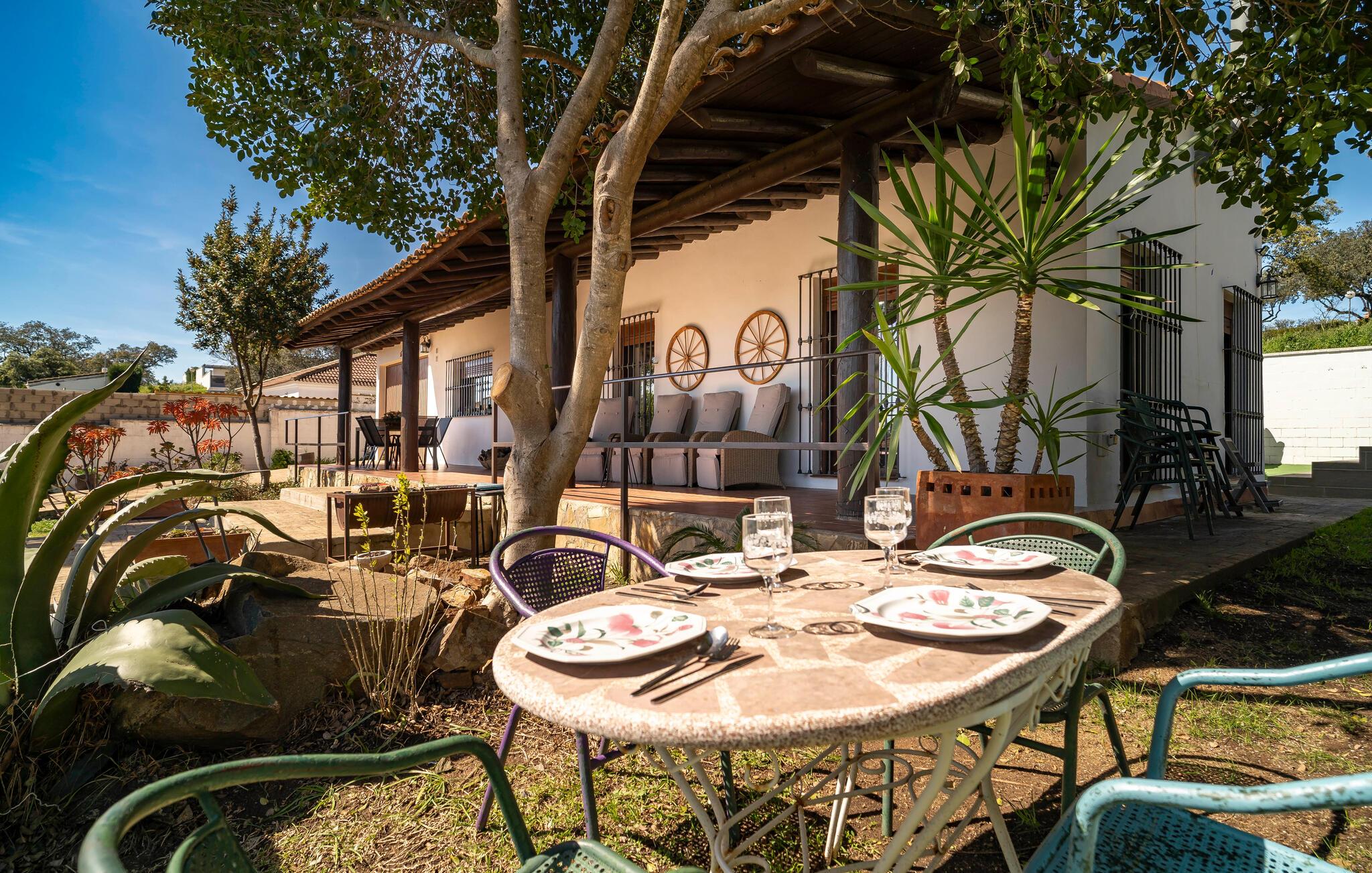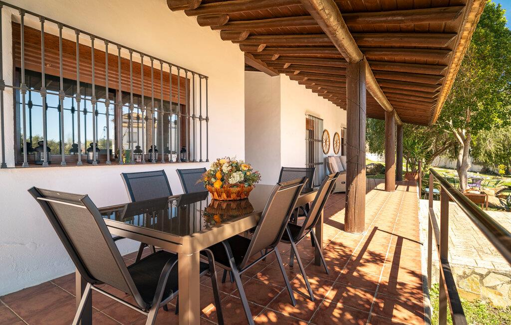 Udenfor kan I nyde solen og den vidunderlige udsigt over omgivelserne. Her finder I også poolen, hvor I kan dyppe jer i middagsheden og nyde livet i ro og mag. Indtag jeres måltider i det fri på de varme dage og skyl efter med et godt glas vin, mens I lægger planer for de kommende dage.