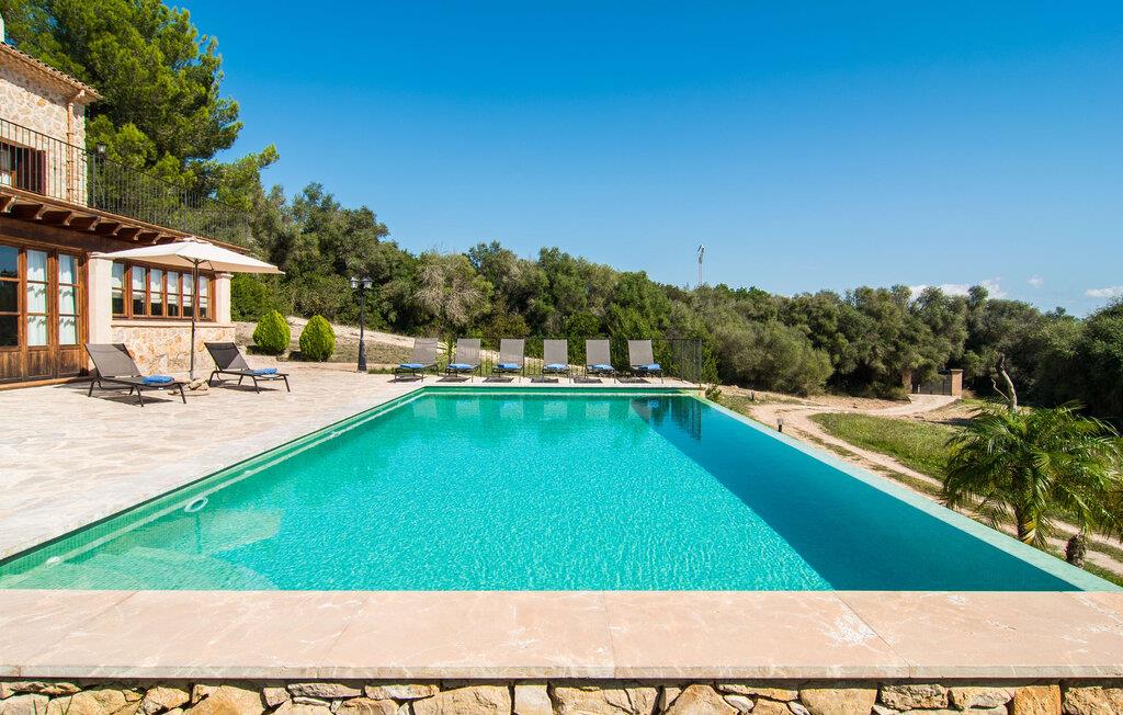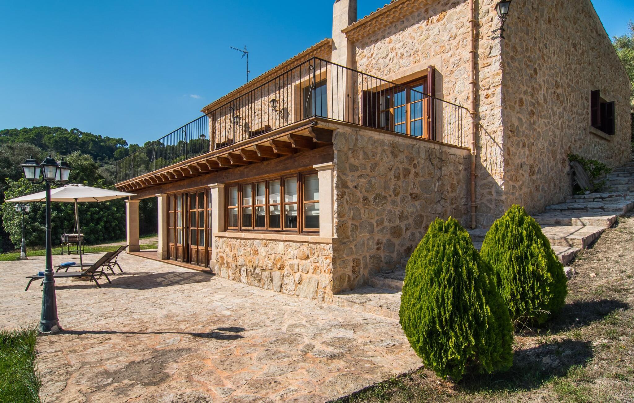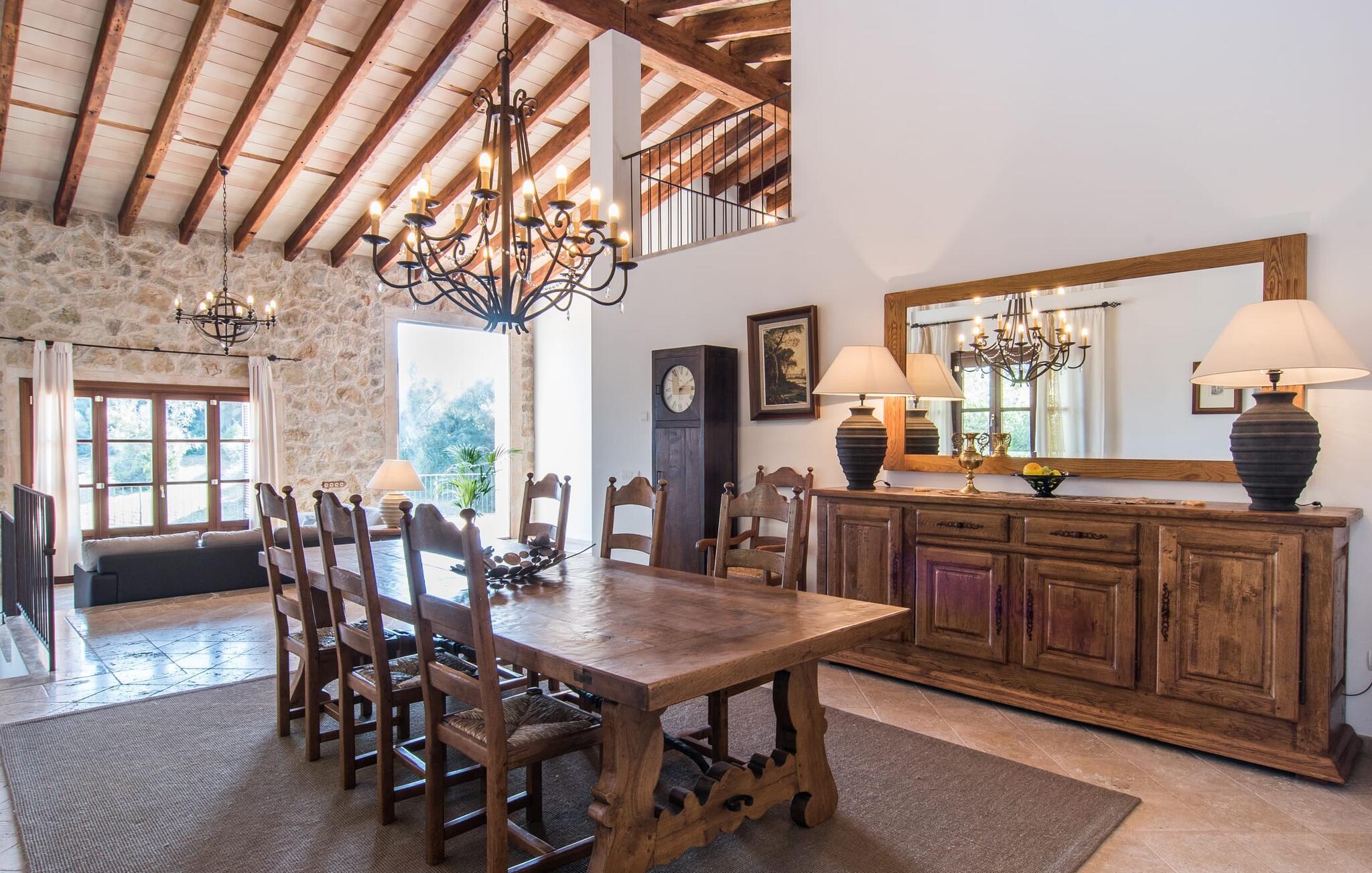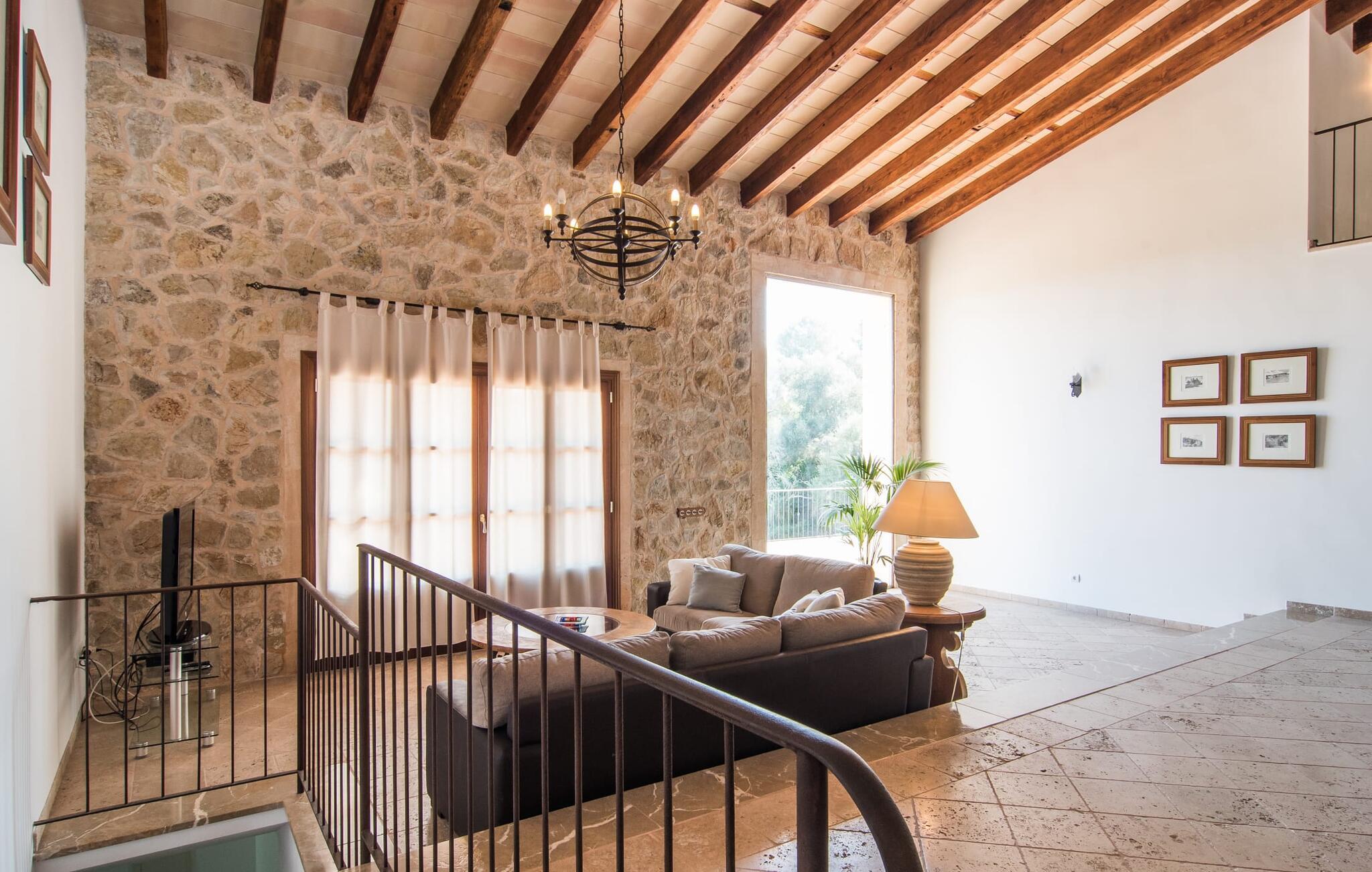 Den statelige naturstensvilla "Horlandis" ligger på en rummelig ejendom midt i de idylliske mallorcanske vidder. Omgivet af skove og marker er det det perfekte sted at slappe af og nyde freden og roen. Ejendommen kan slet ikke overses og tilbyder derfor ubegrænset privatliv. Beliggende i den rummelige naturstensterrasse lover den indbydende infinity-pool at køle af på varme dage og er samtidig stor nok til at svømme et par længder. Efter et hop i det forfriskende vand kan I finde jer tilpas på en af liggestolene omkring poolen og nyde jeres helt idylliske ferie. Hvis det bliver for varmt, finder I masser af skyggefulde pletter på den overdækkede terrasse lige ved siden af huset. Det er også et godt sted at starte dagen med en lækker morgenmad ved det store bord med udsigt over poolen og ejendommen, eller at nyde en skøn grillmiddag om aftenen med et lækkert glas vin og frisklavede delikatesser. Udendørsbelysningen skaber en varm atmosfære, selv når solen er gået ned. Udefra emmer villaen charmen af en rustik sommerhusejendom, som fortsætter inde i huset. Terrassen fører jer direkte til husets køkken. Ligesom mange værelser i villaen er den ekstremt rummelig og kombinerer mallorcansk tradition og moderne bekvemmeligheder. Udover en stor gaskomfur er der også et rummeligt køleskab med fryser og en opvaskemaskine, mens køkkenet i det hele taget er meget praktisk. Et rustikt spisebord og masser af siddepladser inviterer jer til at blive hængende. På samme etage finder I et badeværelse med bruser og toilet. En trappe fører til hjertet af villaen: en kæmpe stue-spisestue med meterhøjt til loftet. Villaens hovedindgang er også placeret her. De synlige tagbjælker i træ samt den rustikke indretning af høj kvalitet skaber en hyggelig atmosfære. Tilbring aftenen på sofaen eller spis ved langbordet med jeres familie og venner. Panoramaudsigten fra den enorme tagterrasse er simpelthen storslået. Tre af de fire soveværelser er også placeret på denne etage, alle med et helt igennem rustikt mallorcansk design. To af værelserne har klassiske himmelsenge i træ, der minder om svundne tider, men er nye og af højeste kvalitet. Et andet soveværelse huser to enkeltsenge. Den klassiske, elegante stil fortsætter også på badeværelserne. Der er to af dem på denne etage - hvoraf den ene er direkte tilgængelig fra et af dobbeltværelserne. På første sal er der endnu et soveværelse med eget badeværelse og stort badekar. Bag huset kan I se Ermita de Bonany hermitage, der ligger på toppen af Puig de Bonany - en 331 hektar stor naturpark. På grund af sin vidunderlige beliggenhed og udseende kaldes kirken også "Bjergkatedralen". Hvis I foretrækker at gå til stranden frem for kirken, er de nærmeste bugter cirka 23 km væk. Der er ingen cafeer eller restauranter på den hvide sandstrand i Torrent des Revellar, men der er uberørt natur. Takket være dens centrale beliggenhed i centrum af øen kan I nå adskillige byer og attraktioner på tværs af Mallorca på mindre end en time. Nabobyen Petra, som er bedst kendt for sine kvalitetsvine, kan nås i bil på kun 15 minutter. Derfra er der kun 15 minutter til smukke Sineu. Det siges at have det bedste farmers market på øen. Det finder sted hver onsdag i Den Gamle By og tiltrækker både lokale og turister i hobetal. Den statelige landvilla “Horlandis” med en kæmpe ejendom ligger helt stille og idyllisk i hjertet af øen. Herfra kan I nyde en vidunderlig panoramaudsigt over det mallorcanske landskab. I kan hurtigt gøre jeres indkøb i de nærliggende feriesteder Petra eller Vilafranca de Bonany, som ligger cirka 15 minutters kørsel fra ejendommen. Den hvide sandstrand Torrent des Revellar med dets utroligt klare vand ligger cirka 23 km væk.