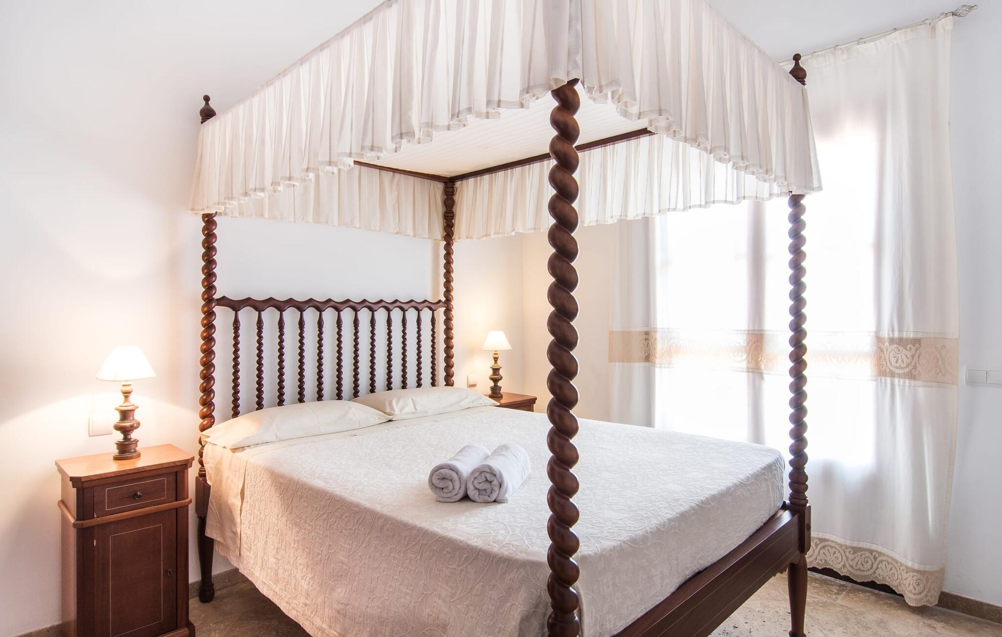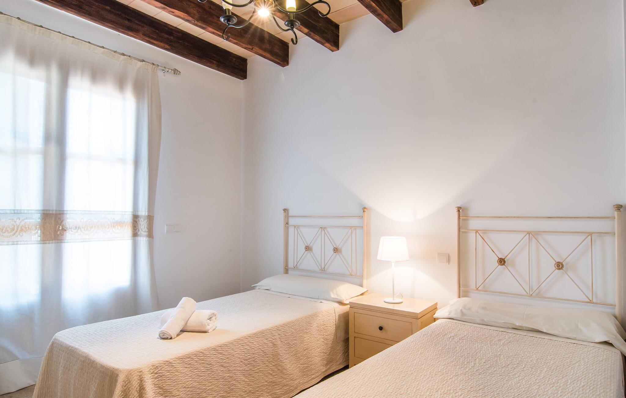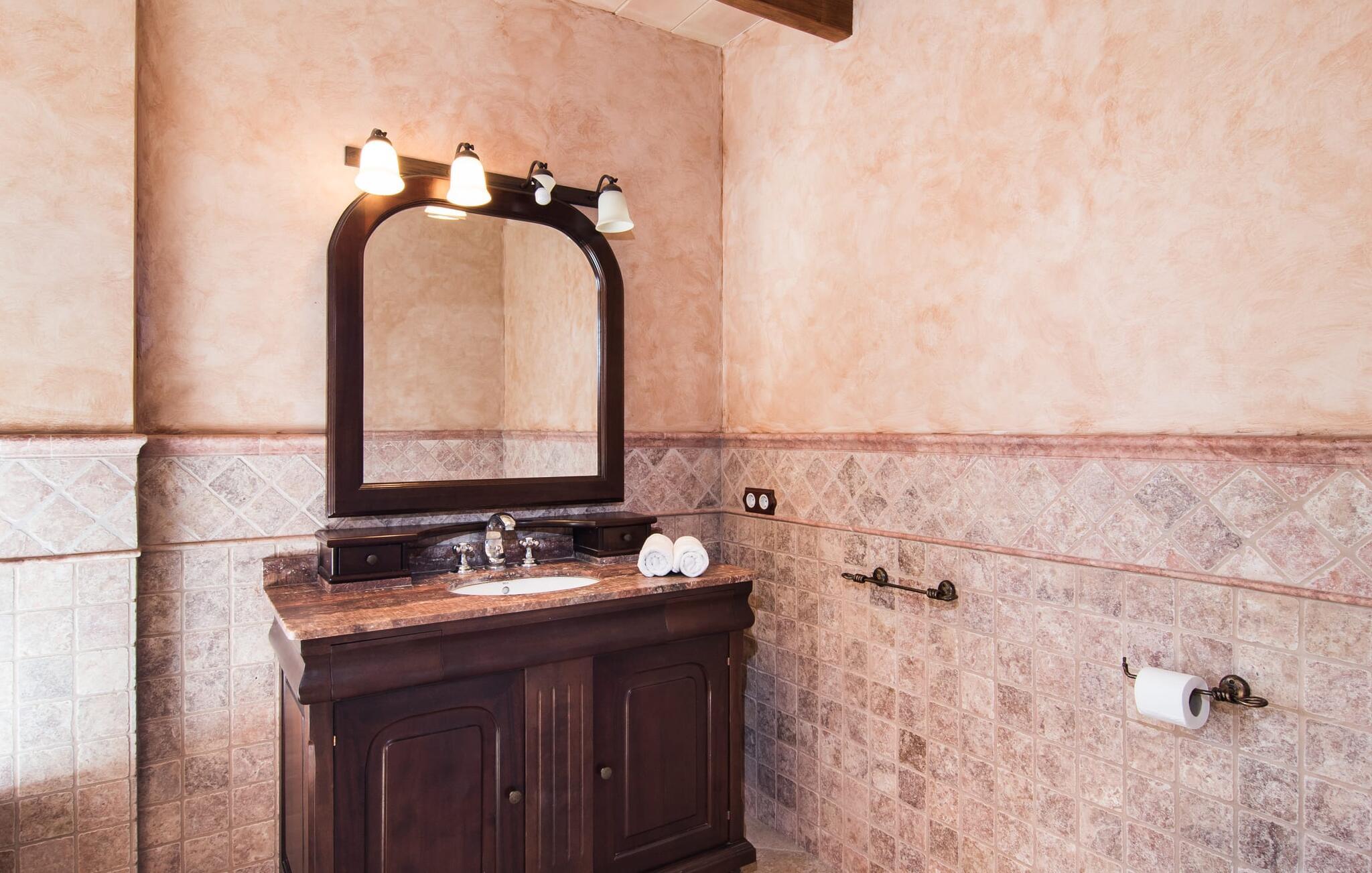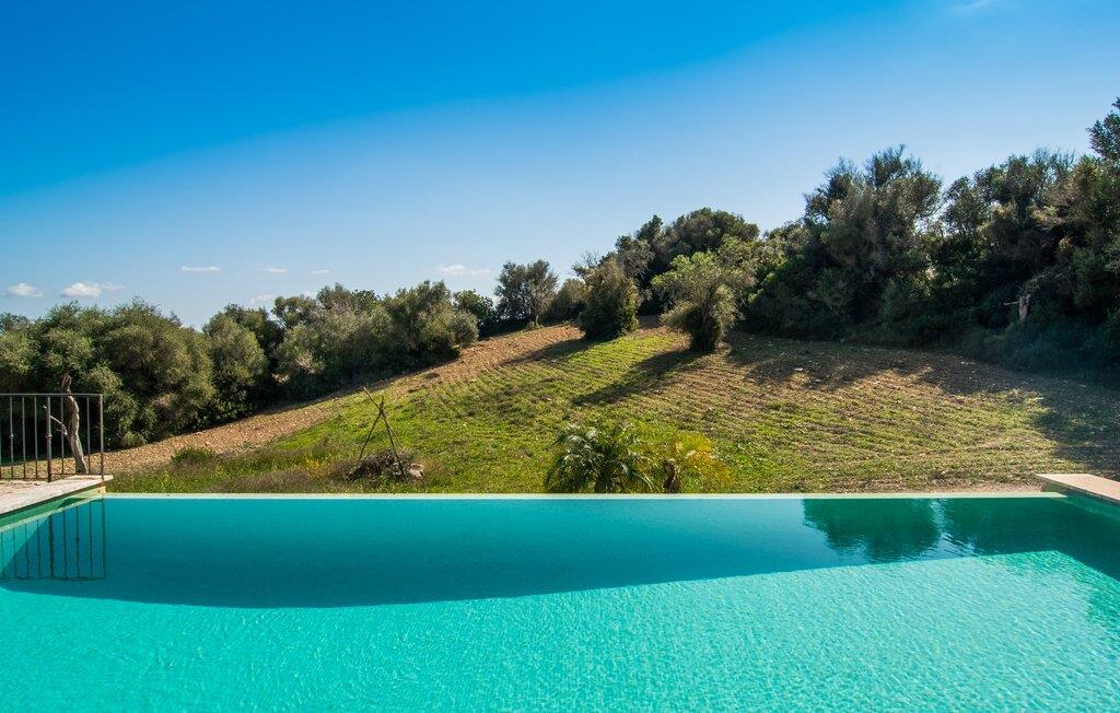 Den statelige naturstensvilla "Horlandis" ligger på en rummelig ejendom midt i de idylliske mallorcanske vidder. Omgivet af skove og marker er det det perfekte sted at slappe af og nyde freden og roen. Ejendommen kan slet ikke overses og tilbyder derfor ubegrænset privatliv. Beliggende i den rummelige naturstensterrasse lover den indbydende infinity-pool at køle af på varme dage og er samtidig stor nok til at svømme et par længder. Efter et hop i det forfriskende vand kan I finde jer tilpas på en af liggestolene omkring poolen og nyde jeres helt idylliske ferie. Hvis det bliver for varmt, finder I masser af skyggefulde pletter på den overdækkede terrasse lige ved siden af huset. Det er også et godt sted at starte dagen med en lækker morgenmad ved det store bord med udsigt over poolen og ejendommen, eller at nyde en skøn grillmiddag om aftenen med et lækkert glas vin og frisklavede delikatesser. Udendørsbelysningen skaber en varm atmosfære, selv når solen er gået ned. Udefra emmer villaen charmen af en rustik sommerhusejendom, som fortsætter inde i huset. Terrassen fører jer direkte til husets køkken. Ligesom mange værelser i villaen er den ekstremt rummelig og kombinerer mallorcansk tradition og moderne bekvemmeligheder. Udover en stor gaskomfur er der også et rummeligt køleskab med fryser og en opvaskemaskine, mens køkkenet i det hele taget er meget praktisk. Et rustikt spisebord og masser af siddepladser inviterer jer til at blive hængende. På samme etage finder I et badeværelse med bruser og toilet. En trappe fører til hjertet af villaen: en kæmpe stue-spisestue med meterhøjt til loftet. Villaens hovedindgang er også placeret her. De synlige tagbjælker i træ samt den rustikke indretning af høj kvalitet skaber en hyggelig atmosfære. Tilbring aftenen på sofaen eller spis ved langbordet med jeres familie og venner. Panoramaudsigten fra den enorme tagterrasse er simpelthen storslået. Tre af de fire soveværelser er også placeret på denne etage, alle med et helt igennem rustikt mallorcansk design. To af værelserne har klassiske himmelsenge i træ, der minder om svundne tider, men er nye og af højeste kvalitet. Et andet soveværelse huser to enkeltsenge. Den klassiske, elegante stil fortsætter også på badeværelserne. Der er to af dem på denne etage - hvoraf den ene er direkte tilgængelig fra et af dobbeltværelserne. På første sal er der endnu et soveværelse med eget badeværelse og stort badekar. Bag huset kan I se Ermita de Bonany hermitage, der ligger på toppen af Puig de Bonany - en 331 hektar stor naturpark. På grund af sin vidunderlige beliggenhed og udseende kaldes kirken også "Bjergkatedralen". Hvis I foretrækker at gå til stranden frem for kirken, er de nærmeste bugter cirka 23 km væk. Der er ingen cafeer eller restauranter på den hvide sandstrand i Torrent des Revellar, men der er uberørt natur. Takket være dens centrale beliggenhed i centrum af øen kan I nå adskillige byer og attraktioner på tværs af Mallorca på mindre end en time. Nabobyen Petra, som er bedst kendt for sine kvalitetsvine, kan nås i bil på kun 15 minutter. Derfra er der kun 15 minutter til smukke Sineu. Det siges at have det bedste farmers market på øen. Det finder sted hver onsdag i Den Gamle By og tiltrækker både lokale og turister i hobetal. Den statelige landvilla “Horlandis” med en kæmpe ejendom ligger helt stille og idyllisk i hjertet af øen. Herfra kan I nyde en vidunderlig panoramaudsigt over det mallorcanske landskab. I kan hurtigt gøre jeres indkøb i de nærliggende feriesteder Petra eller Vilafranca de Bonany, som ligger cirka 15 minutters kørsel fra ejendommen. Den hvide sandstrand Torrent des Revellar med dets utroligt klare vand ligger cirka 23 km væk.